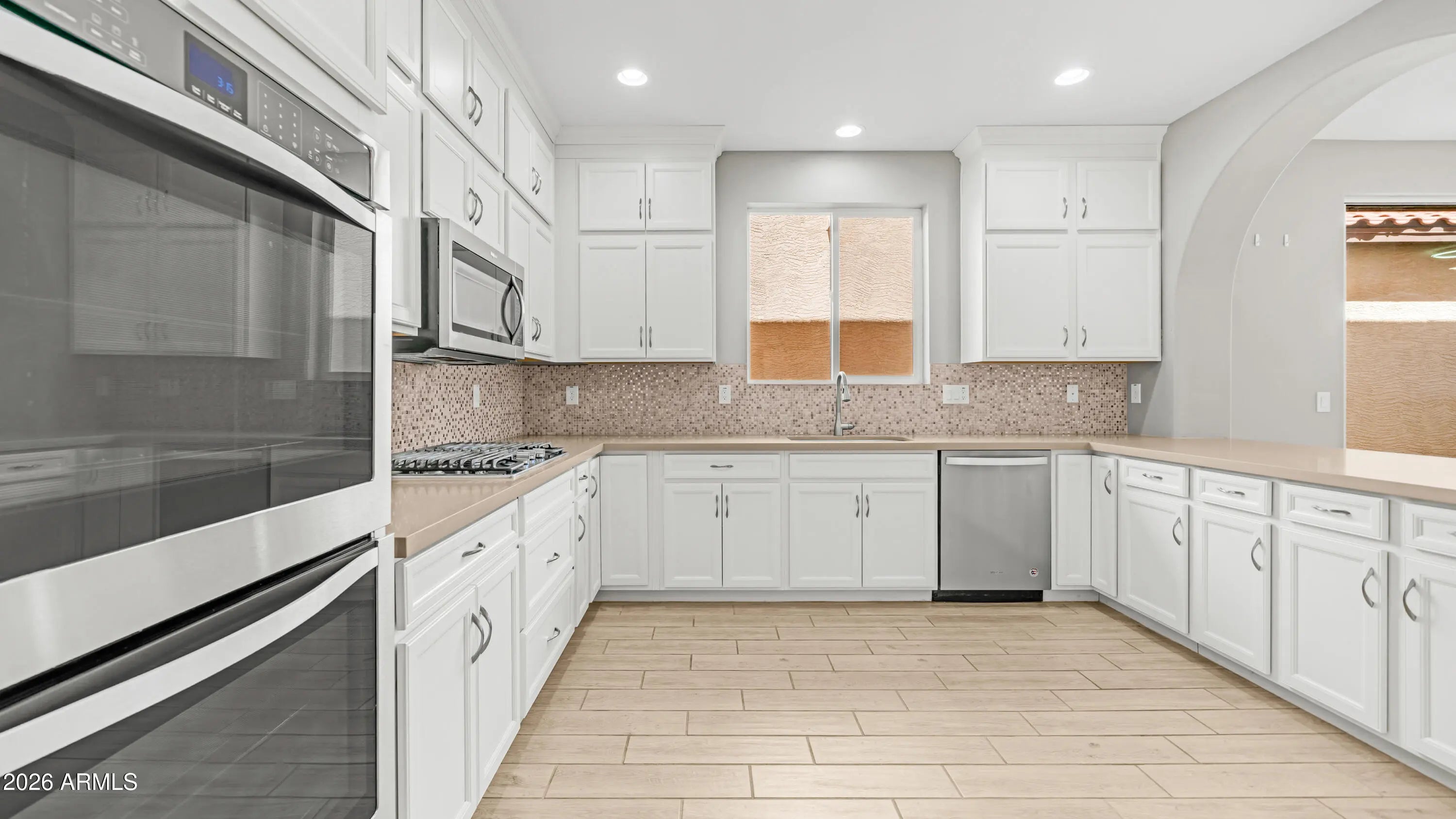 Welcome to this stunning 3-bed, 3.5-bath + loft home in the master-planned Vistancia community! Spanning ~2,000 sq ft, this gem perfectly blends modern luxury with everyday comfort. The open great room features wood-look tile, upgraded wood stairs, and a breathtaking 19-foot pocket sliding door that seamlessly merges indoor and outdoor living on your private paved patio. The chef's kitchen boasts stacked white cabinets, quartz counters, double ovens, and a gas cooktop. Enjoy upper and lower front patios perfectly situated to overlook a beautiful greenbelt and park. The attached garage is finished with epoxy floors and built-in storage. Live the resort lifestyle with access to 3 community pools, an indoor basketball gym, trails, and top-rated schools. Welcome home!