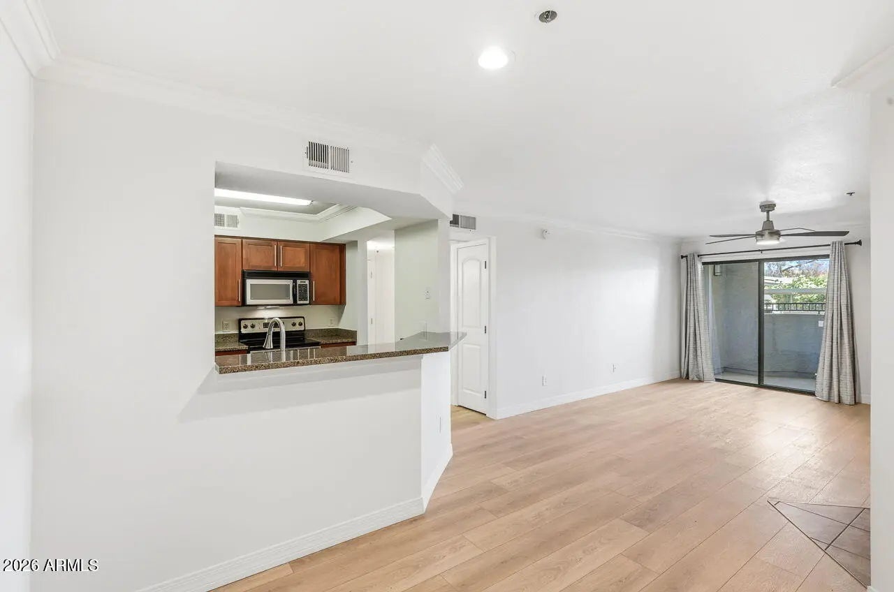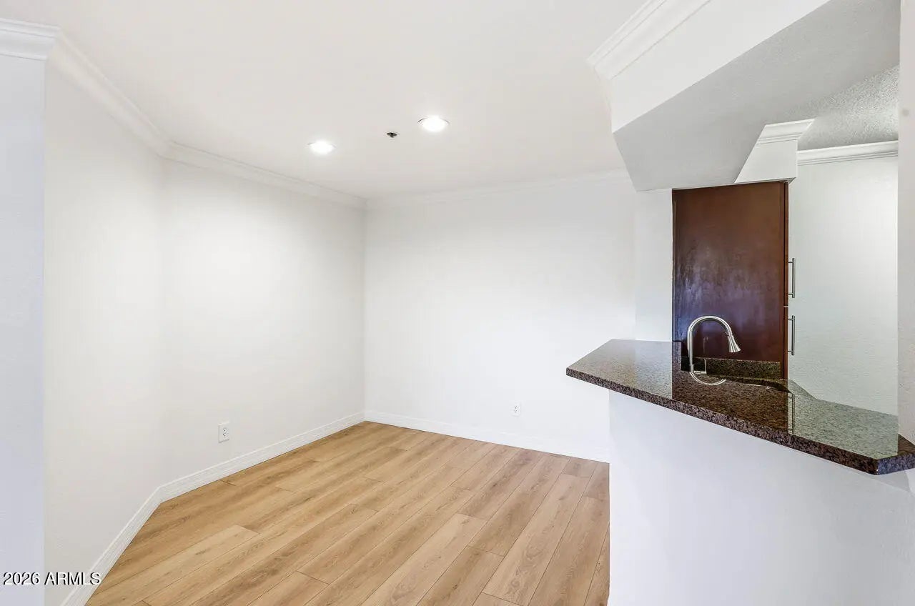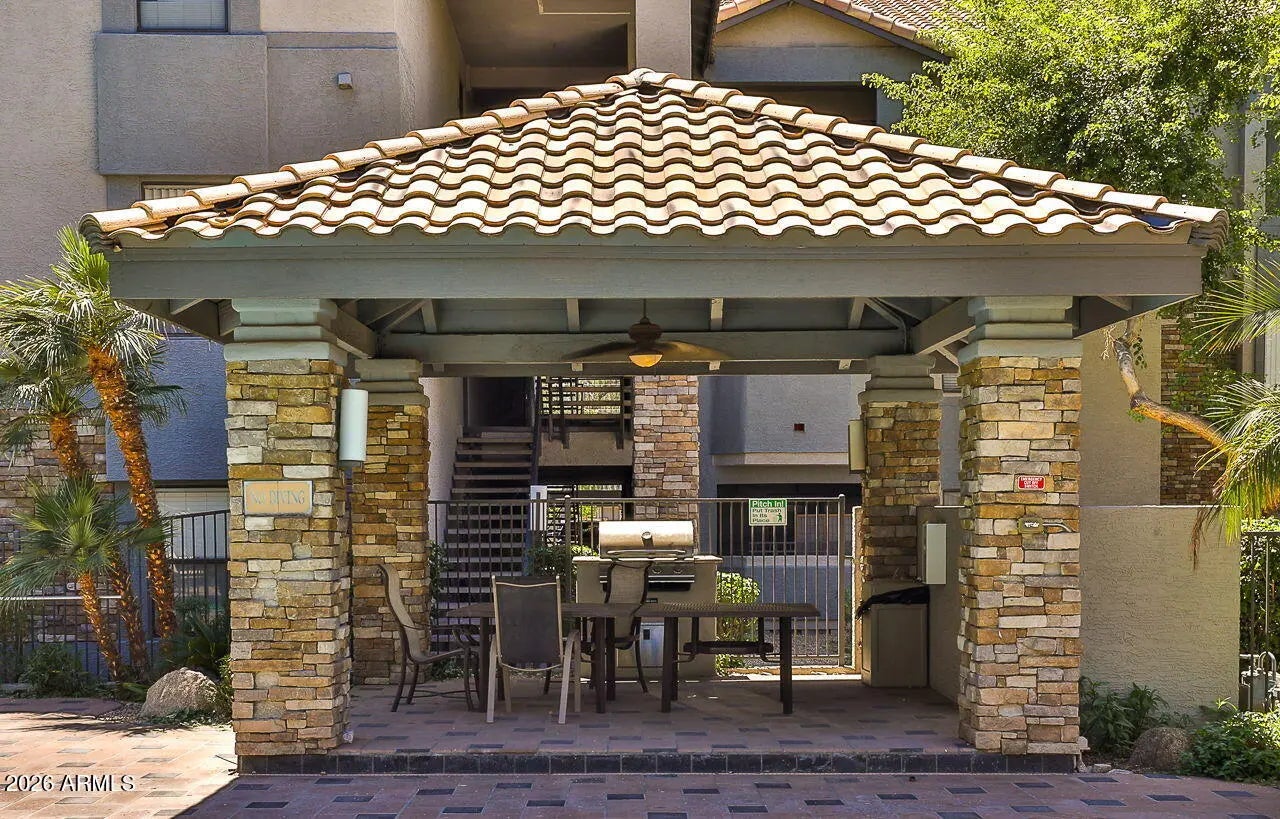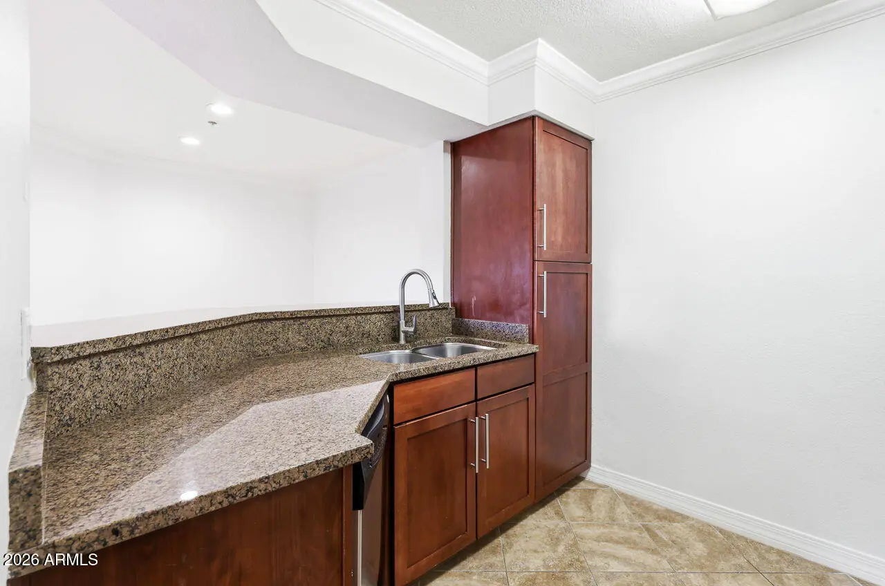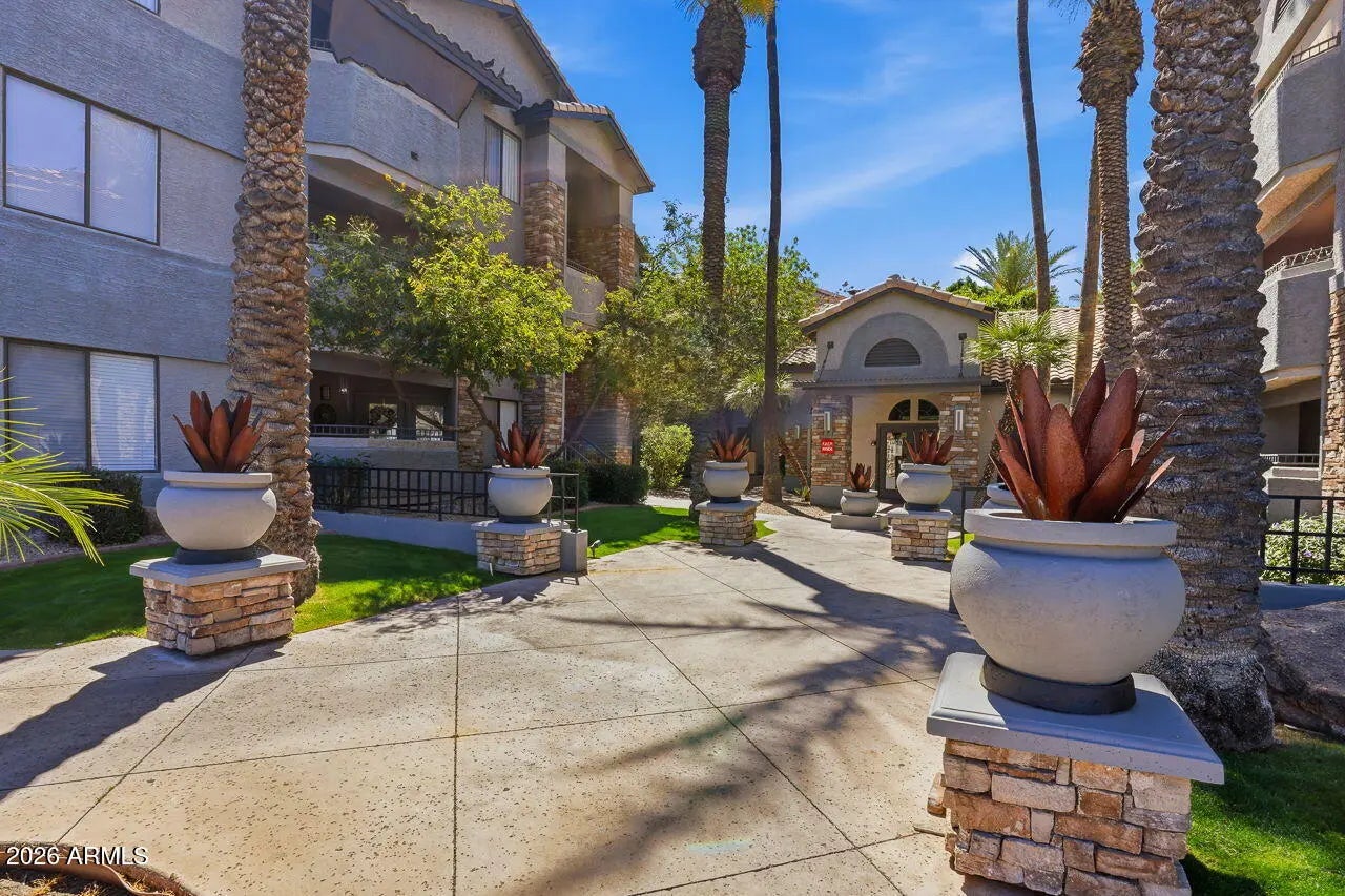 Beautifully 1-bedroom, 1-bath ground-floor end-unit in the sought-after Dakota at the Biltmore. This light-filled condo features an open great room, a large bedroom, & spacious private patio with additional storage. The remodeled kitchen showcases modern cabinetry, granite countertops, and stainless steel appliances, complemented by updated flooring and fresh paint throughout. The bathrooms offer stylish upgrades. Enjoy the convenience of full-size in-unit laundry and no interior steps. The Dakota is a gated community offering resort-style amenities including two heated pools, spas, and a fitness center. Ideally located in the heart of the Biltmore Corridor, just minutes from premier dining, shopping, and quick access to SR51