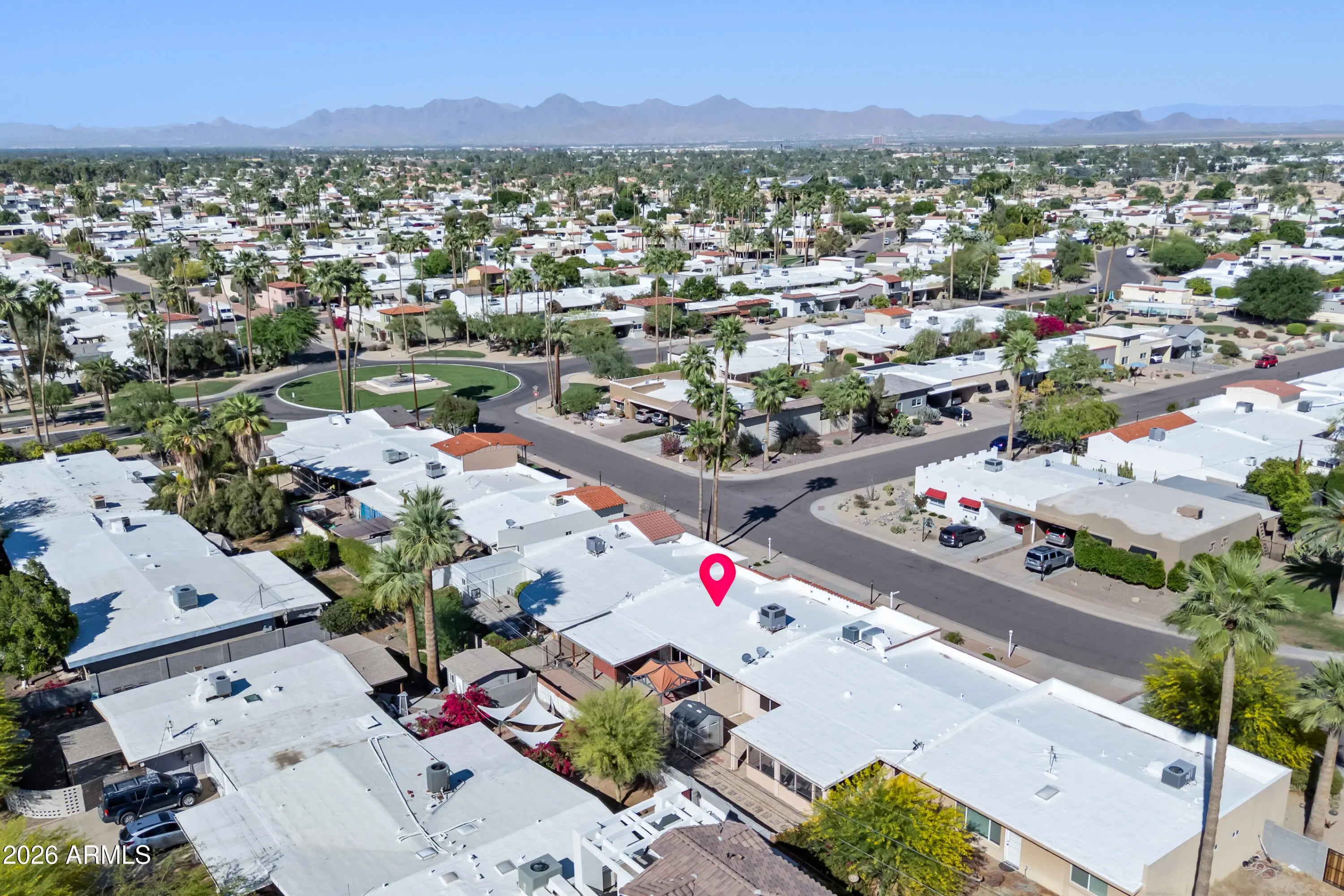 Delightful two-bedroom, two-bath single-level residence located in the highly sought-after Historic Villa Monterey--Old Town Scottsdale's premier 55+ community. This charming home is move-in ready and features a classic floor plan with a front-facing kitchen. Recent updates include newer appliances, granite countertops, remodeled bathrooms, a newer HVAC system (2023), dual-pane windows, and a recently recoated roof. The covered back patio with a gazebo provides an inviting space for outdoor entertaining. Priced under $500,000, this home offers exceptional value in a prime location. Villa Monterey is a designated historic community known for its pride of ownership and timeless character. Streets lined with vintage-style lampposts create a warm, neighborhood atmosphere. Residents enjoy access to a community pool and spa, as well as convenient proximity to the canal path leading into Old Town Scottsdale--home to dining, entertainment, art galleries, spring training venues, car shows, Hayden Park, and the scenic waterfront.