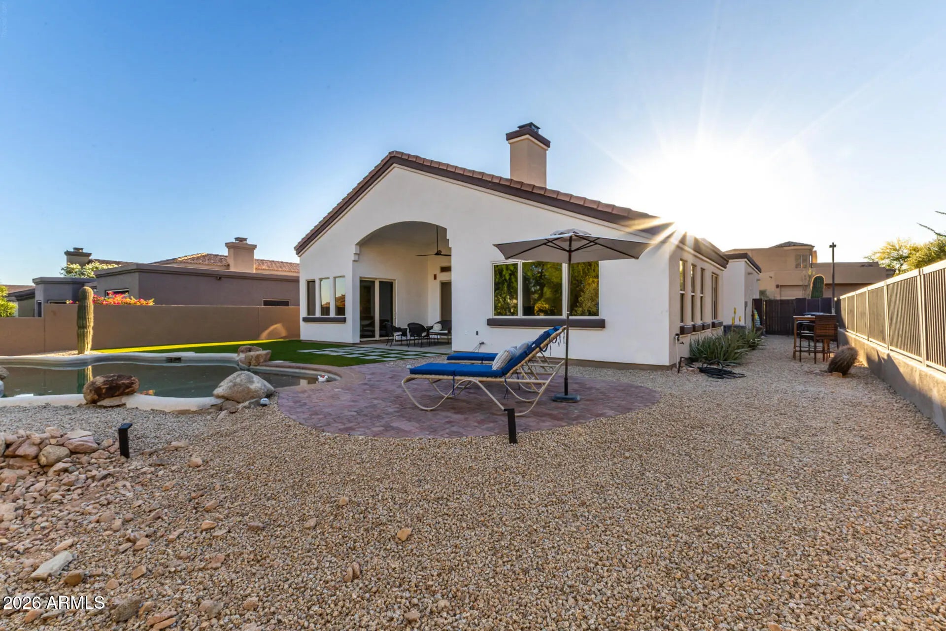 Adjacent to Wash, East/West Exposure, Sprinklers In Front, Desert Back, Desert Front, Synthetic Grass Back