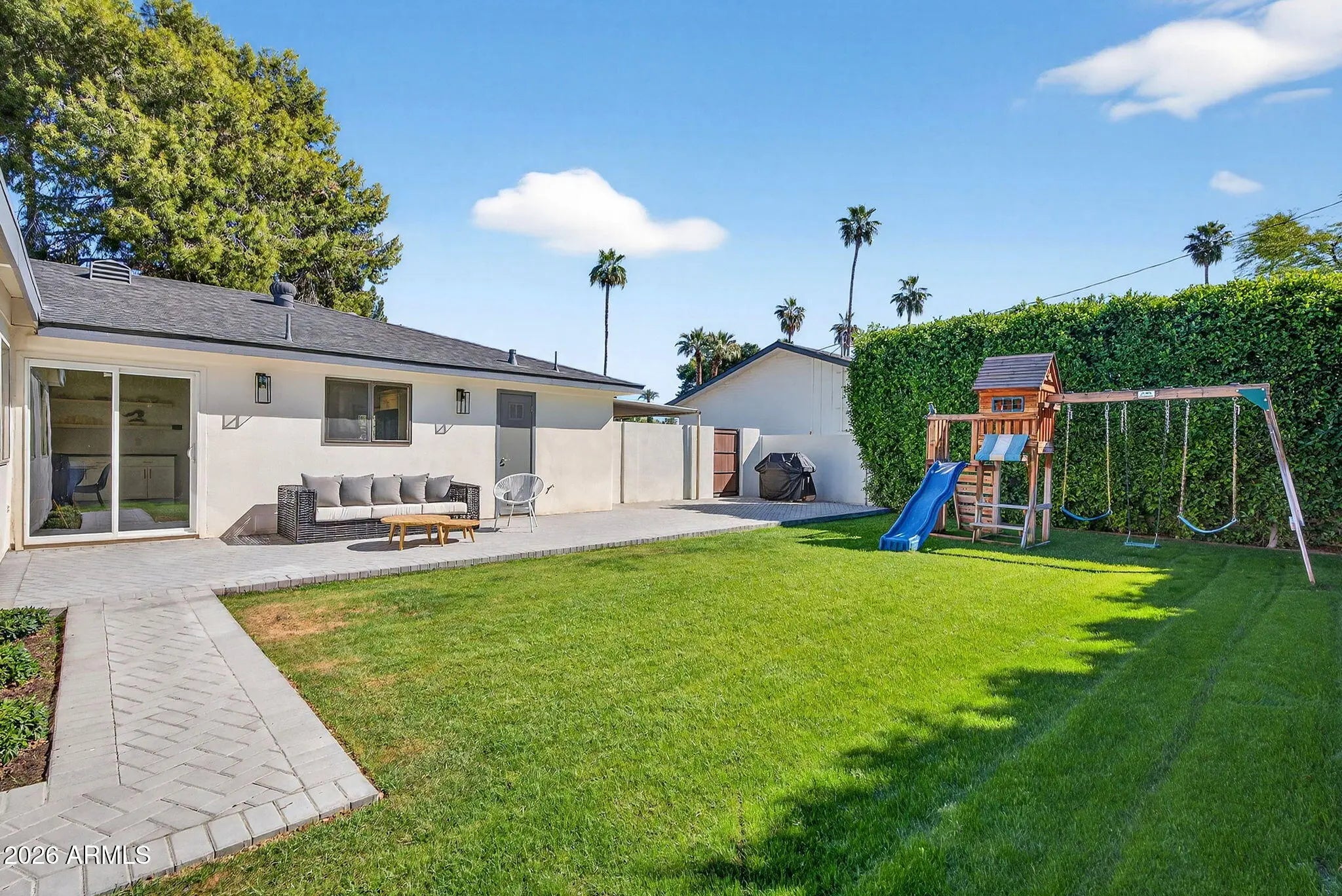 Located in the highly sought-after Central Phoenix corridor ''between the 7's,'' this beautifully updated 4-bedroom, 3-bath home offers 2,357 square feet of thoughtfully designed living space. With two spacious primary suites, this layout provides exceptional flexibility for multi-generational living, guests, or a private home office setup. This home has been extensively upgraded for modern comfort and peace of mind, including a brand-new roof and fully renovated bathrooms in 2025 featuring designer-selected finishes. Major systems have already been taken care of, with HVAC and water heater replaced in 2023. The home also includes gas service with a stub for a gas range, along with premium Bosch refrigerator and dishwasher. Step outside to a lush, private backyard framed by mature ficus hedges, creating a serene retreat perfect for relaxing or entertaining. Enjoy raised planter beds with drip irrigation--ideal for gardening enthusiasts. The location is unbeatable, within walking distance to All Saints, Madison Meadows, and Arcadia Christian, and just a short drive to Xavier College Prep and Brophy College Prep. You'll also love being close to the Central Avenue bridle path and the popular Uptown Farmers Market. A rare opportunity -- 4-bedroom, 3-bath home between the 7's for under $1M.