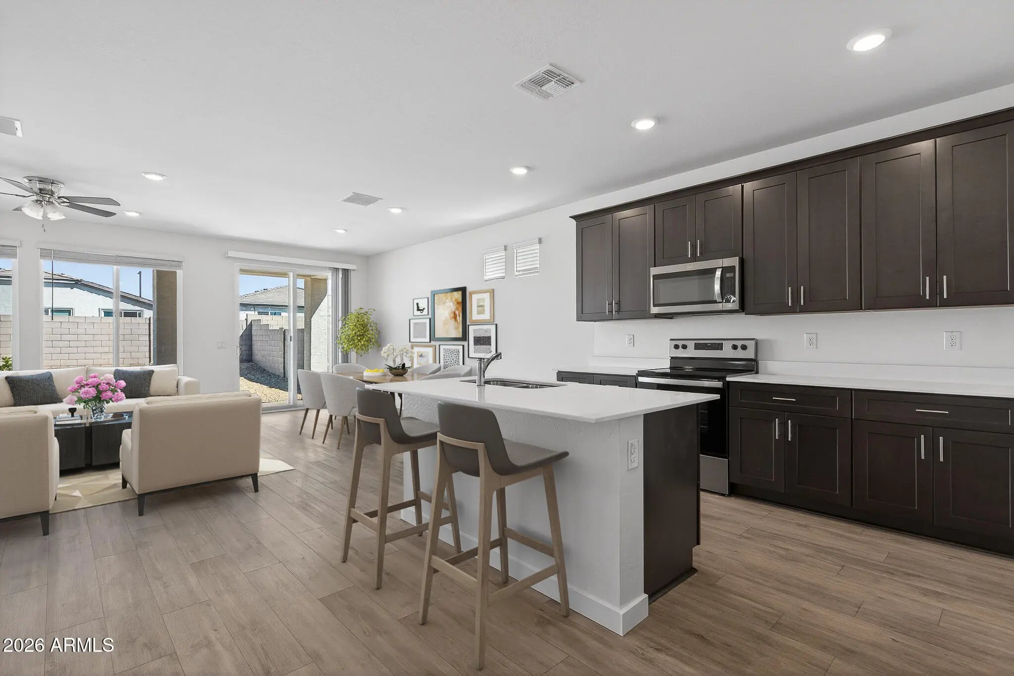Welcome to this beautiful home built in 2024 featuring 4 bedrooms and 2 bathrooms, it offers a spacious and functional layout. The kitchen includes an island with breakfast bar along with sleek appliances for a modern touch. Ceiling fans and blinds are installed throughout for a move-in ready home! Enjoy low-maintenance living with an easy-care landscape and a covered patio, ideal for relaxing or hosting guests. Located in the desirable North Copper Canyon the community offers great amenities, including a resort-style pool, clubhouse, dog park, sports courts, and a playground, providing something for everyone to enjoy