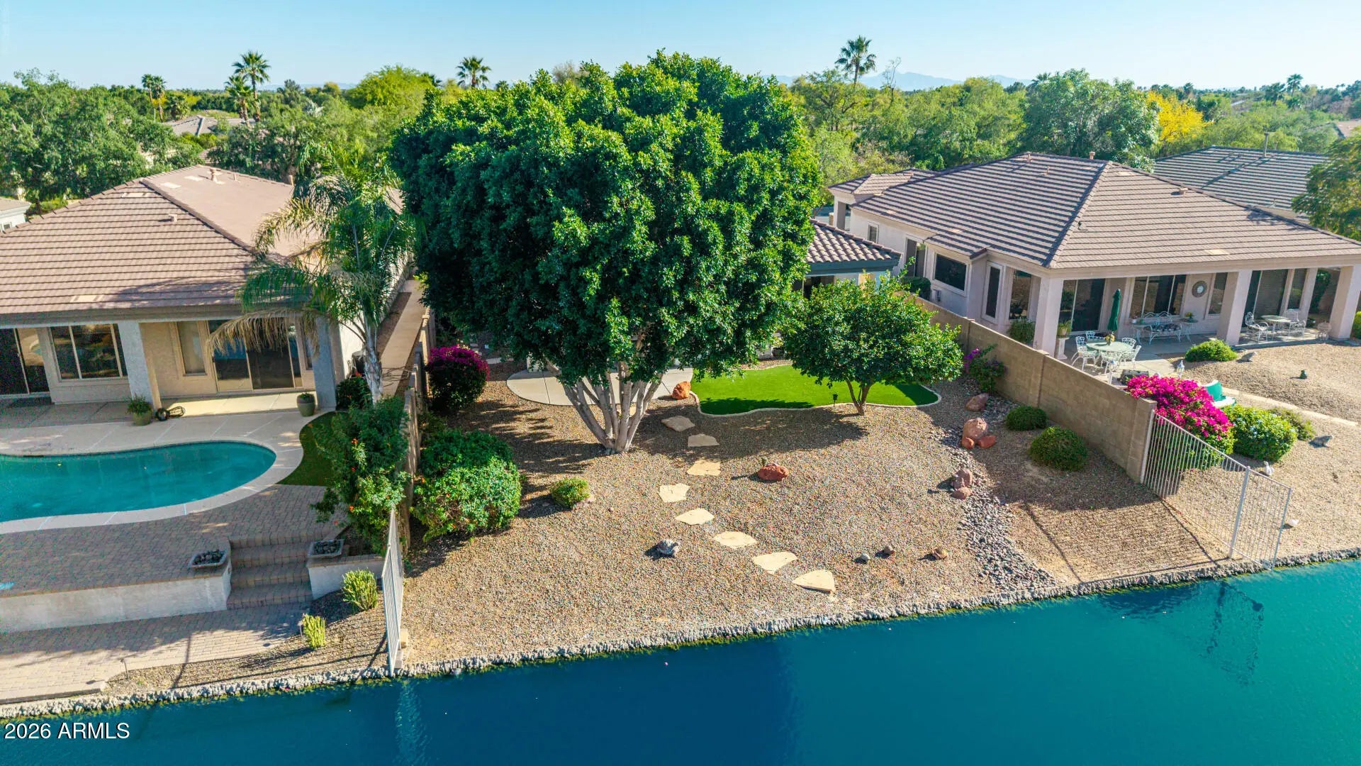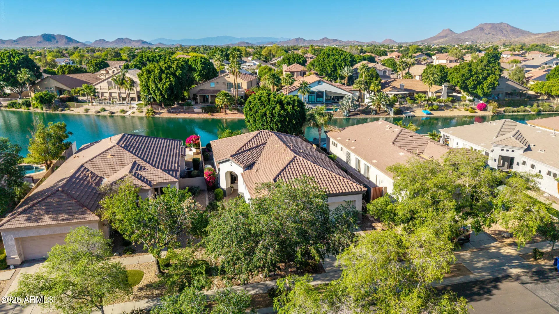 Waterfront living at its finest in the gated Palomino Community of Arrowhead Lakes. This Beautiful home showcases Stunning Lake and Mountain views, creating a Peaceful and picturesque setting you'll love coming home to. Thoughtfully designed, the home features two primary en-suite bedrooms, offering comfort and flexibility for guests or multi-generational living. A versatile office provides the perfect space to work from home or adapt to your lifestyle needs. The inviting interior is complemented by well-designed living spaces that flow seamlessly to covered patios, where you can savor peaceful mornings by the water and unwind in the evening as the sun sets over the lake. Perfectly Positioned near shopping, dining, and the Loop 101 access. This home is the ideal balance of luxury, comfort, and effortless living.