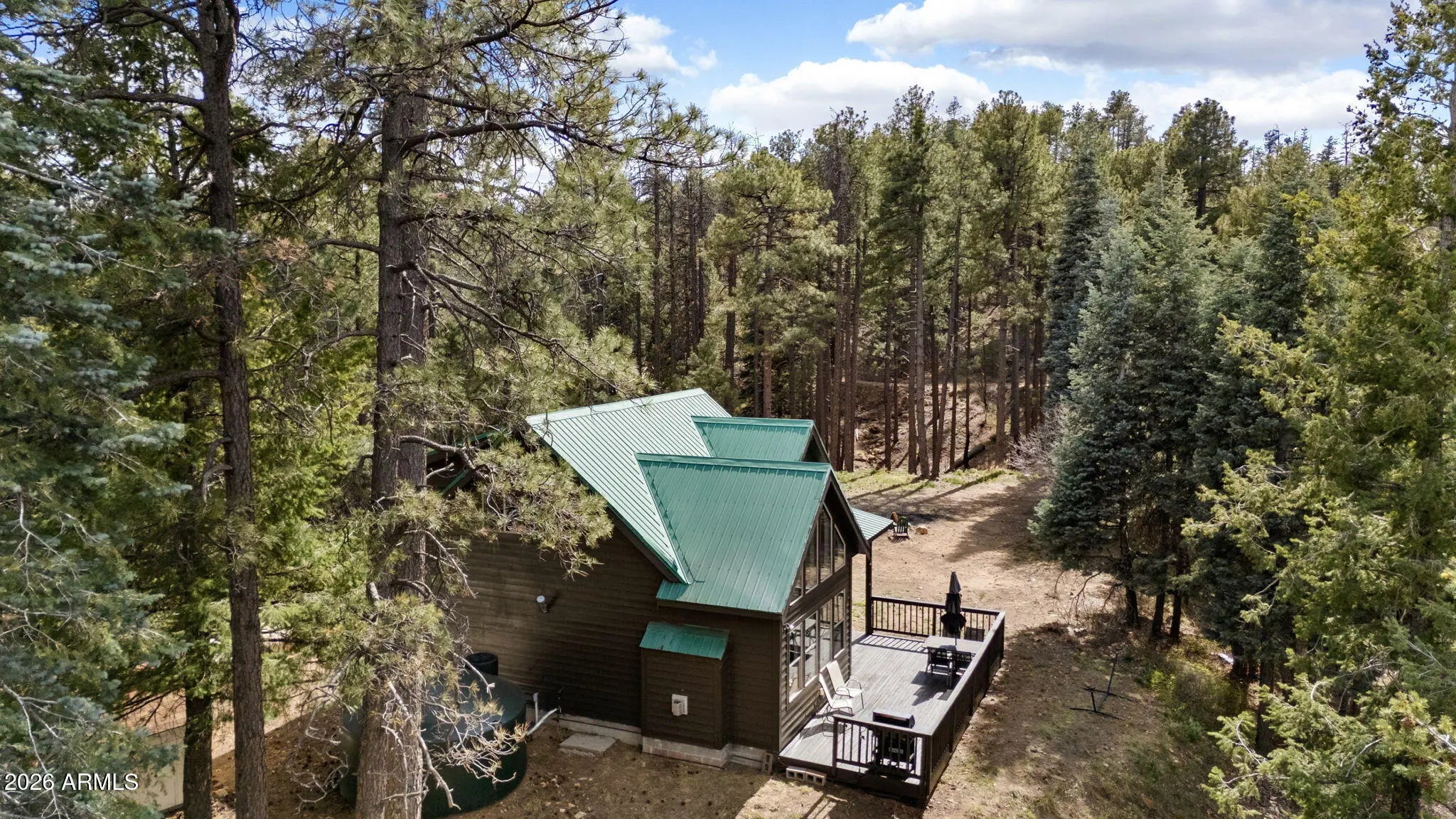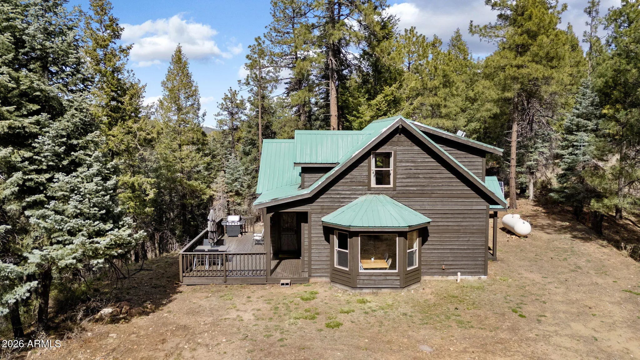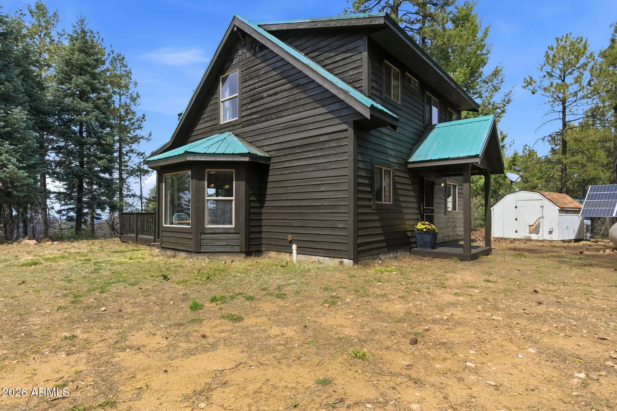 Escape to peace and privacy in the tall pines just outside of Prescott, where this quintessential ''cabin in the woods'' offers the perfect blend of seclusion and modern convenience. Custom built in 2004 and set on 3 serene acres at 7300' off Senator Highway, the journey becomes part of the charm with a scenic 6-mile dirt road stretch beyond the pavement. Inside, you'll find a warm and inviting retreat featuring 2 bedrooms plus a spacious loft--ideal for additional sleeping quarters or a quiet home office. The open-concept kitchen is perfectly positioned to take in peaceful forest views, while soaring vaulted ceilings finished in knotty pine tongue-and-groove create a true cabin feel. Expansive windows frame breathtaking, endless views of the surrounding landscape and bring the outdoors in Step outside onto the large open deck, where you can unwind, entertain, or simply take in the unmatched tranquility and star-filled skies. Despite the secluded setting, the property offers excellent cell service and internet access--making it an ideal work-from-home haven. Designed for self-sufficient living, this off-grid property is equipped with solar power and a new generator, giving you independence without sacrificing comfort. If you've been dreaming of a private escape where nature, quiet, and functionality meet--this is it.
