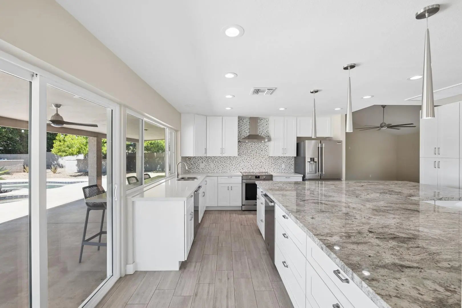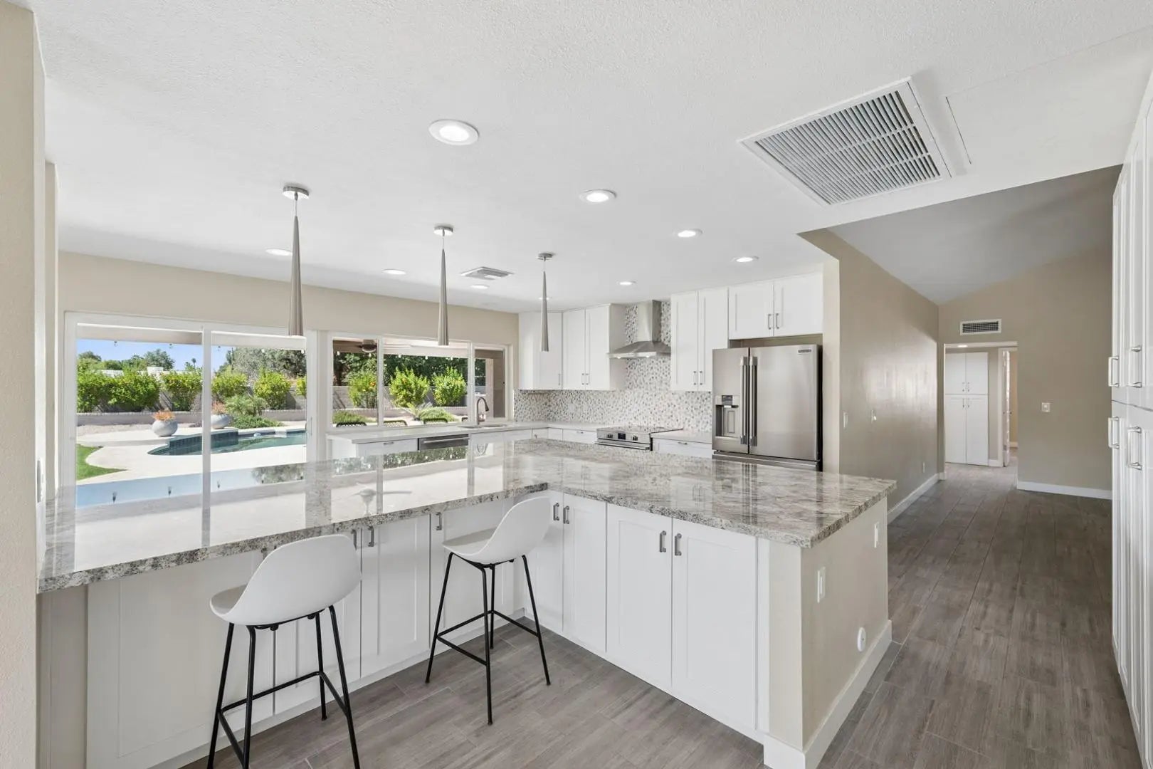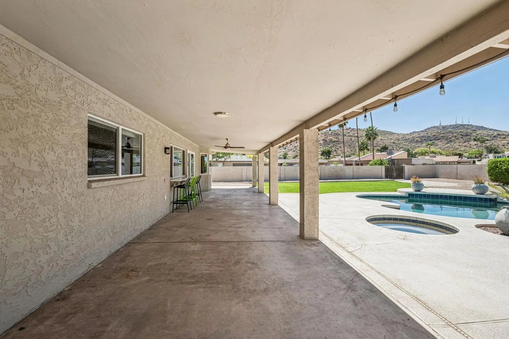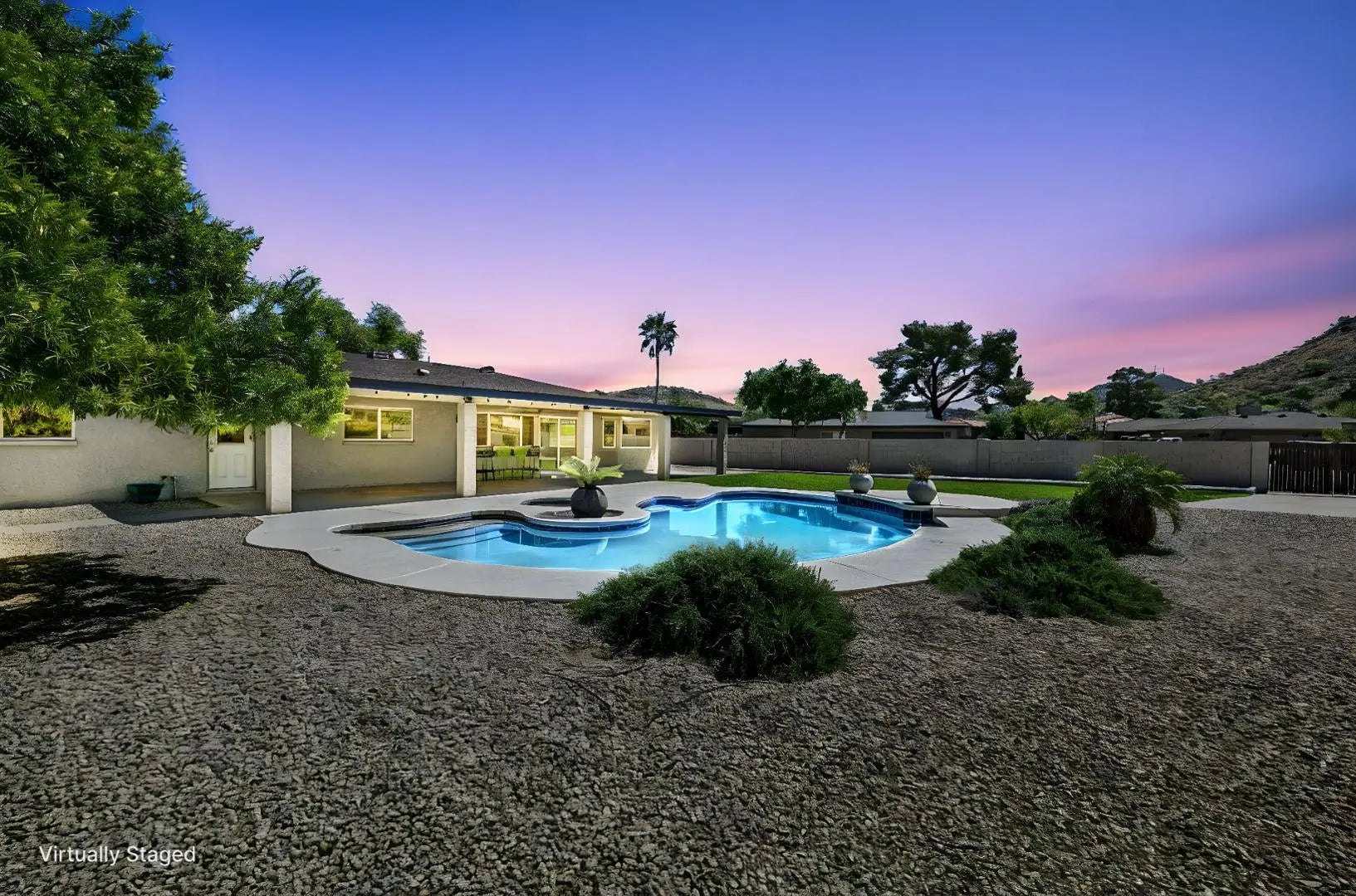 Absolutely perfection of a remodel with 4 large bedrooms, 2 bathrooms, 2 Car Garage, all Tile Throughout located in the highly sought after Heritage Highlands. This property was just remodeled last year. You walk into the entry and with open views to the stunning grass backyard and pool. To the right is the lofted living room and to the left is the Family living area with Dining all open to your Gourmet stunning kitchen. Island Huge with lots of storage, 2 yes 2 dishwashers, all Professional series Stainless steel appliances with Induction range (need special pans), Drawer Microwave, French door Fridge with drink drawer. Master bedroom is off the Family living room and with double French doors, walk in closet and large shower area with room for a makeup area. The split floor plans has the other large 3 bedrooms on the north side of the home. Large Safe in closet owner kept for you to use. Previous laundry area has been turned into a mud room or you can put benches for sitting or storage. Laundry was moved the garage with Brand new built in cabinets and New Oversized Samsung washer and dryer, Brand new garage door and opener. All of this and we haven't even talked about the backyard!!! Walk out to your stunning view of North Mountain, 2 blocks to trailhead!! Yard has new side gate and back RV gate plus a large grass area, all bushes on watering and buffet off the kitchen windows. Heated Pool and hot tub (tenant would fill propane if wanted to use heated). This property is located close to the shopping at 7th and Thunderbirds, close to schools and minutes to Thunderbird High School, Moon Valley Country Club is down the street, minutes to I-17, the 101 or the 51. Work downtown, 7th street moves quickly!!! This place is Perfection, Show and Rent today!!!