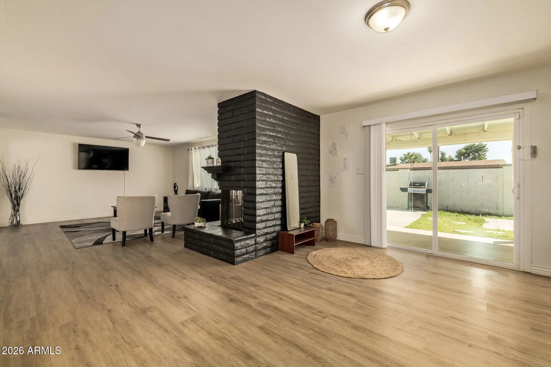 A beautifully reimagined residence where modern upgrades meet effortless comfort and style. Thoughtfully updated throughout, this home showcases refreshed flooring, a redesigned kitchen, and updated bathrooms, creating a clean, elevated aesthetic. The open-concept layout is anchored by a cozy fireplace, offering a warm yet sophisticated focal point for everyday living and entertaining. The kitchen features sleek finishes, updated cabinetry, modern appliances, and refined countertops, delivering both function and contemporary appeal. Step outside to a private backyard retreat with a sparkling pool, ideal for enjoying Arizona's year-round sunshine and outdoor living. Additional highlights include a 2-car garage and an extended driveway providing ample parking flexibility. Offering 3 bedrooms and 2 bathrooms, this home balances comfort, style, and practicality within an established setting, with the added benefit of no HOA. Energy-efficient features enhance long-term value, including upgraded attic insulation, a 7.83 kW solar system (27 panels) with a low fixed monthly lease, a smart Wi-Fi thermostat, and a variable-speed pool pump, designed to help optimize energy use and reduce utility costs.