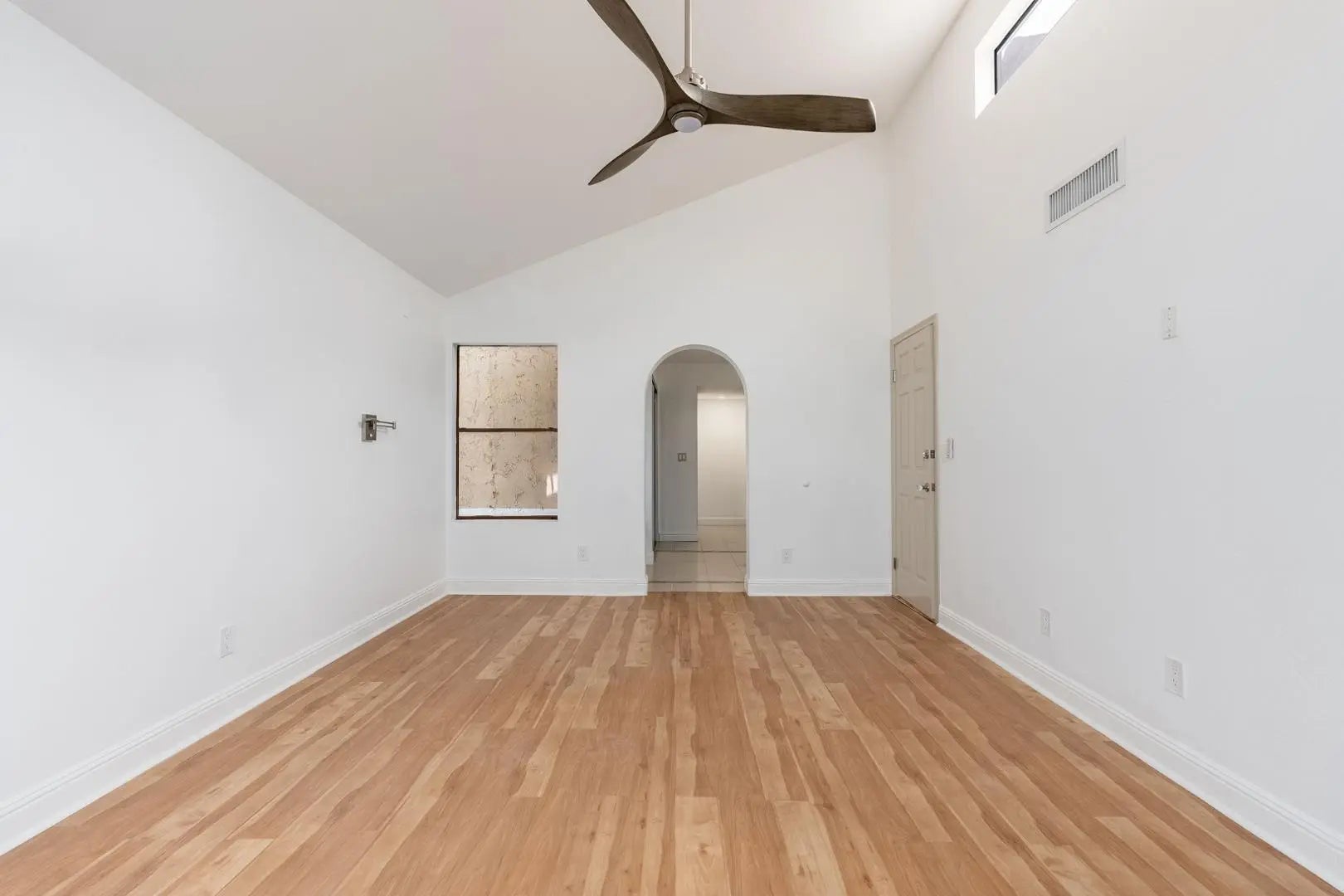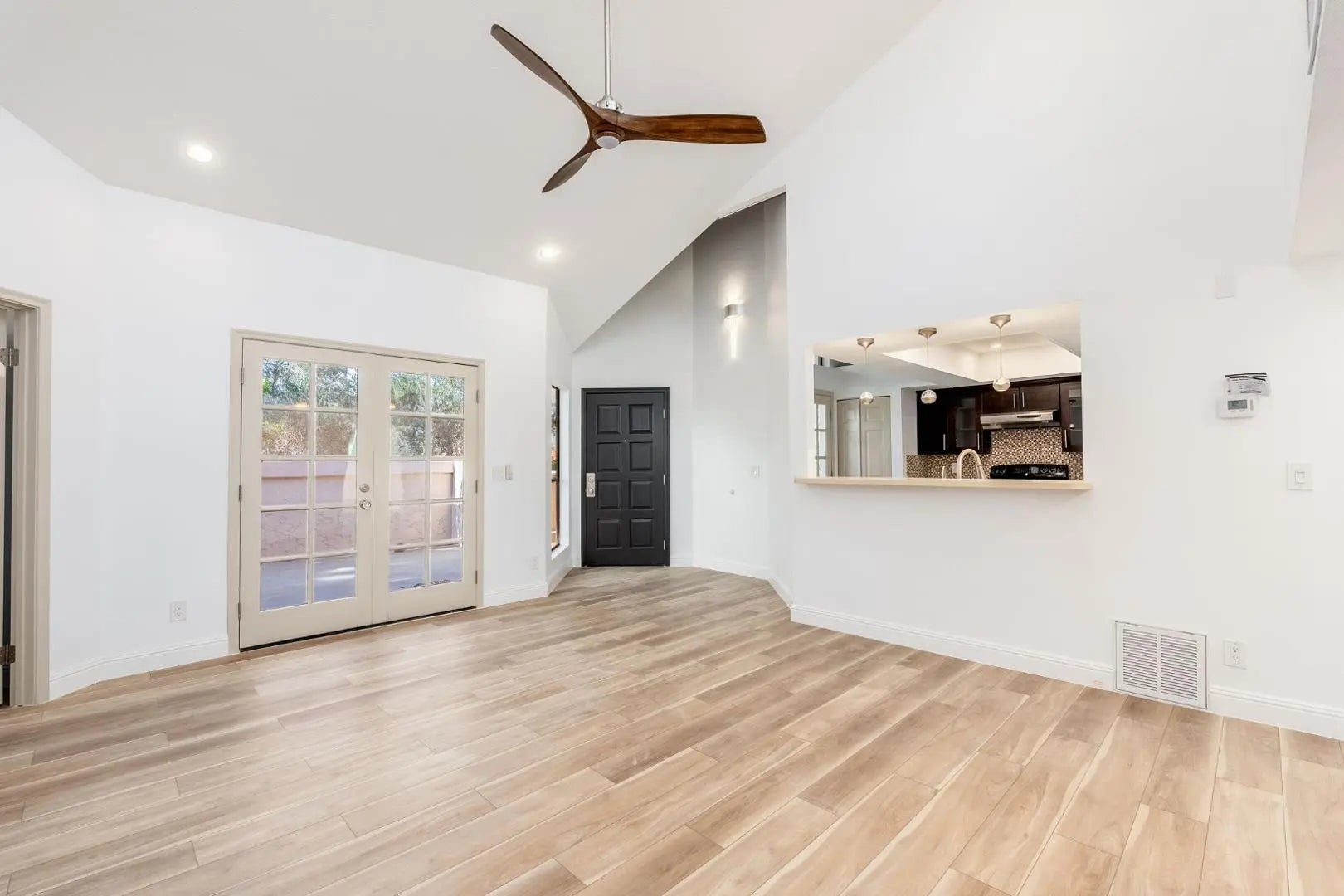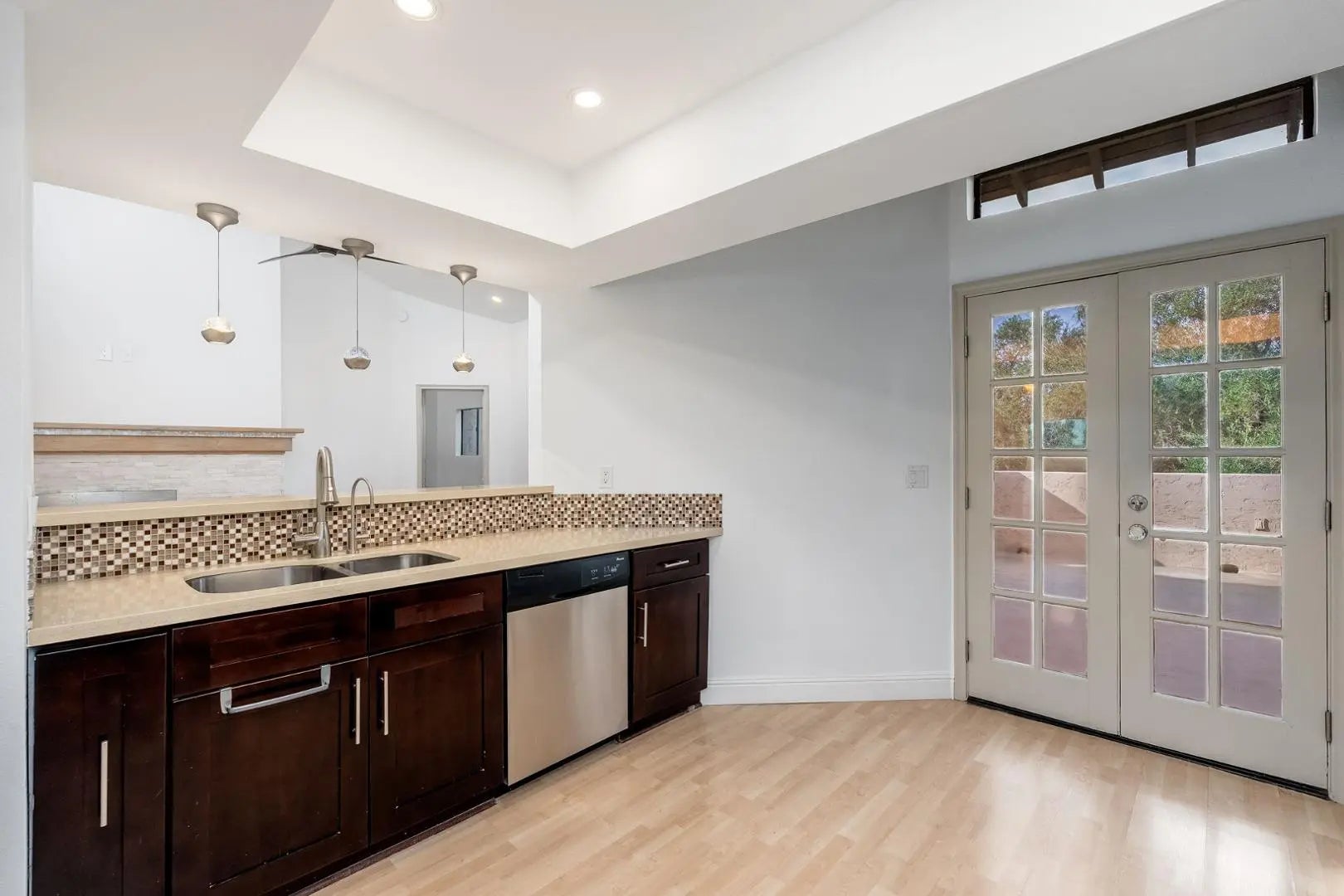 This amazing townhouse offers villa-style living within The Racquet Club; a gated community featuring resort-style amenities. The home showcases a dual primary bedroom floor plan with an upstairs entrance through a spacious front patioperfect for relaxing or entertaining. Inside, the kitchen boasts dark wood cabinetry, stainless steel appliances, and a convenient breakfast bar. Brand new vinyl-wood flooring, vaulted ceilings, and skylights create a bright and open ambiance throughout. The primary suite includes an upstairs loft that opens to a private rooftop deckideal for enjoying extended views or peaceful outdoor lounging. Community amenities includes clubhouse, swimming pool & spa, tennis courts, pickleball, fitness center and more.