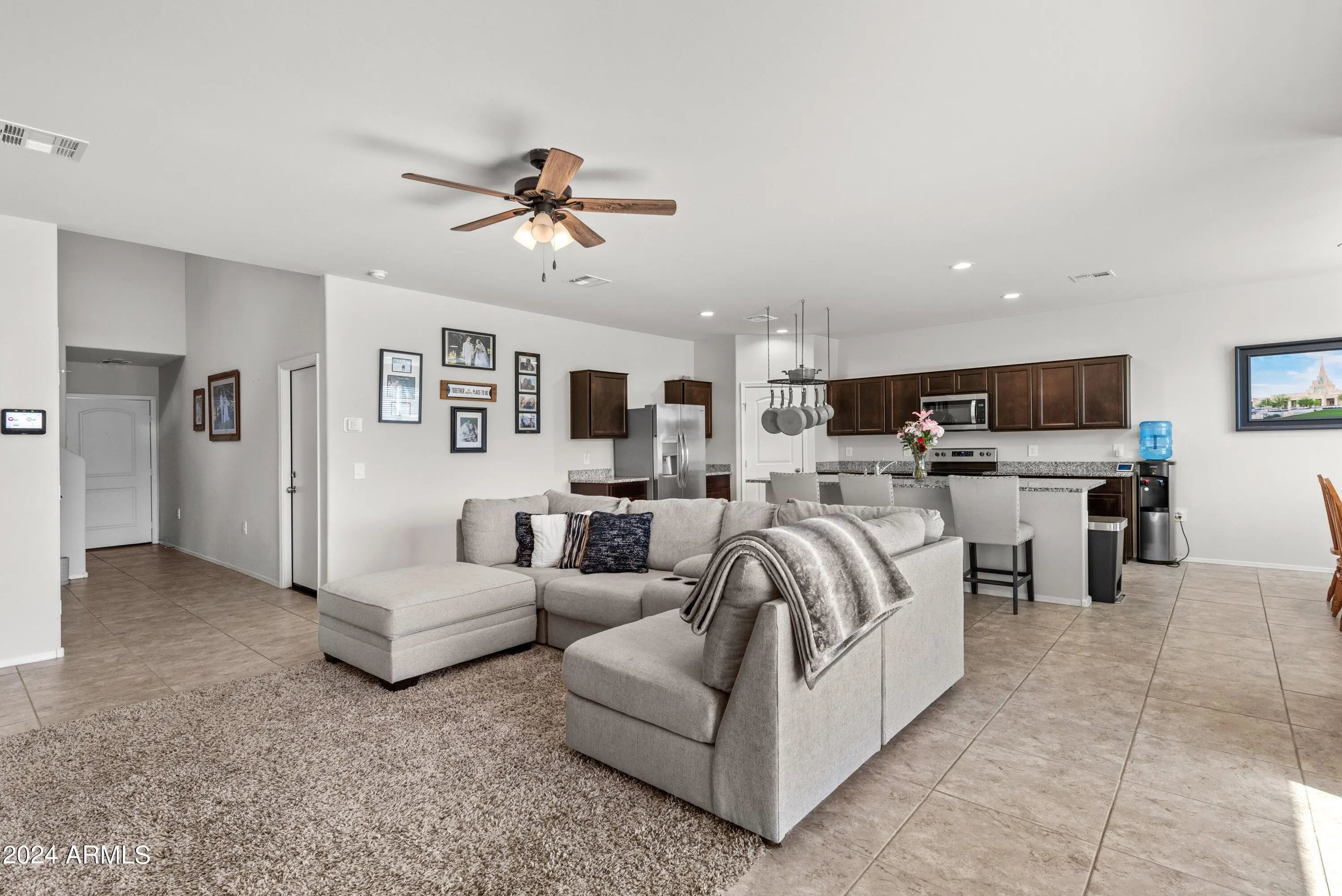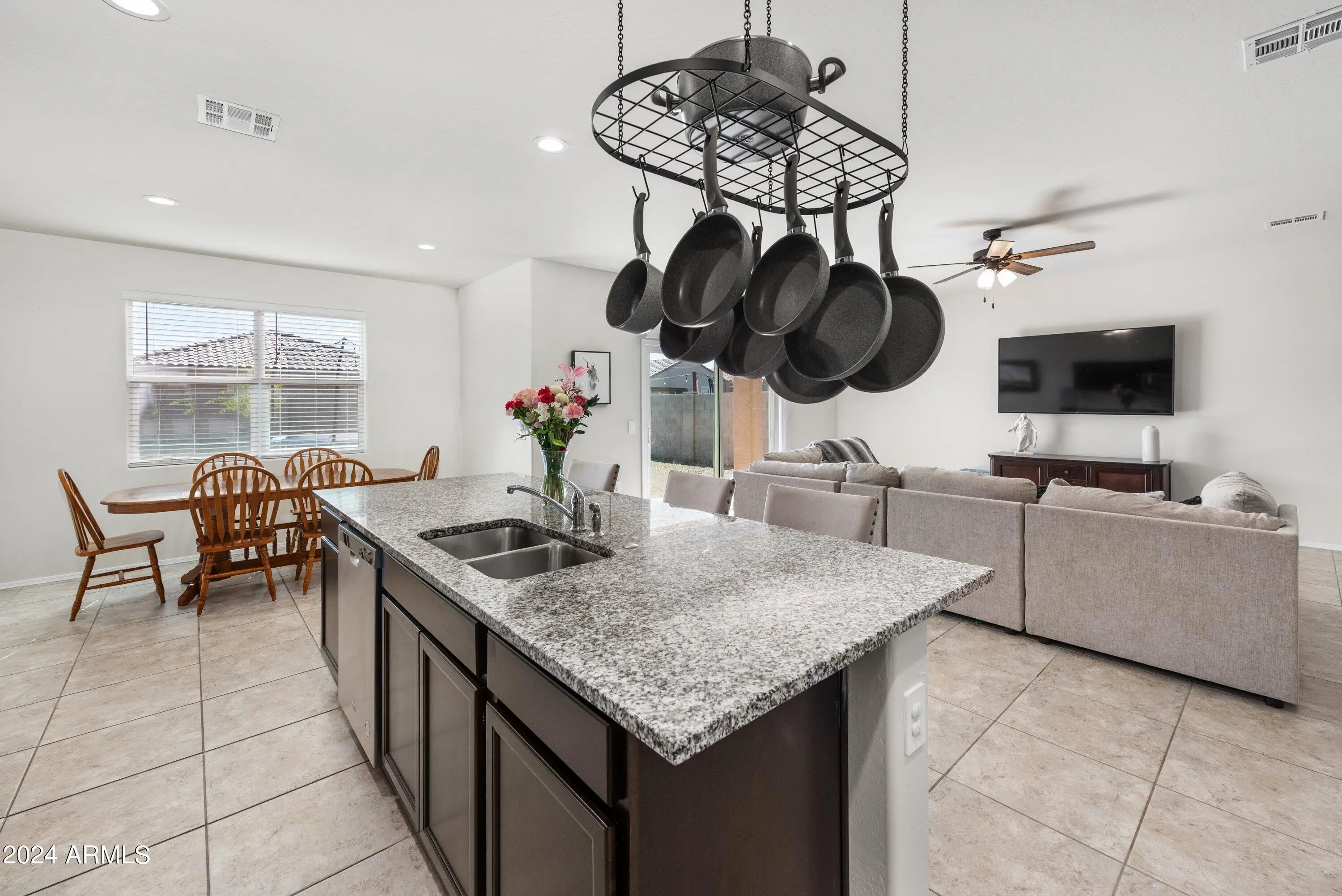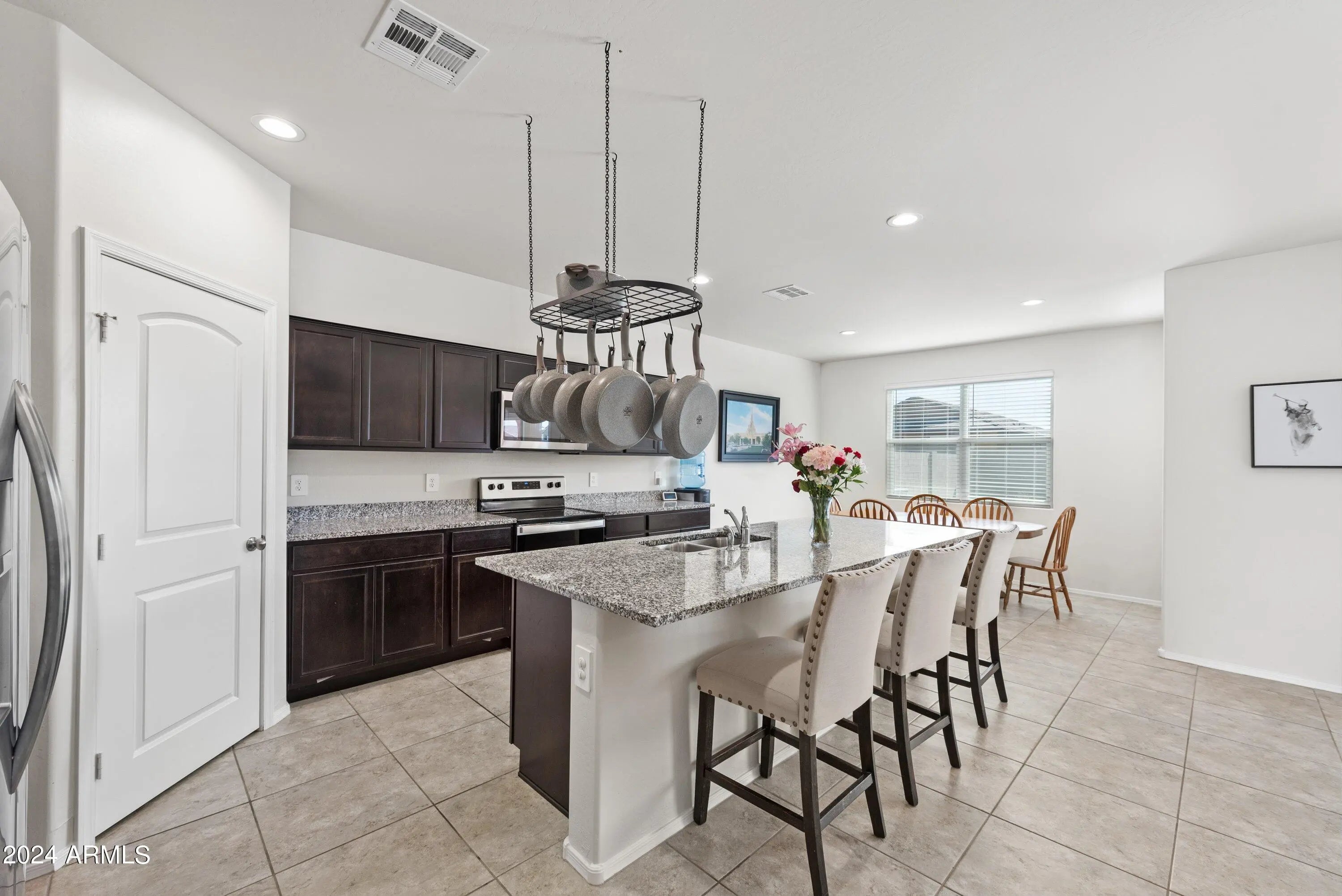 Step into this beautifully upgraded 2021 home in the peaceful Tortosa community. A rare find that's truly move-in ready and priced to sell quickly. With 2,274 sq ft of modern living, 4 spacious bedrooms, and 2.5 baths, this home delivers the perfect blend of contemporary style & desert comfort. The moment you walk in, you're greeted by soaring 9-ft ceilings, sleek tile flooring, and an open layout that feels bright, fresh, and inviting. The upgraded kitchen is a standout feature, offering granite countertops, a large island ideal for hosting, and a generous pantry that keeps everything organized. The seamless flow from kitchen to living and dining areas creates the perfect setup for everyday living and effortless entertaining. Make this your new happy place.