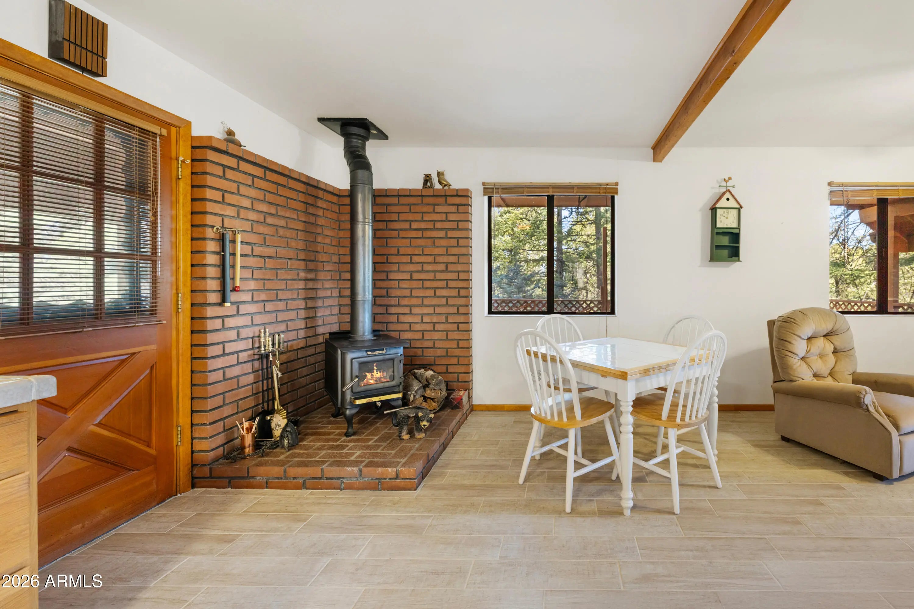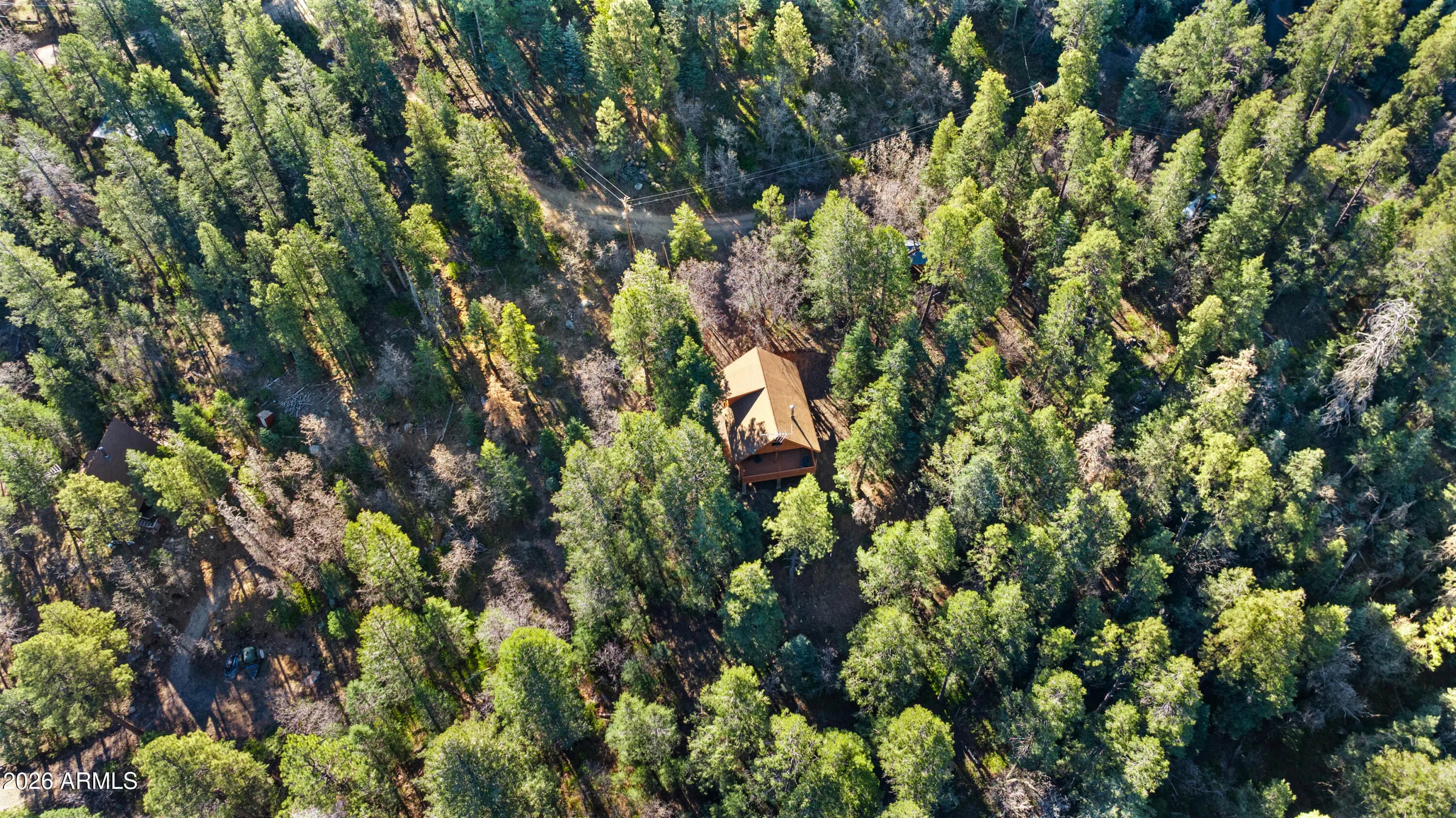 What if your next home came with 1.89 acres of towering Ponderosa Pines, cool mountain breezes, and the kind of peace you can actually hear? Tucked deep among the towering Ponderosa Pines on 1.89 acres of serene forest, this charming mountain cabin offers the kind of peaceful escape people dream about--but rarely find. Hidden away at the end of a quiet road and surrounded by nature, this property delivers privacy, fresh mountain air, and the calming sound of wind moving through the trees. The moment you arrive, you'll feel the pace of life slow down. Step onto the large covered deck and breathe in the cool mountain air while enjoying sweeping forest views that stretch for miles. It's the perfect setting for morning coffee, sunset conversations, or simply listening to the breeze moving through the pines--a sound locals know instantly relaxes the soul. Inside, the cabin welcomes you with warm rustic charm and a bright, open layout designed for easy living and entertaining. Recent updates include fresh new carpet and tile throughout, giving the home a refreshed feel while maintaining its cozy mountain character. The main floor features a spacious great room where the living room, dining area, and kitchen flow together seamlessly, creating a comfortable gathering space perfect for relaxing or hosting friends and family. A wood-burning stove anchors the dining area, adding both warmth and ambiance during cooler mountain evenings. Picture winter nights with a crackling fire while enjoying dinner, board games, or quiet conversation. The kitchen is well appointed with abundant cabinetry, offering plenty of storage while remaining open to the living space so you're always part of the conversation. Also on the main level is the primary bedroom and a full bathroom, providing convenient main-level living when desired. Upstairs, the home opens up even more with two generously sized spaces that offer incredible flexibility. The oversized bedroom provides plenty of room to unwind, while the expansive loft/family room could easily become a movie room, second living area, game room, or creative retreat. Below it all, the 682 sq ft garage occupies the entire lower level, offering ample space for vehicles, storage, tools, or outdoor gear. Outside, the property truly shines. With 1.89 acres of wooded privacy, the land offers space to explore, relax, and reconnect with nature. Wildlife visits are common, and the towering pines create a setting that feels worlds away from the noise of everyday life. Access has recently improved thanks to a neighborhood effort to enhance the final stretch of road, making it significantly better than in years past, though AWD/4WD is still recommended--a small trade-off for the incredible privacy and tranquility waiting at the end. This isn't just a cabin. It's a mountain sanctuary where days begin with crisp forest air and end beneath star-filled skies. If you've been searching for a true Prescott-area mountain getaway, this secluded retreat may be the one that finally brings you home.