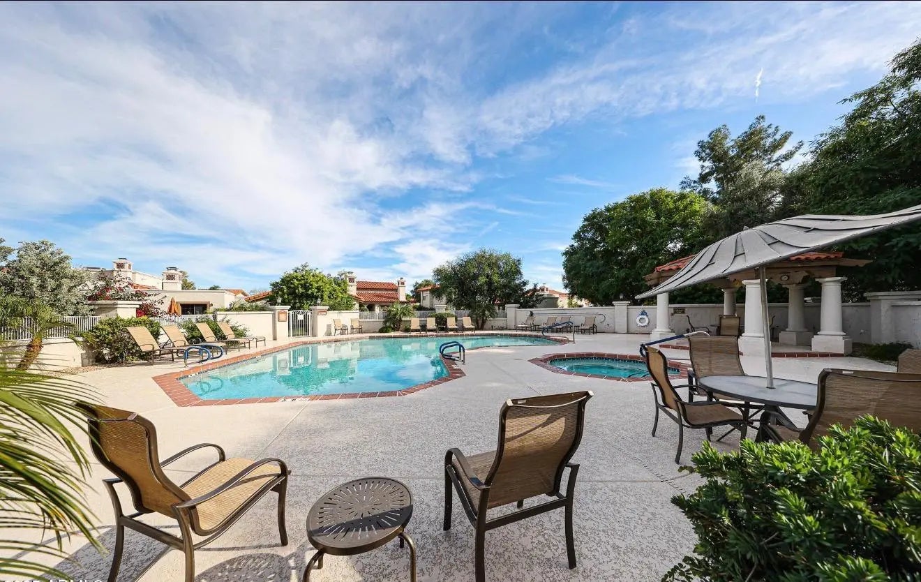 Move in ready 3 bedroom, 2.5 bath two story townhouse with a 2 car garage in the heart of Scottsdale. The primary suite is located downstairs with two additional bedrooms upstairs, offering a functional and private layout. Enjoy an extra large private patio surrounded by mature trees, perfect for relaxing or entertaining. The home features plantation shutters, all new appliances, relatively new carpet, and fresh interior paint. Unbeatable location with the Loop 101 just down the street, only 8 minutes to Old Town Scottsdale, close to the Salt River Fields, Talking Stick Resort and Casino, and about 15 minutes to Kierland Commons, Scottsdale Quarter, and Sky Harbor Airport.