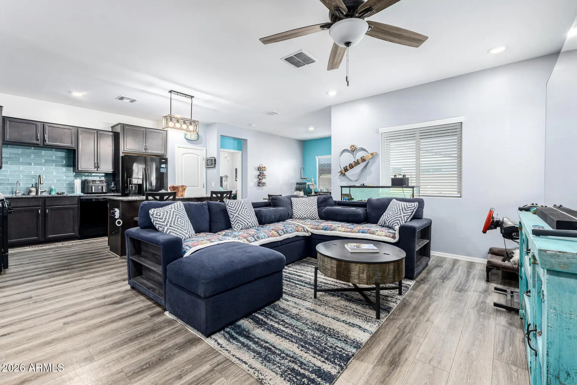 Welcome to your home in Luke Landing! Nestled on a corner lot directly across from the park - offers 3 beds, 2 baths, a 2-car garage, and a lovely low-care landscape. The inviting interior showcases a designer palette, recessed lighting, tons of natural light, wood-look flooring in common areas, and soft carpet in bedrooms. Designed for everyday living & entertaining, the seamlessly flowing open layout is sure to impress! The kitchen boasts matching appliances, granite counters, a tile backsplash, a pantry, staggered espresso cabinetry, and an island w/breakfast bar. Enter the main bedroom to find an ensuite with dual sinks & a walk-in closet. If you want to relax or have a fun gathering, the backyard awaits! Featuring a covered patio, artificial turf, a fire pit, and Gazebo. Welcome Home