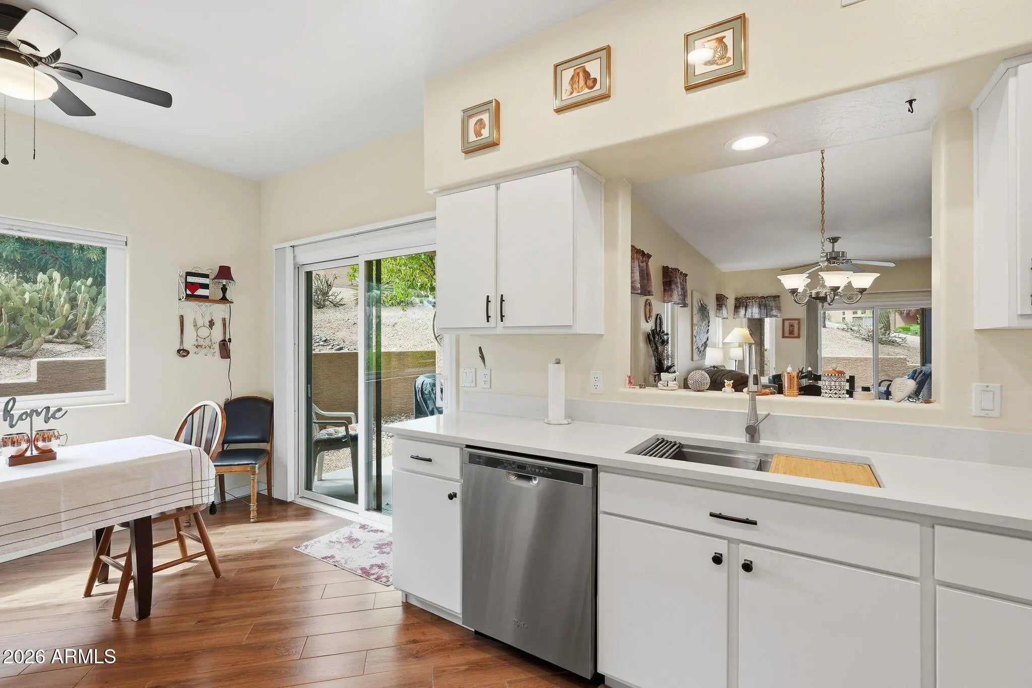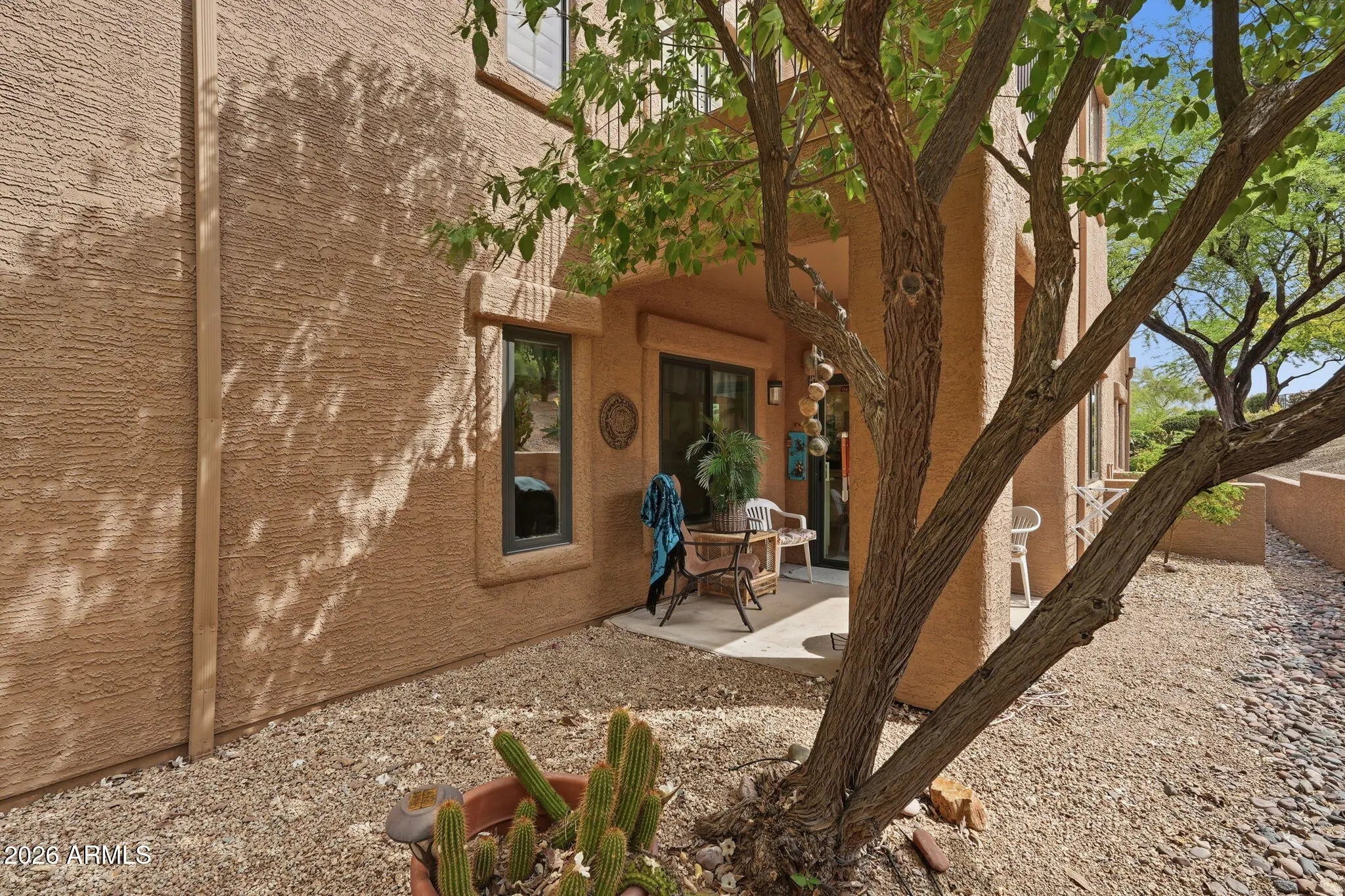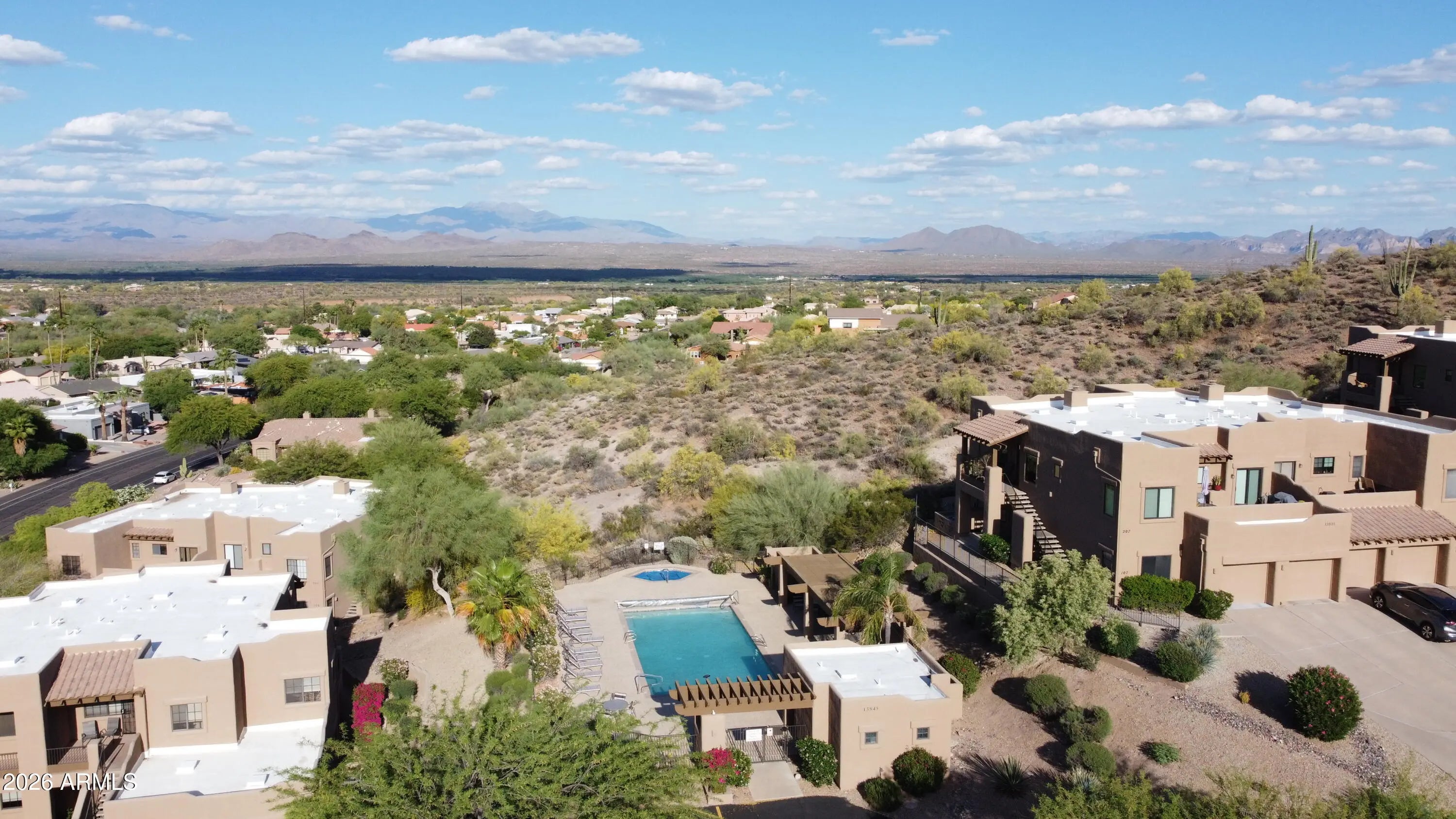 Discover easy desert living in this beautifully updated 2-bedroom, 2-bath ground-floor condo in the heart of Fountain Hills. Ideally situated on a quiet hillside just moments from Fountain Park, local shops, and dining, this home offers both convenience and everyday walkability. Inside, you'll find a thoughtfully remodeled kitchen featuring modern cabinetry, sleek countertops, and stainless steel appliances--perfectly blending style and functionality. Recent upgrades, including a newer AC system and brand-new Milgard windows, add comfort and efficiency, making this home truly move-in ready. The ground-floor location provides effortless access and a peaceful, shaded setting ideal for relaxing. Just steps away, the community pool and spa offer a well-maintained space to unwind, complemented by scenic views of the Four Peaks and McDowell Mountains.