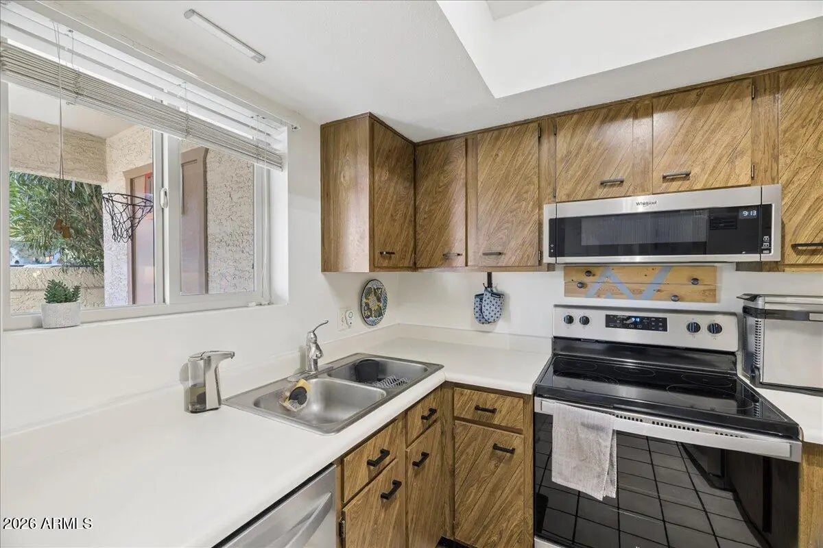 This beautifully updated 2-bedroom, 2-bath condo features dual patios & a prime poolside location. Both bedrooms offer walk-in closets, & the primary suite includes private patio access. Enjoy seamless indoor-outdoor living w/ sliding doors that open to a covered patio & direct access to the heated community pool--perfect for the Arizona lifestyle. Ideally located w/ easy access to scenic walking paths, greenbelt areas, Stone Creek Golf Course, & PV with trendy restaurants, shopping, & entertainment. Quick access to the 51 & 101 freeways. Additional highlights include a dedicated covered parking space directly in front of the unit. ample guest parking, proximity to Phoenix Preserve, Roadrunner Park, Sweetwater Park, Desert Ridge, Kierland Commons, Scottsdale Quarter, & Sky Harbor Airport.
