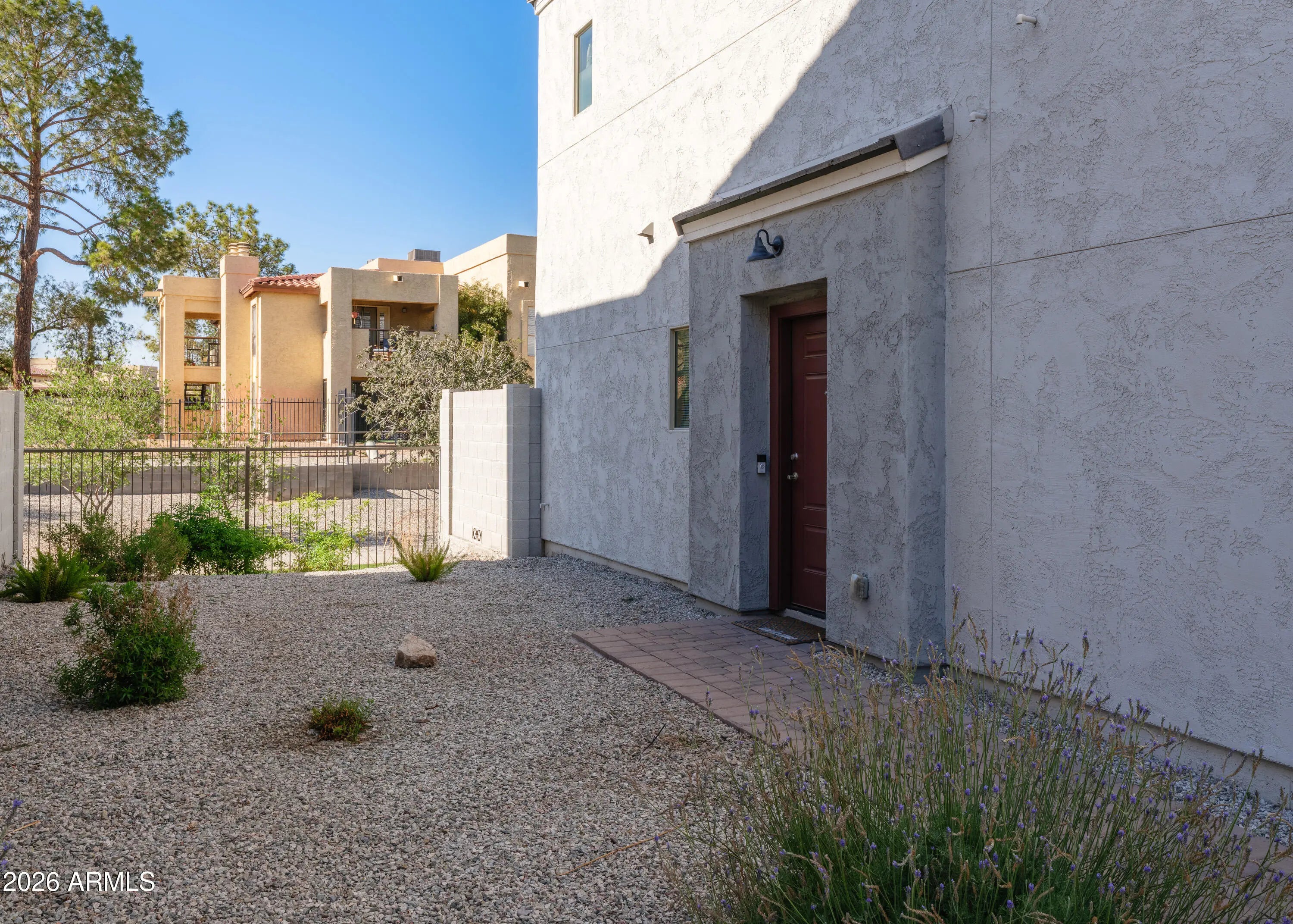 Modern, Chic, and a RARE FIND in 23 North... Oo La-La! Nestled in the quiet center of the subdivision, this 2bd, 2.5ba end unit townhouse is a showstopper. With only one shared wall and natural light from every angle, you'll forget you're in a townhouse. Did we mention the 2-car garage? An open kitchen welcomes you with granite counters, new appliances, and tile flooring that flows to a private back patio. Upstairs, find two spacious bedrooms, each with its own en-suite bath and walk-in closet for the privacy and relaxation you deserve. Feel safe and secure in this gated community with resort-style pool, playground, and gorgeous walking paths. Just minutes from the I-17 and the 101. Dining and shopping is right around the corner. Move-in ready, contemporary, and effortlessly maintained.