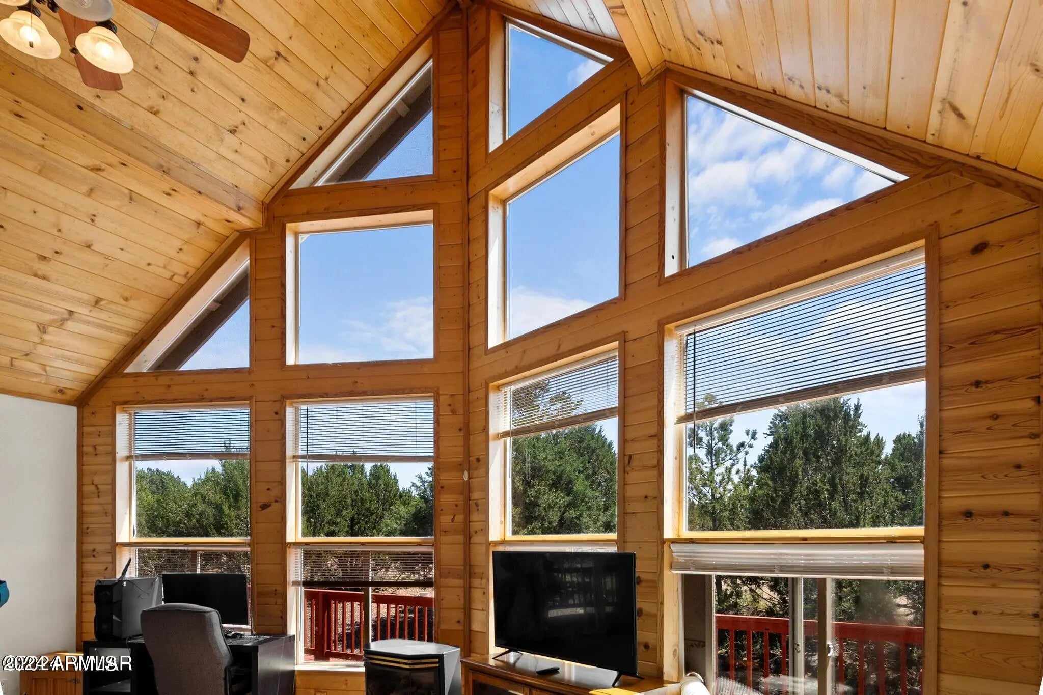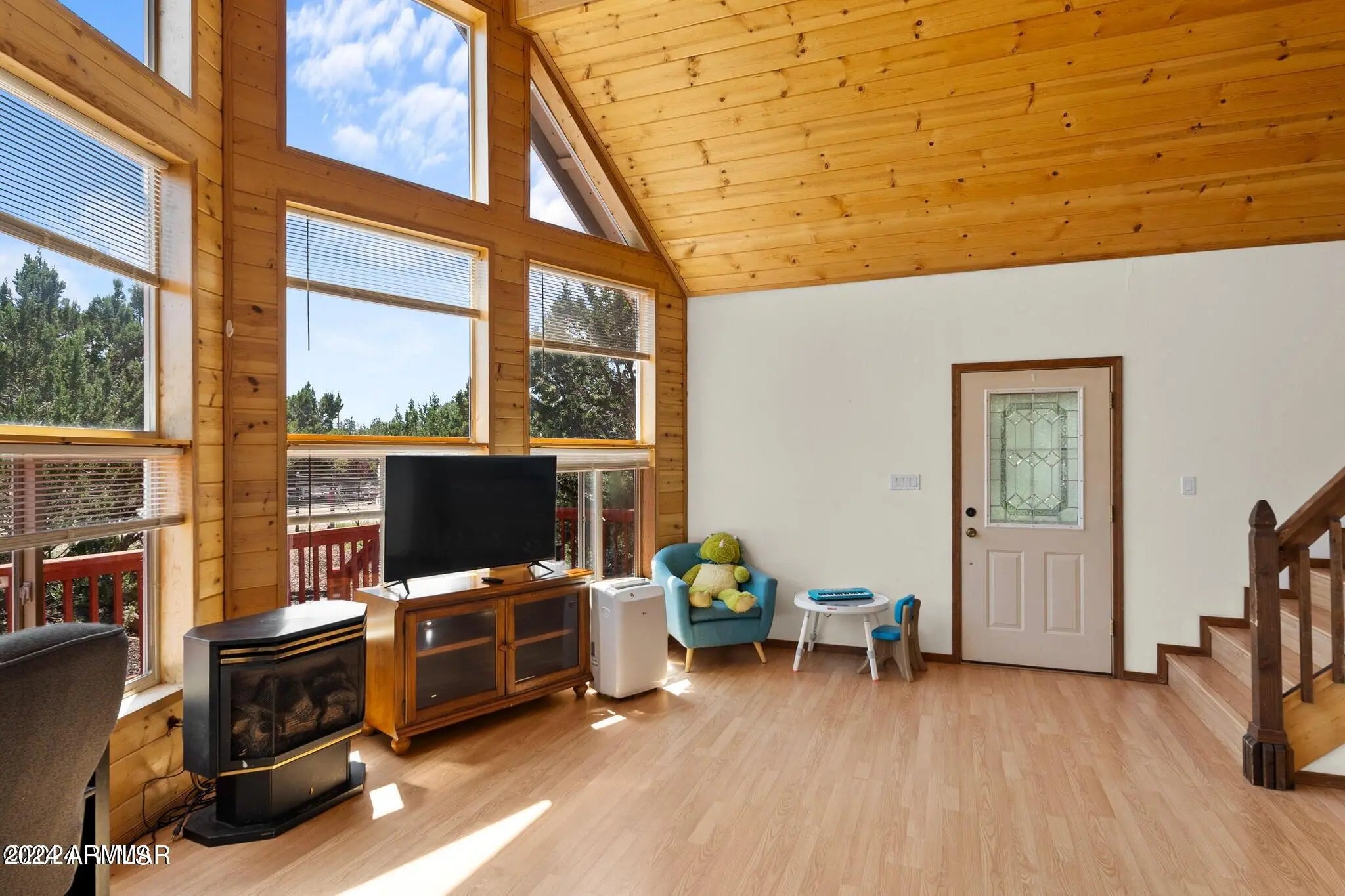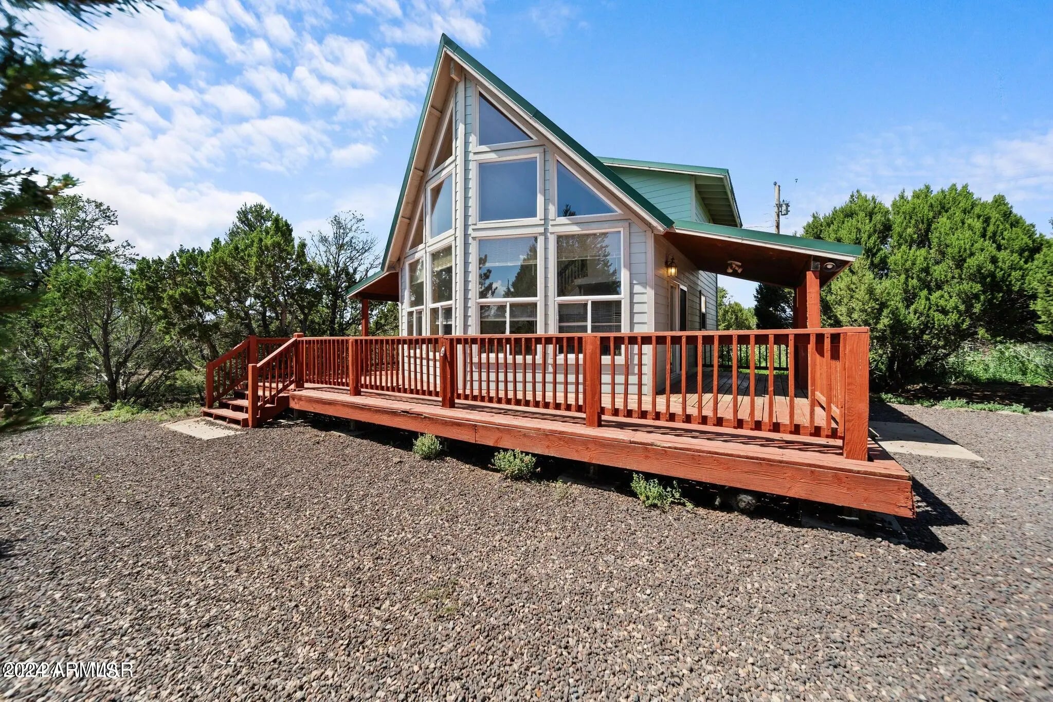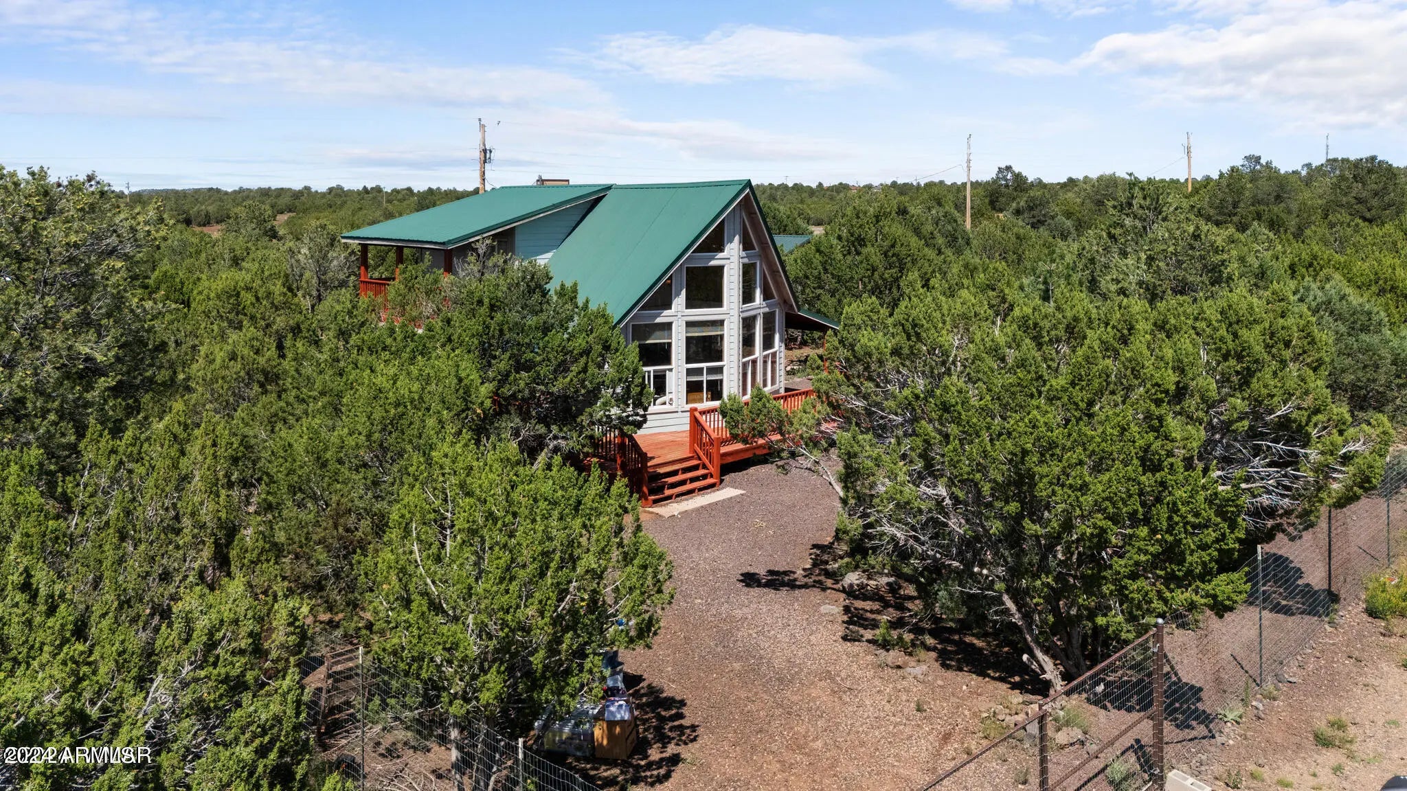 Escape to peaceful living with this charming 2-bedroom, 2-bath home set on 0.47 acres, offering space, privacy, and gorgeous views. Tucked just outside of town, you'll enjoy the perfect balance of quiet seclusion while still being close to everyday amenities. Step inside to find large, stunning windows that fill the home with natural light and showcase the beautiful surroundings. The second-level patio provides the perfect spot to relax, entertain, or take in the views. This fully fenced property offers added privacy and flexibility, with no HOA restrictions. Stay cozy during cooler months with a pellet stove, adding warmth and character to the home. With plenty of potential to personalize and make it your own, this darling property is ideal as a full-time residence or getaway