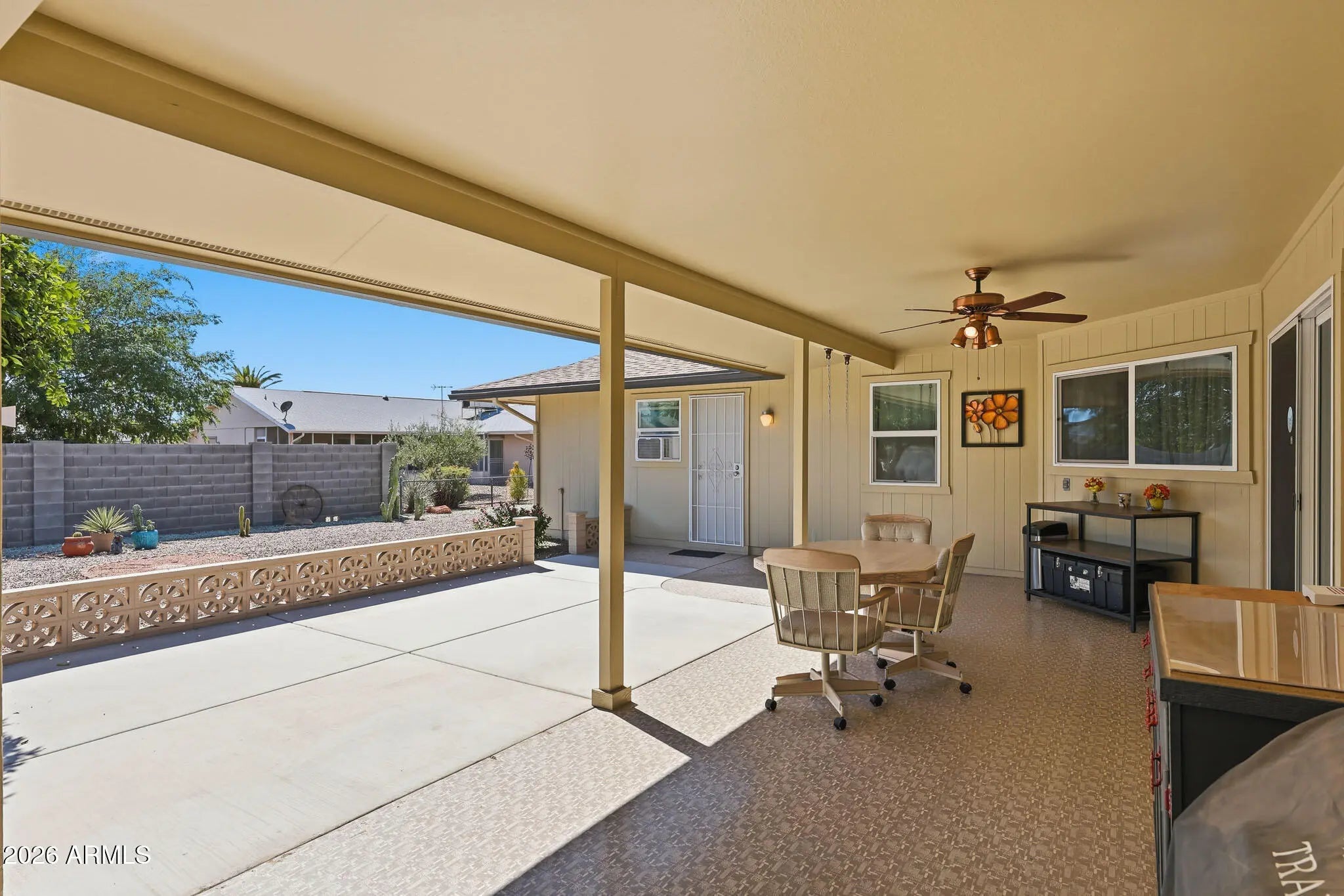 Welcome To This Beautifully Maintained Yavapai Model Home Located In Sun City, Arizona. This 3 Bedroom, 2 Bathroom Home Offers A Functional Floor Plan, Modern Updates, And Multiple Living Spaces - Perfect For Full-Time Living Or Seasonal Residents. This Sun City Home Features A Newer AC Unit (Only 1 Year Old) And Fresh Interior And Exterior Paint, Providing Move-In Ready Comfort. The Electrical System Has Been Updated With Aluminum-To-Copper Pigtail Connections For Improved Safety And Reliability. As You Enter The Home, You Are Greeted By A Private Fenced Front Patio - Ideal For Outdoor Relaxation. Inside, The Home Offers Two Separate Living Areas, Including A Spacious Living Room With A Cozy Gas Fireplace. The Open Kitchen Overlooks The Living Space Perfect For Entertaining, With A Farm Sink, And Two Pantries - Offering Plenty Of Storage And Functionality. The Guest Bedrooms Feature Built-In Closets And Drawer Systems For Efficient Organization. The Primary Bathroom Has Been Updated With A Shower Surround And Toilet, While The Guest Bathroom Also Includes An Updated Toilet. The Backyard Includes A Covered Patio And Partial Fencing - Perfect For Enjoying The Arizona Lifestyle. This Is A Must See Home. Please Stop By And See It Soon!