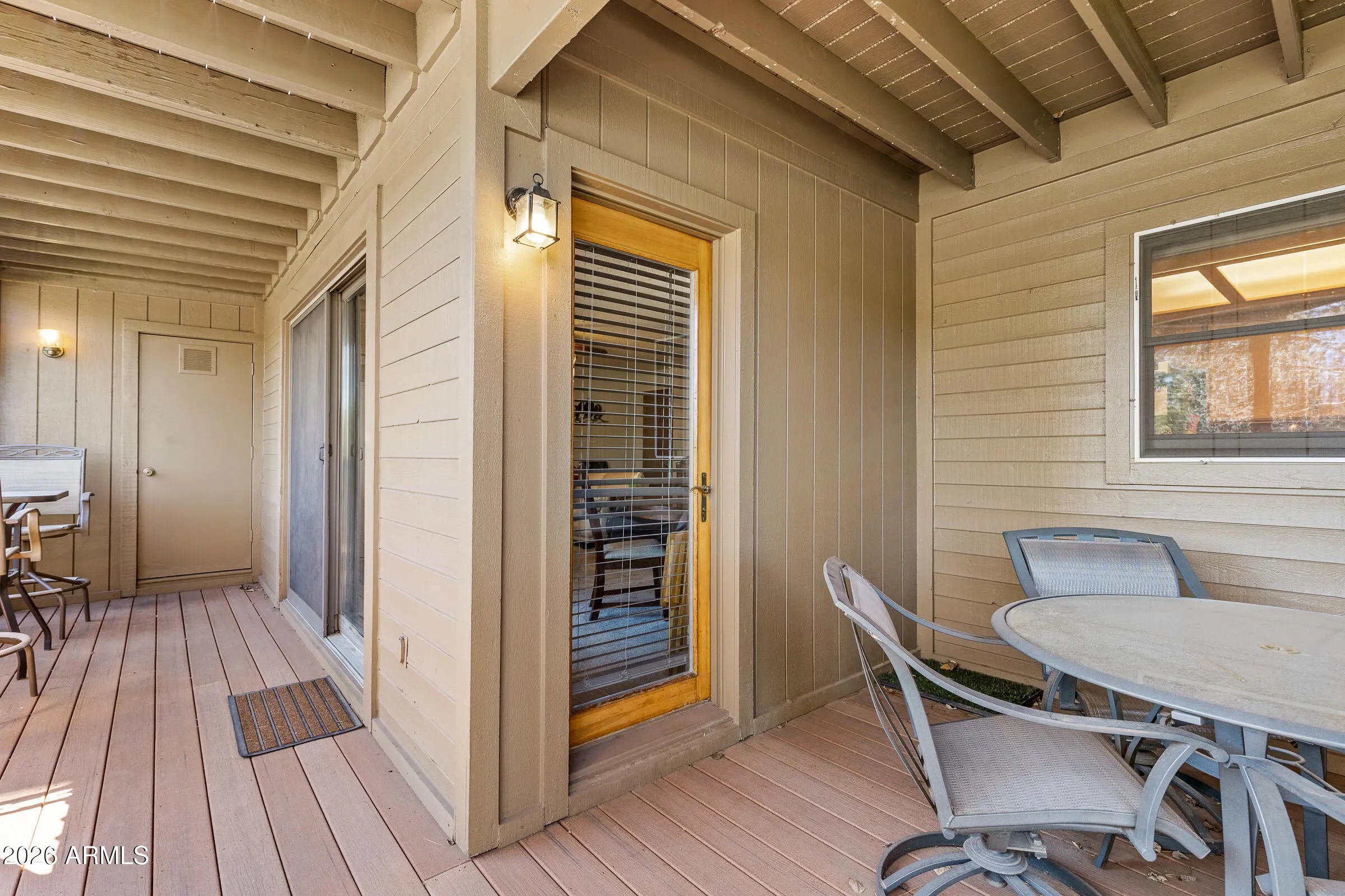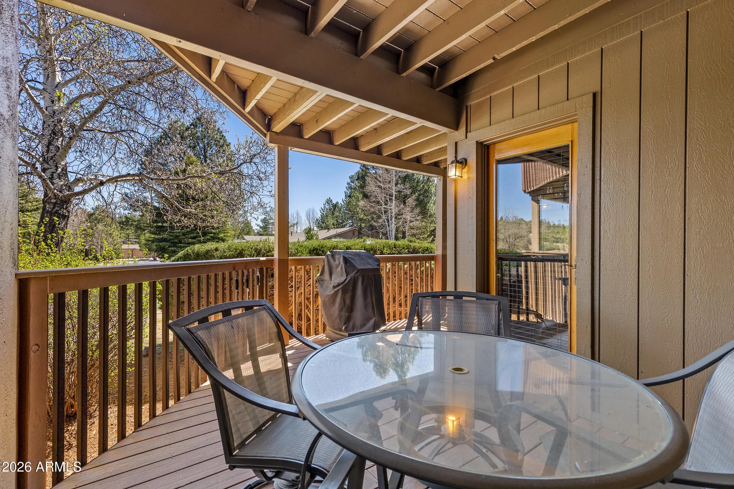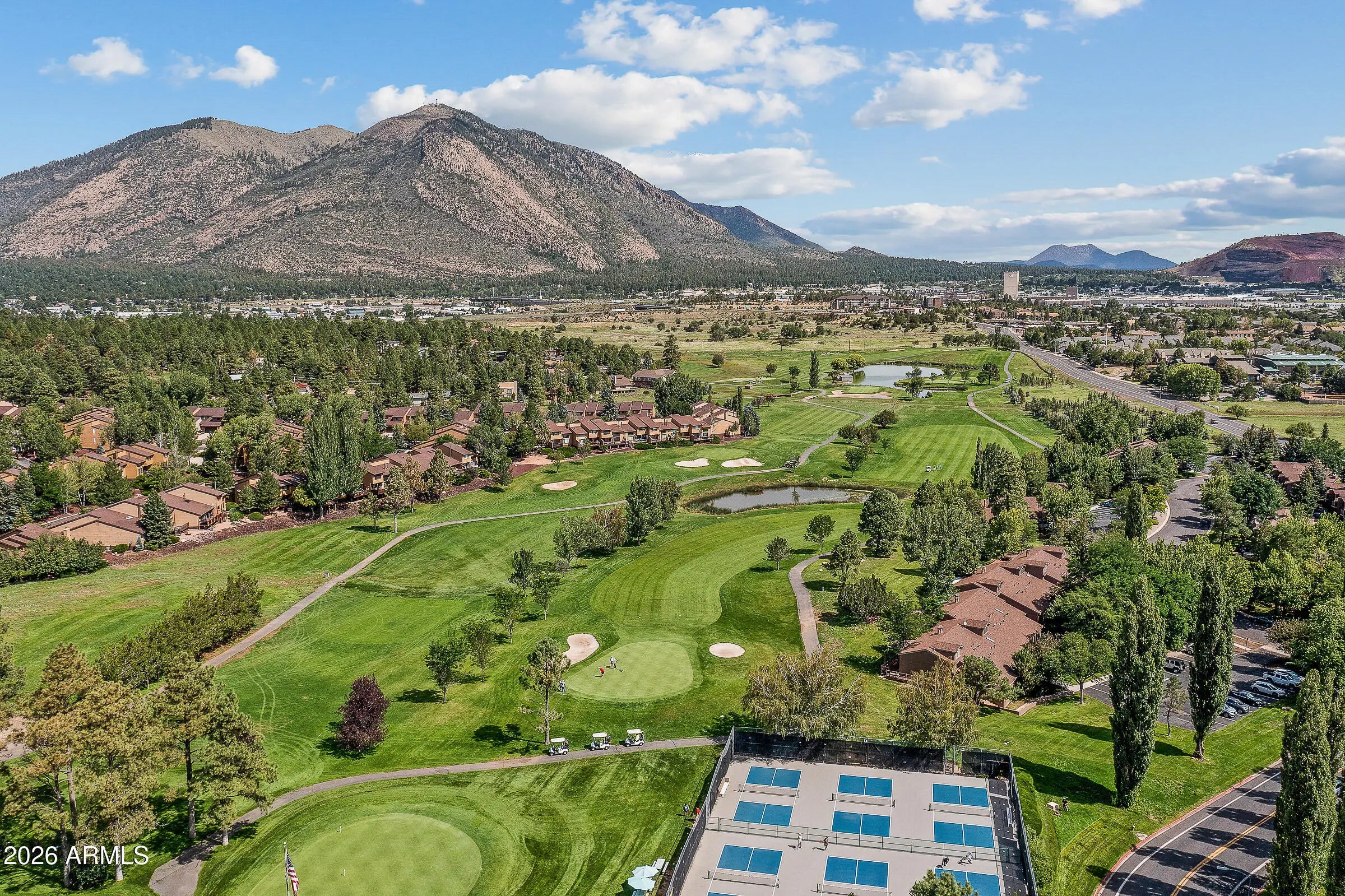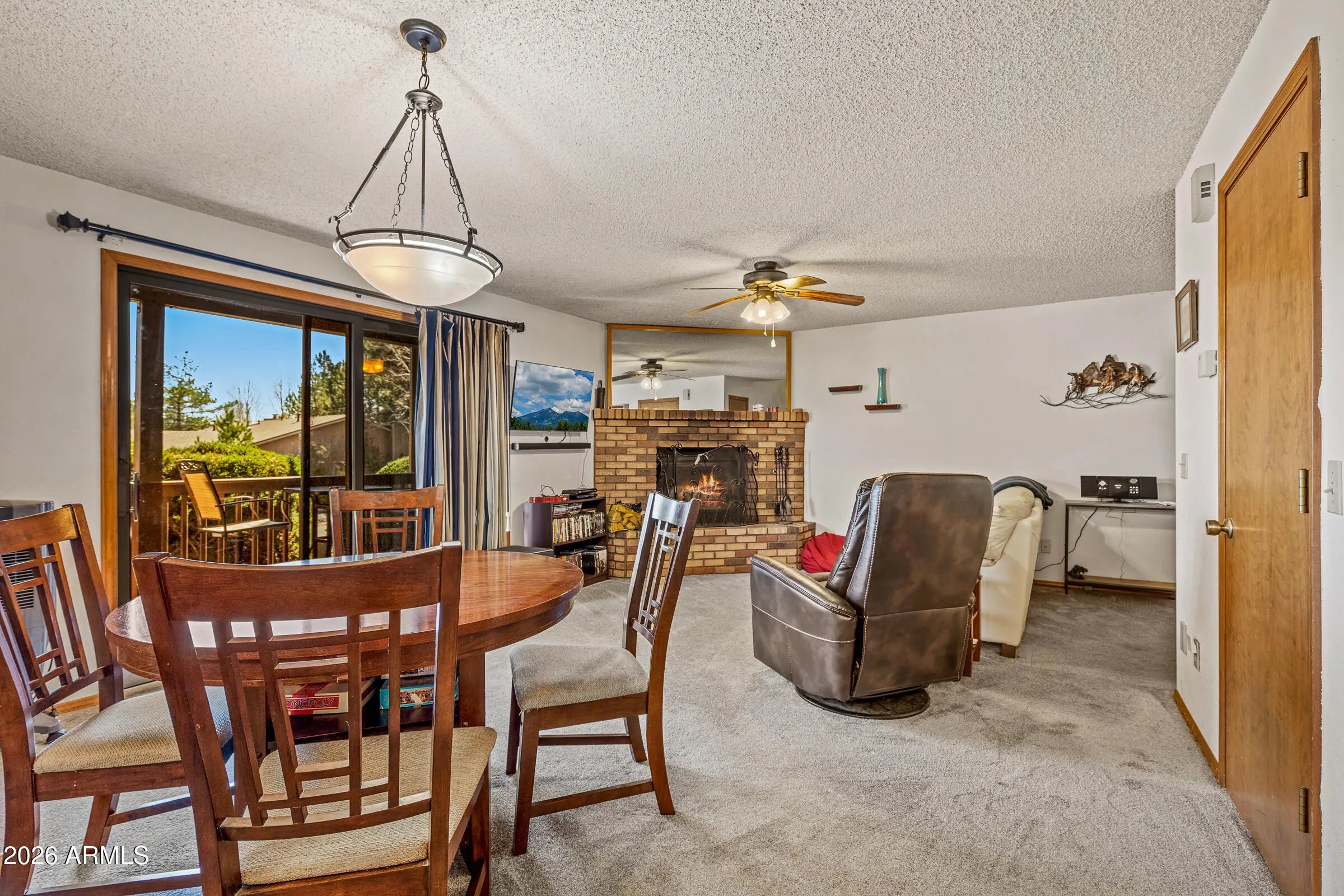 Welcome to this thoughtfully maintained 2-bedroom, 2-bath condo in the highly desirable Continental Country Club. The living space is warm and inviting, centered around a cozy fireplace that adds the perfect mountain touch. The main living area opens to a private deck, offering a peaceful spot to relax and take in Flagstaff's cool evenings. The kitchen features a functional layout with ample cabinetry and storage, making everyday living easy. The primary suite offers patio access and serene views, creating a quiet and comfortable space to unwind. A well-designed floor plan provides flexibility whether you're living here full time or using it as a getaway. Residents enjoy access to golf, a clubhouse, pool, tennis courts, and nearby trails, all just minutes from shopping dining, and downtown. Offered fully furnished!