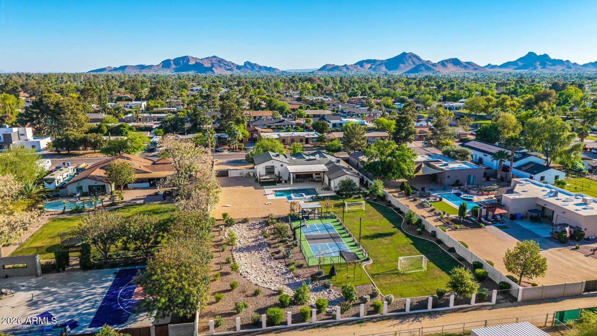 2023 rebuild w/ 5-bed / 4.5 bath on nearly an acre in Scottsdale's coveted zip code 85254. Built with all-new mechanical systems, this luxury homes includes Chef's kitchen w/ high-end S/S appliances , gas range, large office/bonus room & game room. Rooms include California Closets, automatic blinds, Sonos & whole-home professional grade networking. Enjoy a resort-style backyard with heated/cooled pool, spa, misting system, and patio heaters. Sports court with pickleball, basketball, and soccer field. Equestrian-zoned with bridle path access and room to expand. Prime location near Paradise Valley Mall, shopping, dining, parks, & A+ Rated schools. A rare opportunity to own a new estate in one of Scottsdale's most sought-after locations.