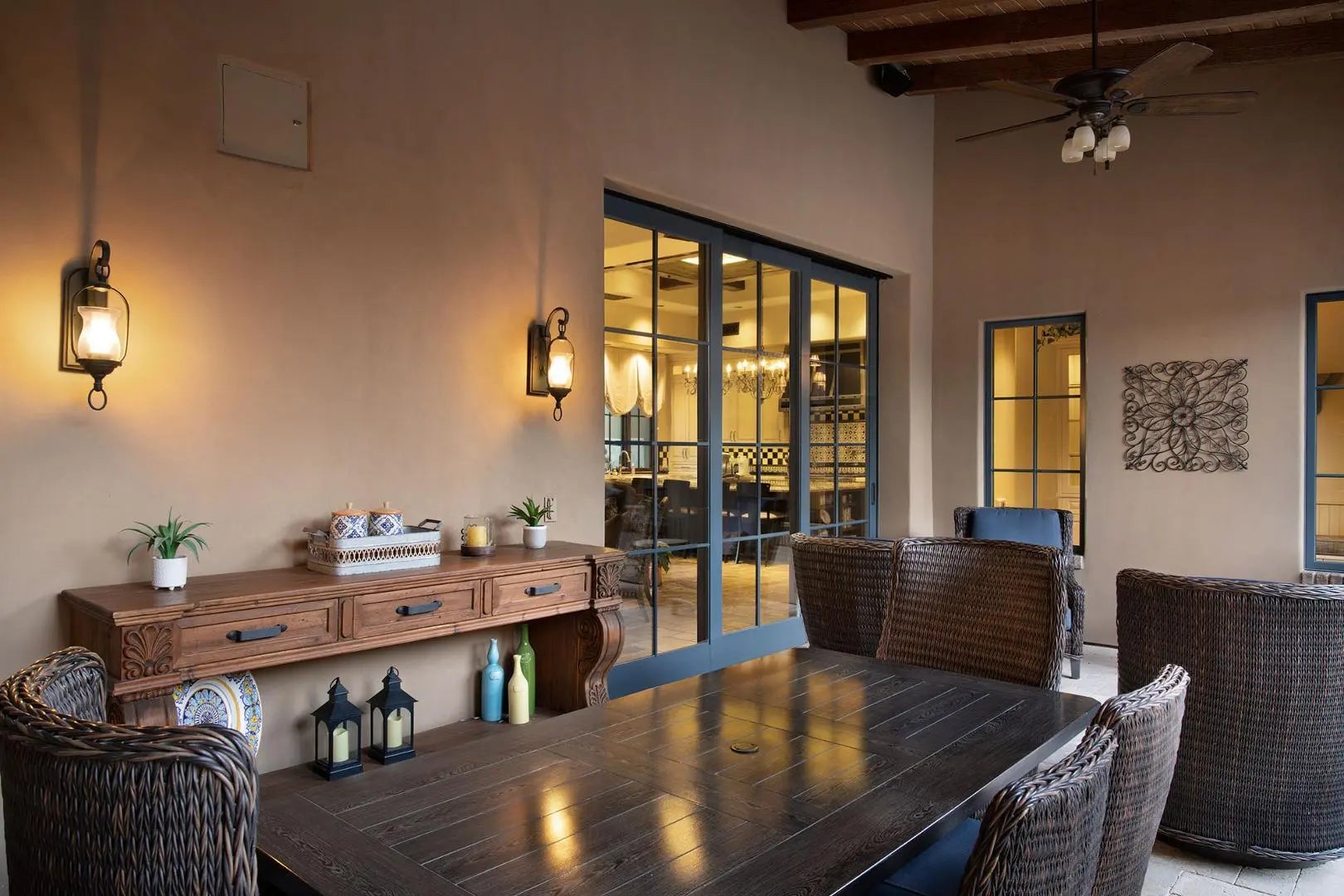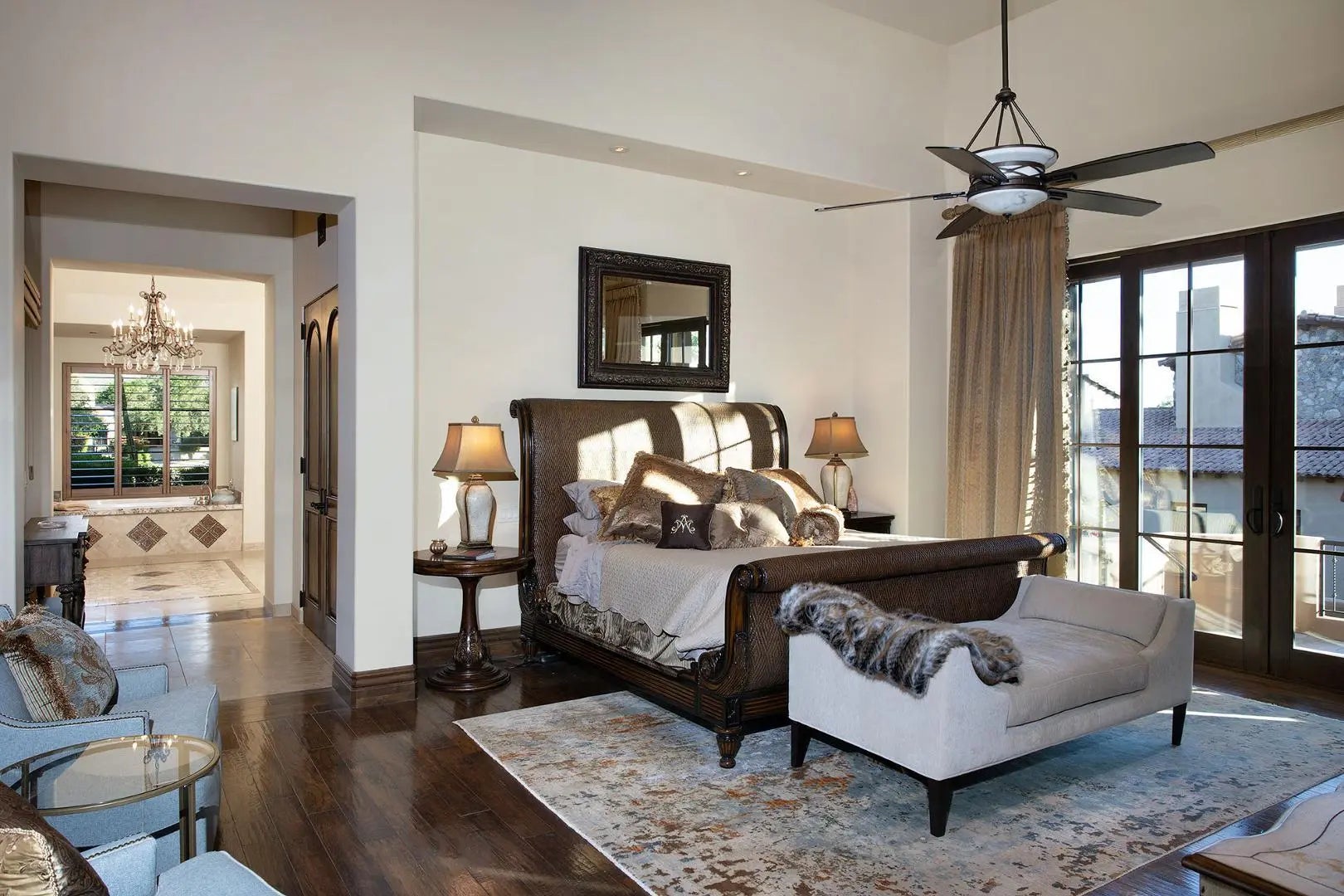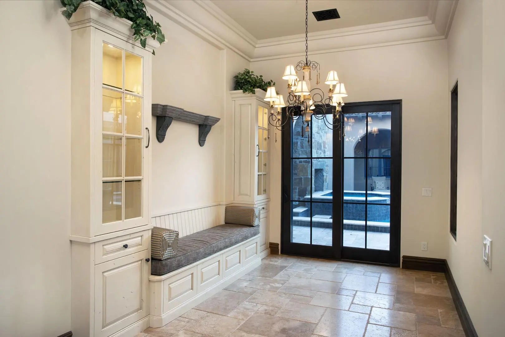 This single level masterpiece is located in the highly desired guard gated Arcadia neighborhood of Silverleaf. It showcases a private inner courtyard designed for intimate gatherings on the patio areas around the sparkling pool and spa. The home has a spacious split floor plan with high end finishes throughout. The gourmet kitchen features top of the line appliances and opens up to great room that opens to a side patio and barbecue area. The home sports separate formal dining room and an office that could be converted to another bedroom. The primary suite is a true sanctuary with a spa like bath, its own laundry, large closest and its own private patio with fire pit overlooking the picturesque landscape. a separated large room with a full bath is connected to a covered patio just behind.. the sparkling pool and spa that includes a Murphy bed that can be used as a guest Casita, 4th bedroom, theater or media room, fitness room, golf simulation room or nearly anything you can imagine. With high end finishes and designer touches throughout this exquisite home is sure to please the most discriminating. Also included is a covered view deck and a 3 car garage. The interior has been freshly painted.