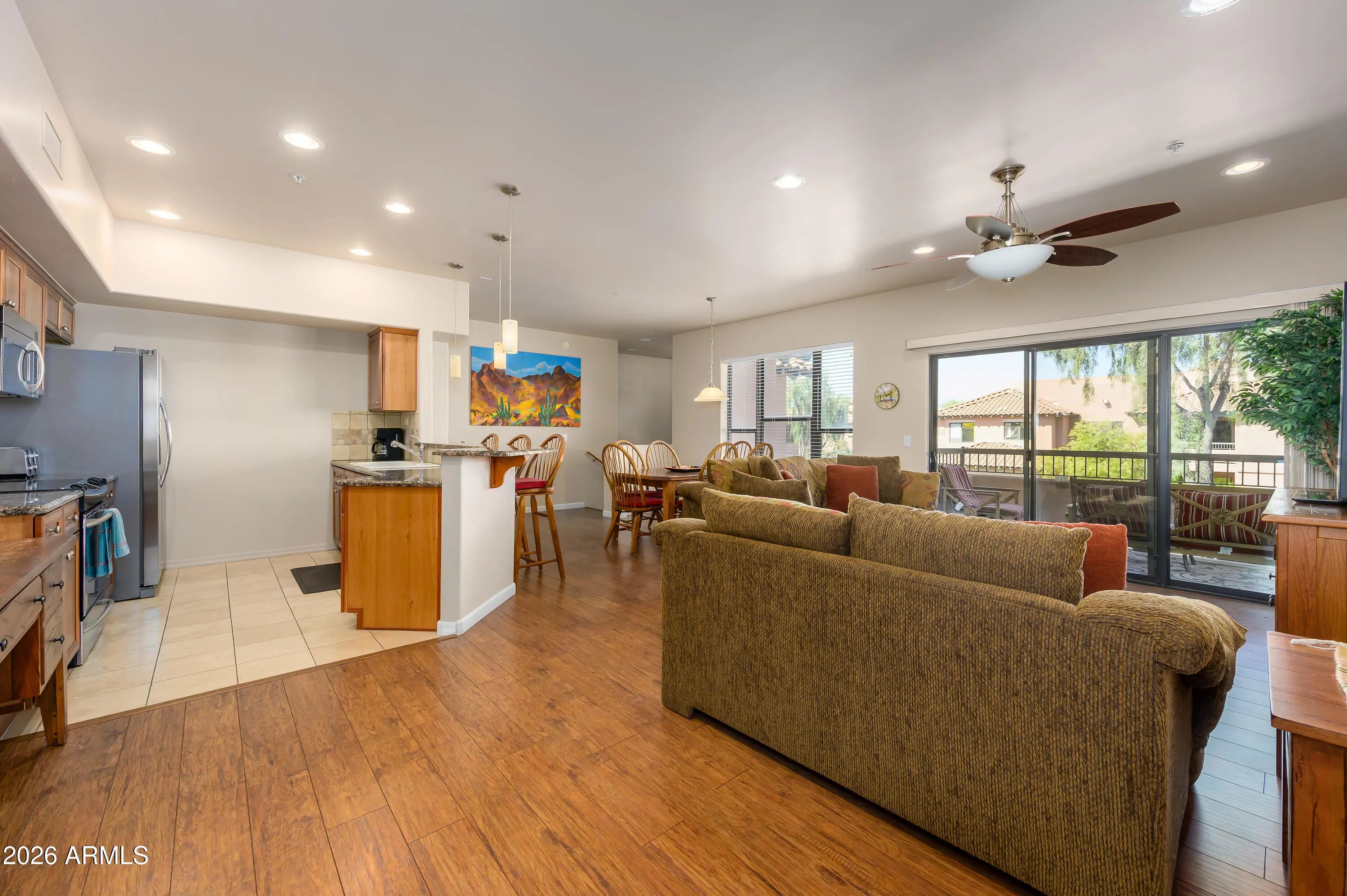 Welcome to resort-style living in the highly sought-after La Verne community! This spacious 2-bedroom, 2-bath condo features an open-concept floor plan designed for comfortable living and effortless entertaining. Kitchen is complete with granite countertops, a convenient breakfast bar, and ample cabinet space. Enjoy the added convenience of a 2-car garage with direct access to the home--perfect for everyday ease and security. Both A/C's replaced 4/14/2022 and refrigerator 3/2023! Residents of La Verne enjoy an array of premium amenities, including two sparkling pools/spa, a beautifully appointed clubhouse, Billiard room, media room, a full kitchen and dining space ideal for hosting gatherings. On-site management adds an extra level of convenience and peace of mind. (See more) Ideally located within La Verne and just minutes from Desert Ridge and City North you will enjoy endless options for dining, shopping, and entertainment right at your fingertips. With quick access to the Loop 101 and 51 freeways, commuting around the Valley is a breeze. Don't miss this opportunity to enjoy comfort, convenience, and community all in one!