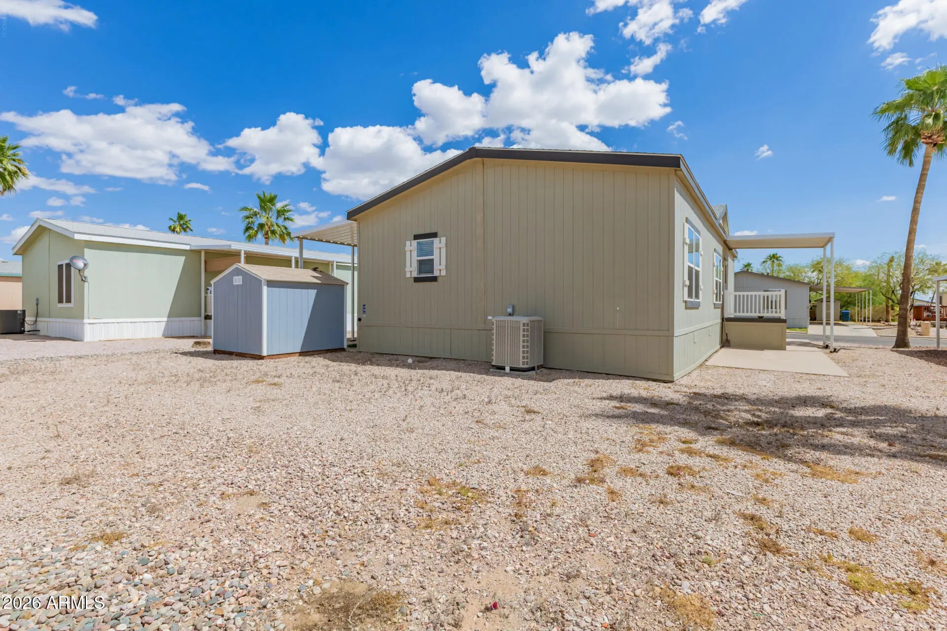 Welcome to this 2020 model ready for a quick move-in. Features a split floor plan. Large laundry room, kitchen island, and an oversized walk-in pantry, washer and dryer and an upgraded refrigerator. The front deck has a patio cover, and motion sensor lighting at the front and rear area. Includes a storage shed. Located in a gated, all ages community offering a heated pool, fitness center, dog run, playground, cabaña, covered BBQ area, and activities for adults and children. RV parking available. Lender options for this property type are available. Unit also available for lease - must qualify with Buena Vista community office on-site.