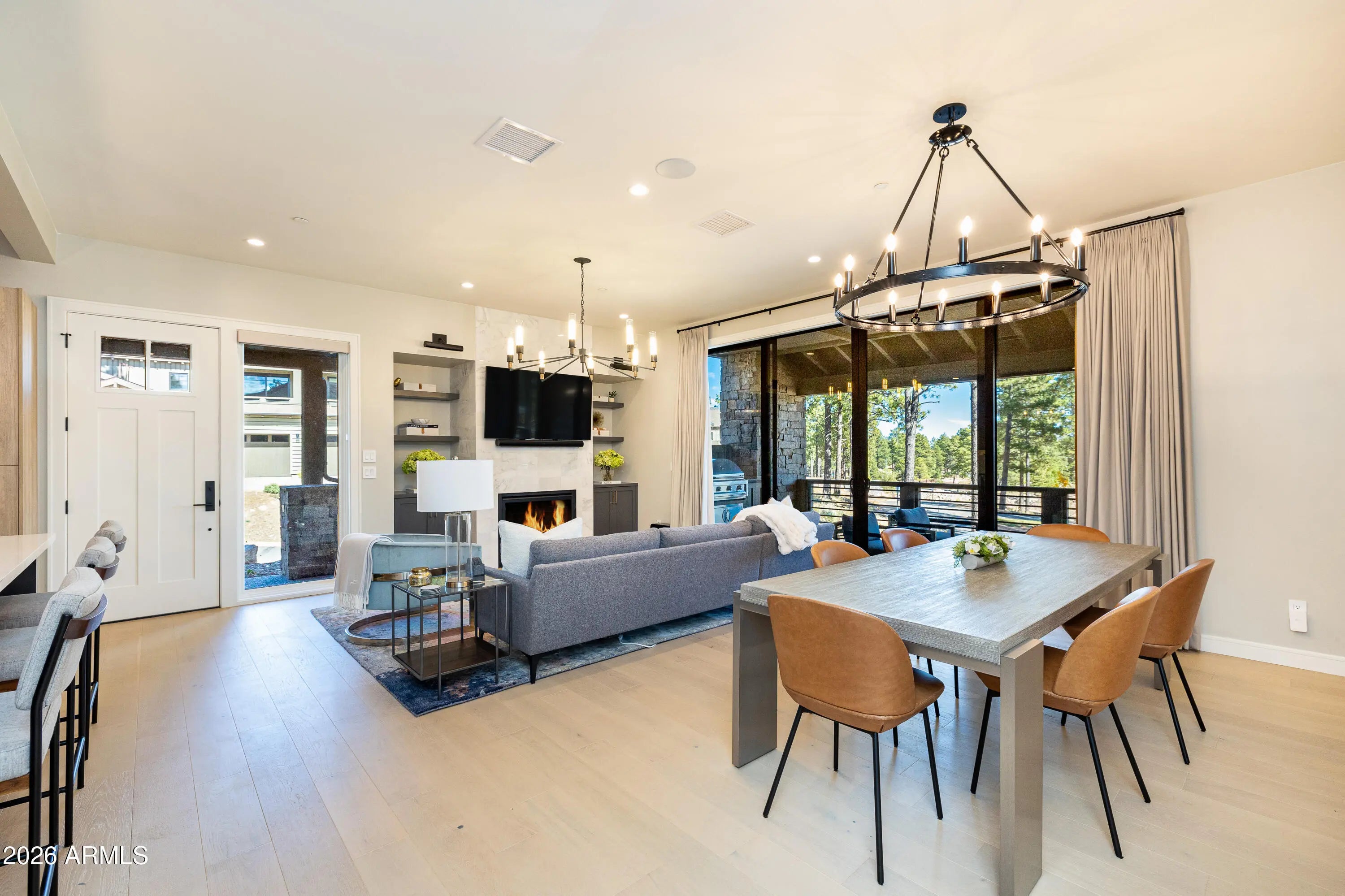 2993 S. Tourmaline Dr Unit #33, Flagstaff, AZ 86005. Welcome to summer! The grass is GREEN and the temps are perfect high 60's and blue skies! Guard gated beautiful Pine Canyon, Mountain Vista delivers a turnkey lightly lived in mountain modern. Two bedrooms including the generous primary with open space, grass and trees separate with an abundance of natural light. The secondary bedroom ensuite and guest casita provides ample space for guests or family. The residence features sleek tile gas fireplace, quartz counters, luxurious cabinets and a luxury feel throughout. The two-car garage is attached for all single level living. The covered patio is perched up high for privacy with stainless steel gas BBQ and granite tops, a dog gate for your pets and walking distance to the Clubhou Some of the community amenities you must have a membership. Call for details.
