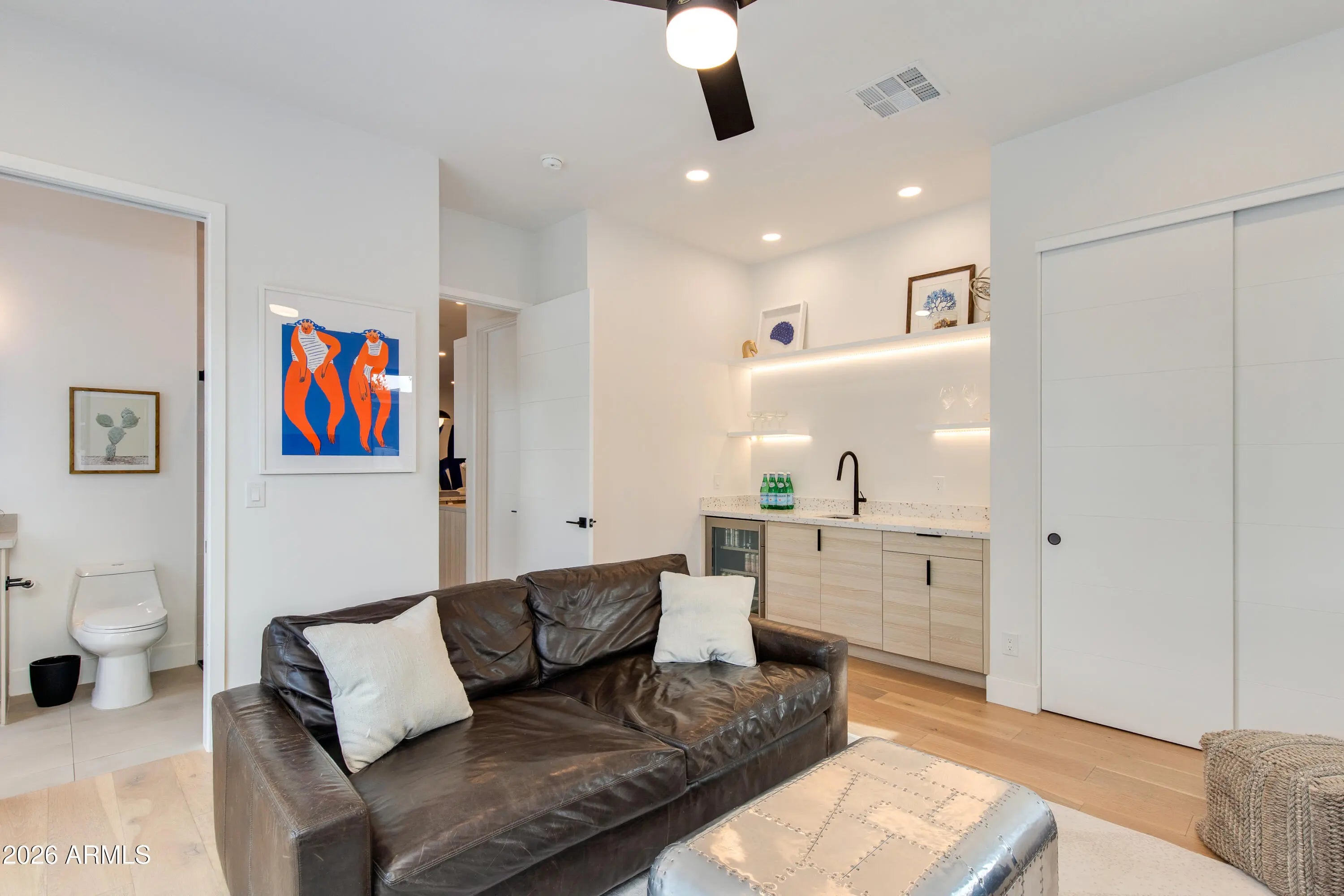Located in the coveted ''magic island'' zip code of 85254, this 2023 full-rebuild delivers modern luxury, thoughtful design & elevated everyday functionality in one of the Valley's most desirable locations. Offering a Scottsdale address with Phoenix services, enjoy close proximity to Kierland, Paradise Valley, & the Camelback Corridor. This 5 bed, 4.5 bath home features a versatile layout ideal for guest quarters or Airbnb-style use, including a private flex space with full bath, wet bar, & backyard access. The owner's suite is a true retreat with dual vanities, freestanding tub, large shower, split W.I.C. & private outdoor shower. Open-concept living extends to a resort-style backyard with pool, BBQ, turf & putting green, while front-facing Camelback Mountain views elevate the experience.