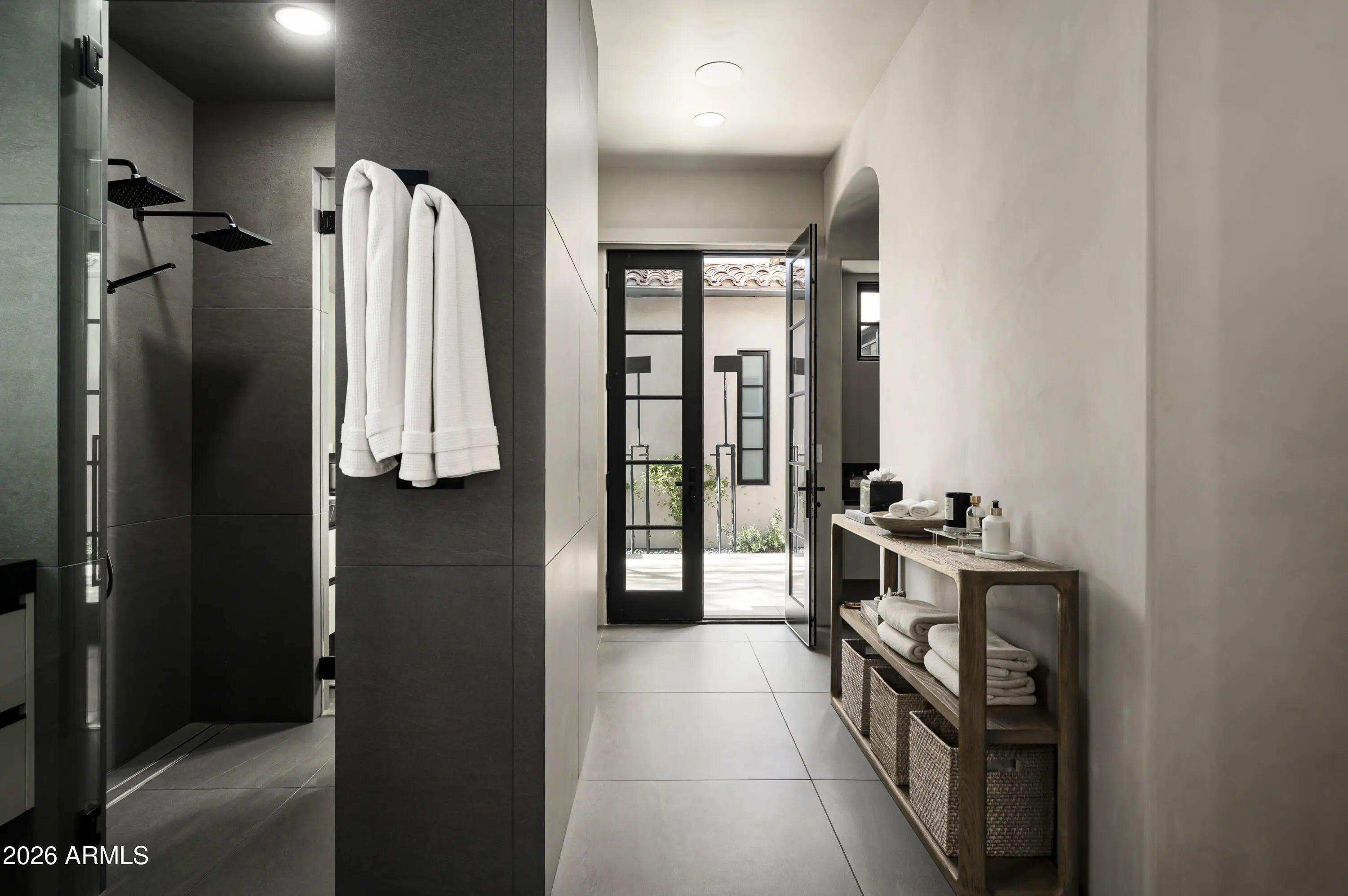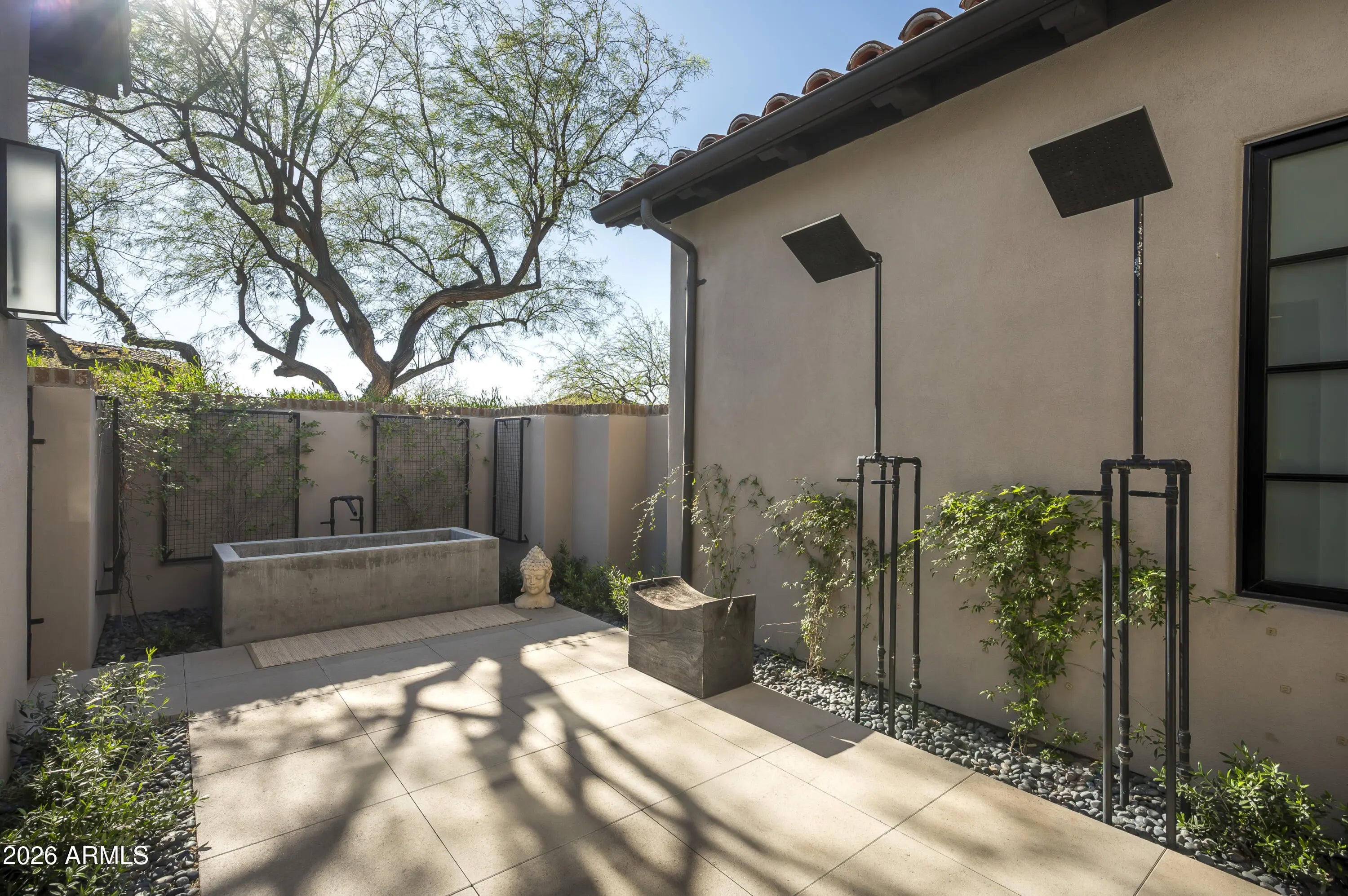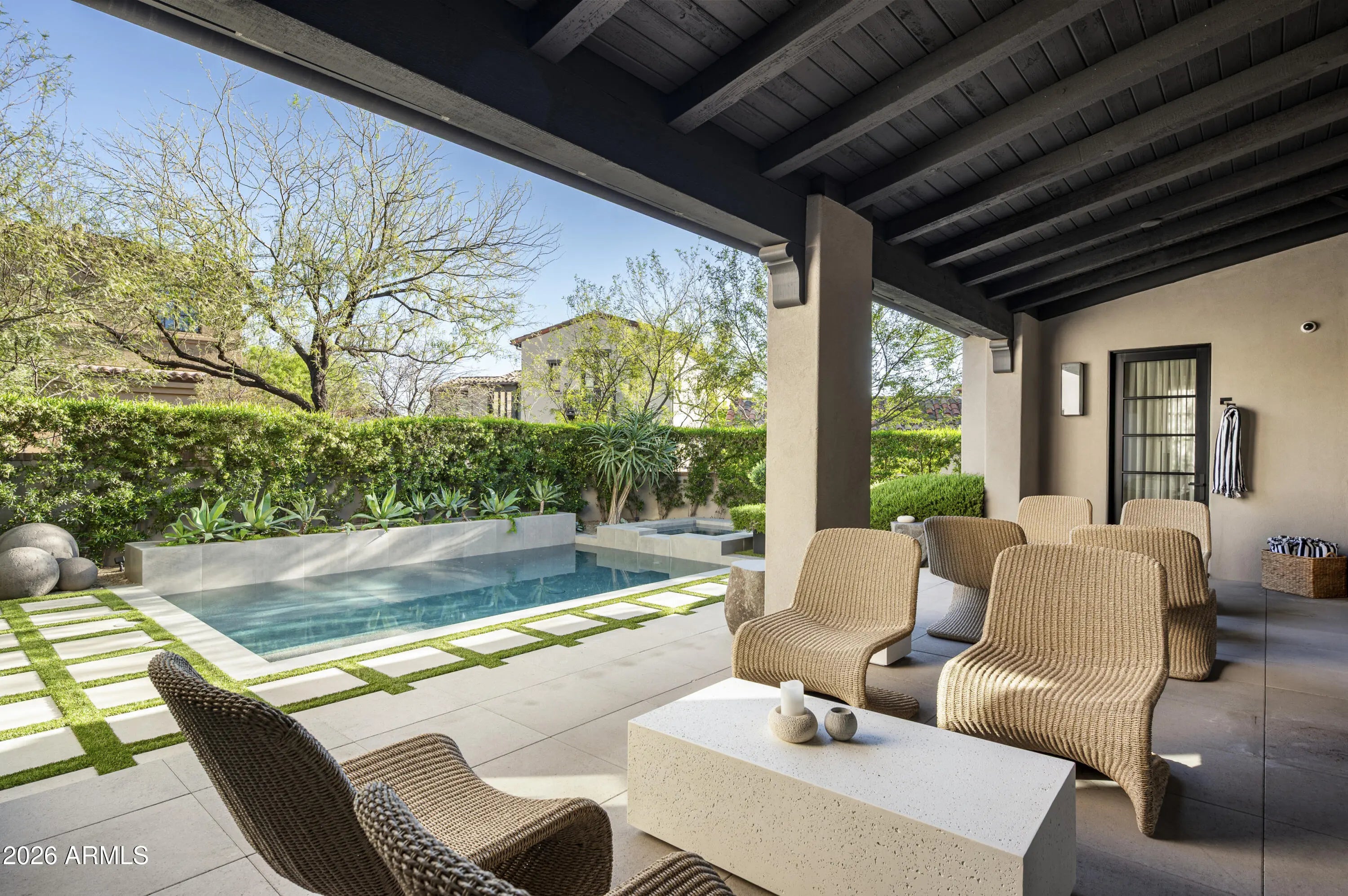 A completely updated modern stunner, this re-imagined 4-bedroom, 4.5-bath residence in the coveted Parks neighborhood of Silverleaf offers a sophisticated blend of contemporary style and effortless livability. Spanning 4,798 square feet, this smart home showcases chic, modern finishes and thoughtfully curated spaces designed for both everyday comfort and elevated entertaining. An open-concept floor plan creates seamless flow between the indoors and out, with expansive living areas filled with natural light. The beautifully updated kitchen opens to a stylish bar and inviting sitting area, all connecting to the spacious great room--perfect for hosting gatherings or enjoying quiet evenings at home. The primary suite is a true retreat, featuring a spa-inspired bathroom with separate his and hers areas, generous split closets, and a private patio unlike any other--complete with dual outdoor showers and a striking poured concrete soaking tub for a resort-like experience. Three additional en-suite guest bedrooms provide comfort and privacy, including a unique interior guest casita ideal for visitors or multi-generational living. Surrounded by mature landscaping, the outdoor spaces feel intimate and secluded, offering a peaceful setting for relaxation or entertaining. Ideally located near multiple parks within the prestigious Silverleaf community in North Scottsdale, this home combines design excellence with an exceptional lifestyle. A rare opportunity to own a truly distinctive home--this is one you must experience in person.
