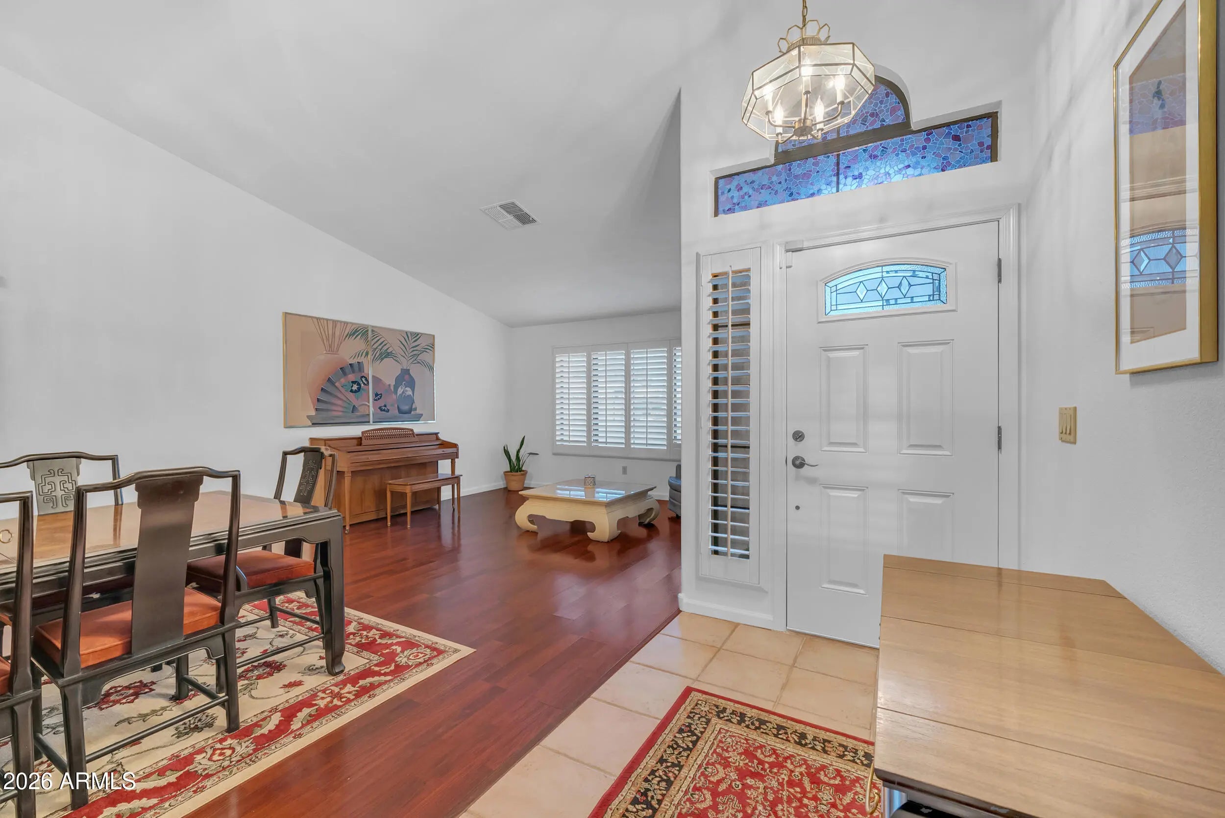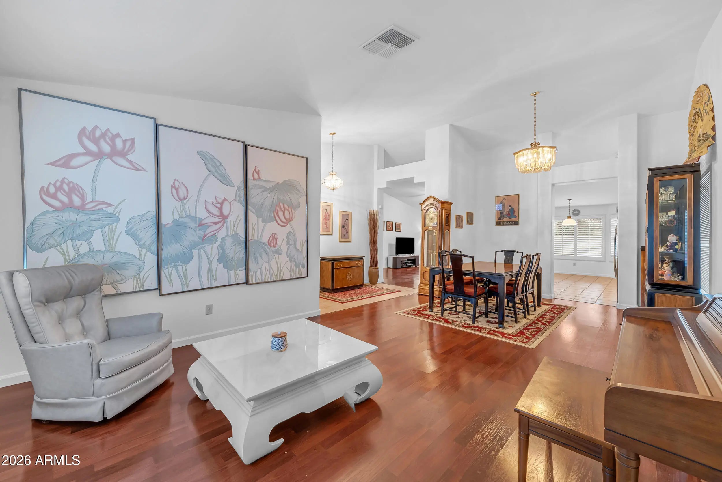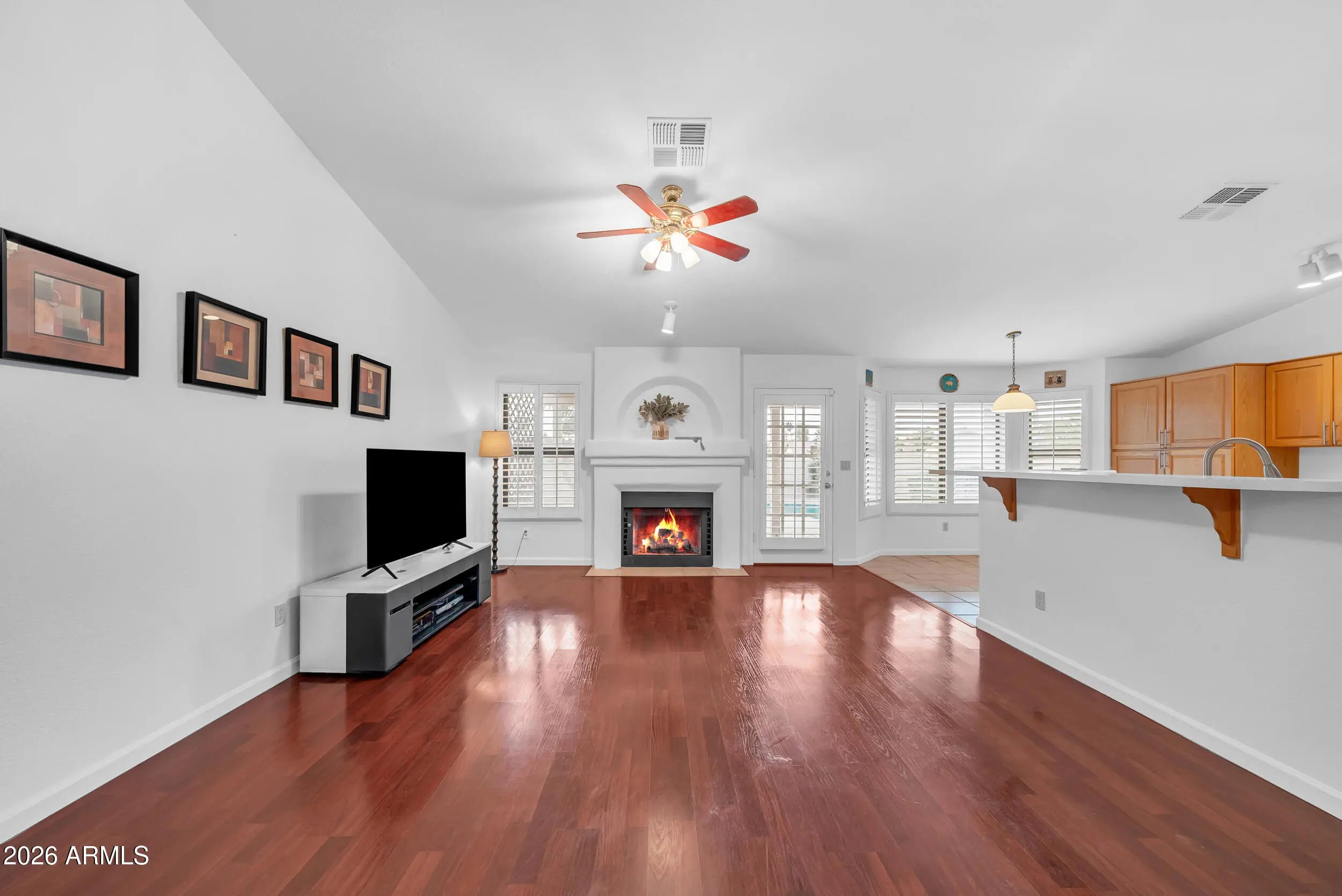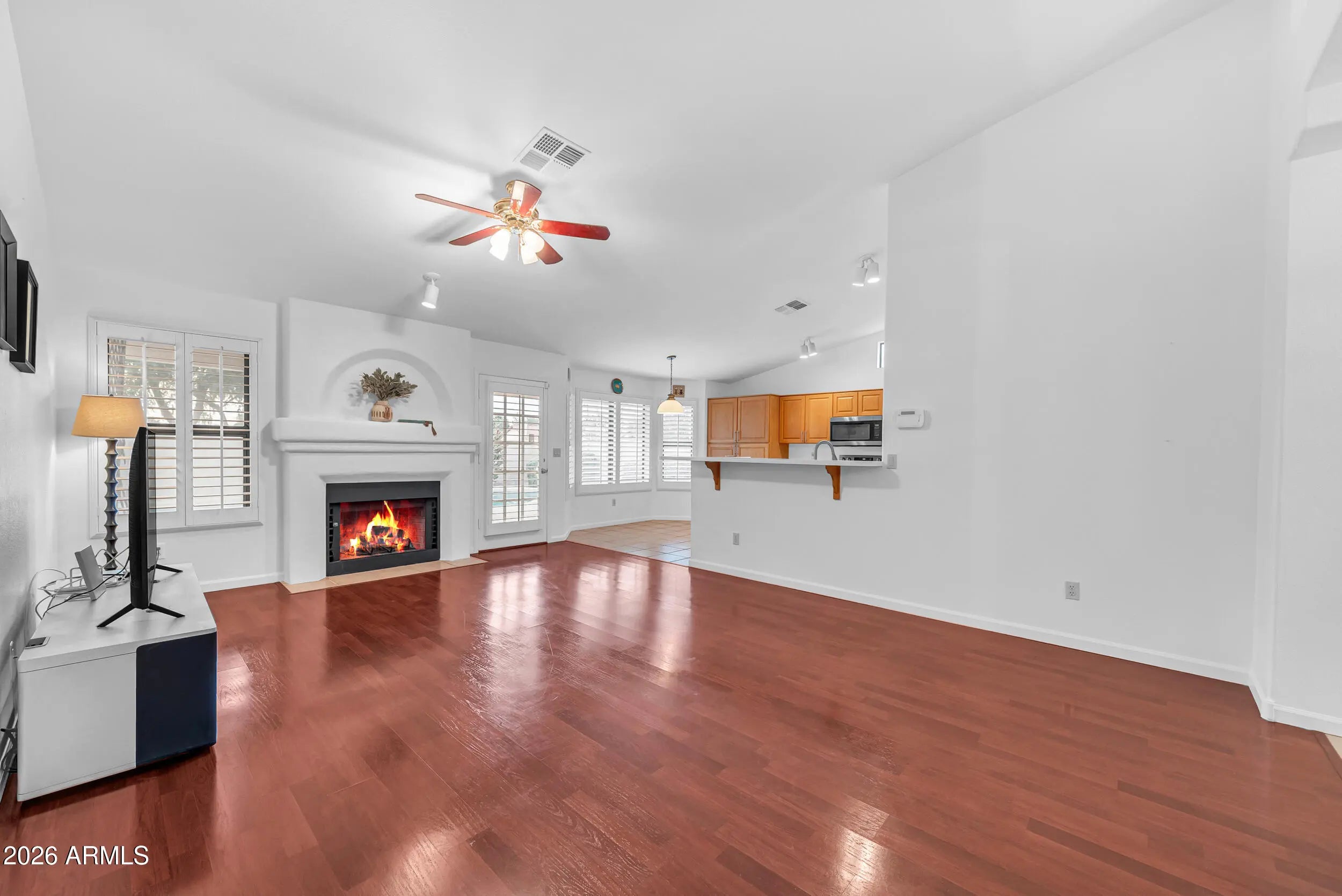 Welcome to Parkside Meadows in Chandler, where this charming 3 bedroom, 2 bath home offers a warm and inviting space with a smart and easy floor plan. From the moment you walk in, you will notice the fresh paint, clean lines, and beautiful mix of wood flooring and tile that flow all through the home, along with plantation shutters that add style and soft light in every room. There is a formal dining room for special meals, a cozy family room for relaxing nights, and a separate living room that gives you space to spread out and enjoy time with family and friends. The open kitchen sits at the center of the home and features an eat-in area that is perfect for morning coffee or easy meals, making it a great place to gather each day. A new roof installed in 2026 gives added peace of mind and Step outside to a large backyard built for both fun and quiet moments, complete with easy-care synthetic grass, a sparkling pool, and an extended patio that is ready for outdoor dining or weekend get-togethers. With no one behind you, you can enjoy open views and take in the beauty of Arizona sunsets right from your own yard. The location makes life even better, with quick access to the Loop 101 and Loop 202, and just minutes away from shopping, dining, and entertainment at Chandler Fashion Center, giving you both ease at home and convenience all around.