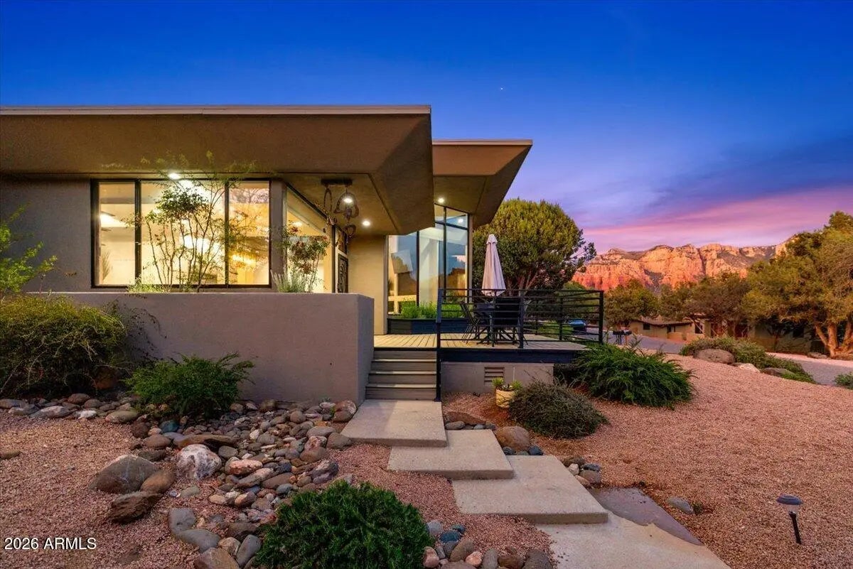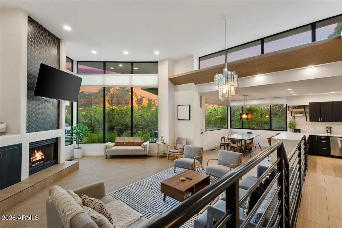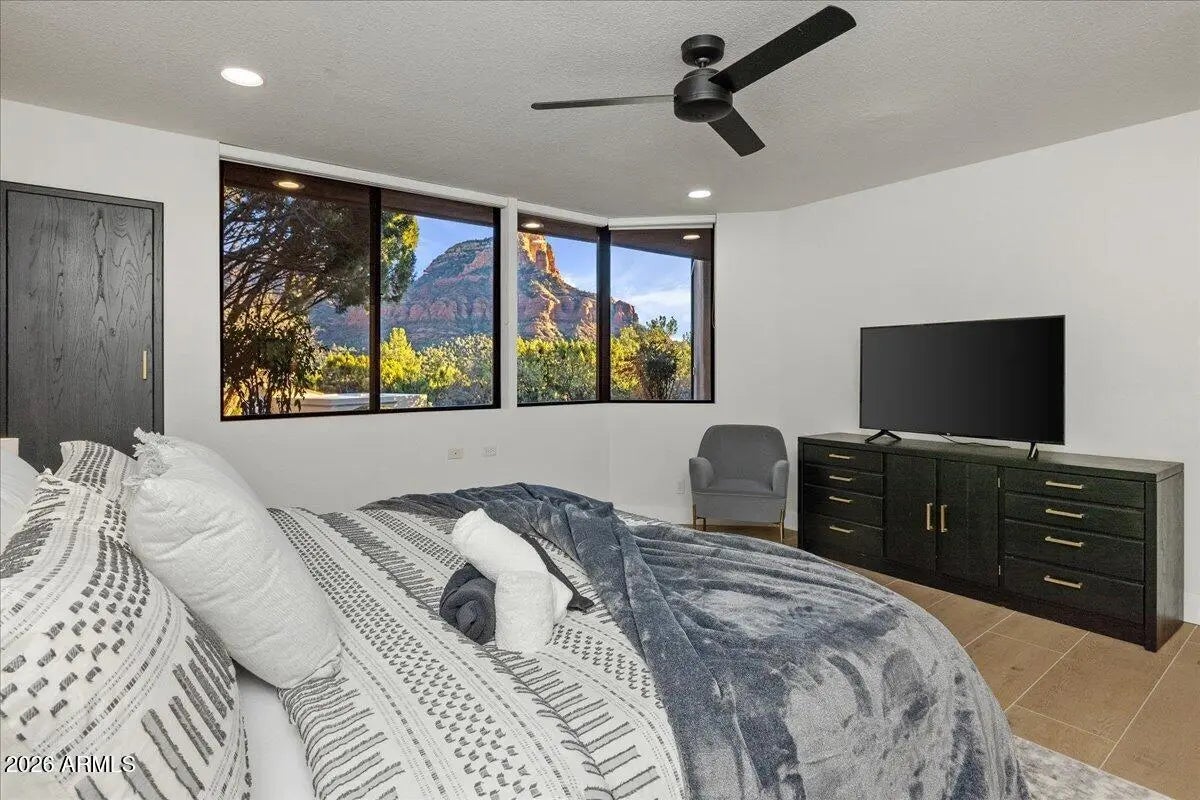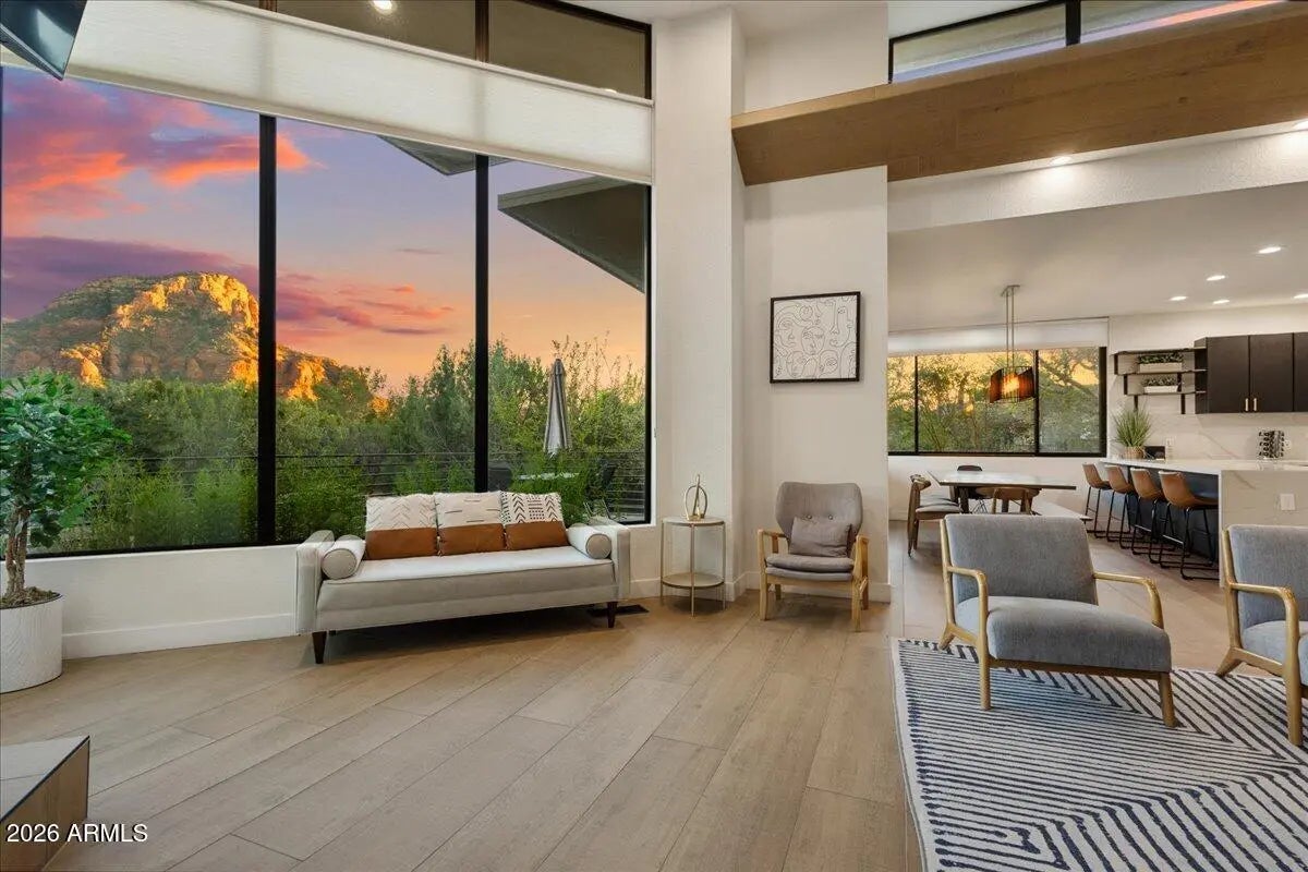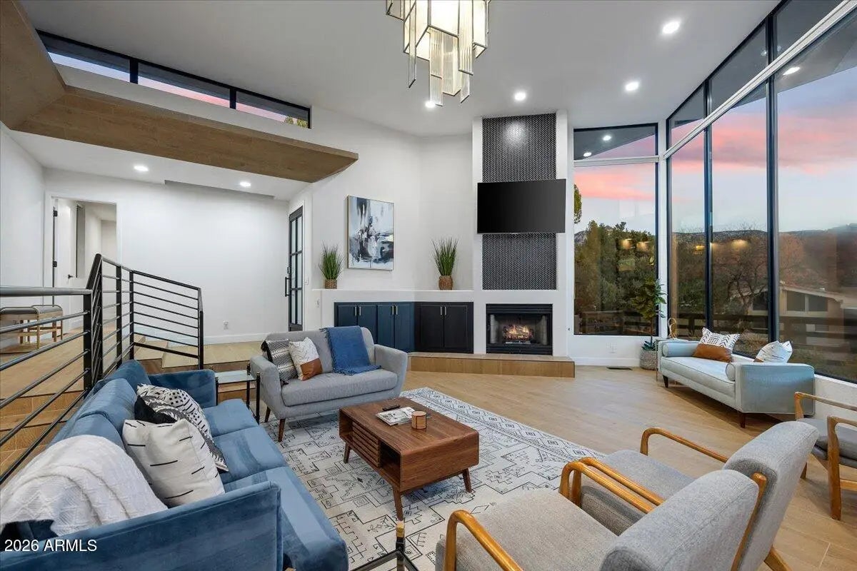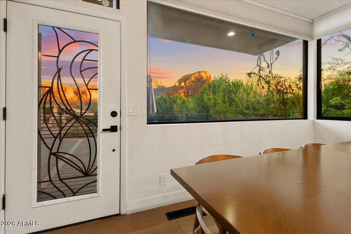 Looking for a gorgeous, breathtaking showcase with 143 five-star reviews and management boasting 1,180 glowing endorsements? You'd better hold your horses! Experience the architectural brilliance of this luxurious Airbnb retreat featuring dramatic high ceilings, clerestory windows, and expansive glass walls, bathing the home in light and revealing stunning Red Rock views, including the iconic Elephant Rock. Fully remodeled, this property accommodates up to 14 guests, offering a serene waterfall entry that sets a tranquil tone. With a modern split-level design and a skylit galleria, this home is perfect for entertaining. Enjoy gatherings on the deck, unwind in the hot tub, or explore the potential for a pool addition. With tasteful furnishings and ample parking, this oasis seamlessly blends beauty and comfort for an unforgettable escape. Being sold completely furnished turn key, all improvements permitted. Property in close proximity to Cathedral Rock Trailhead shuttle. Convenient Walking/biking path to Tlaquepaque Arts and Shopping Village.