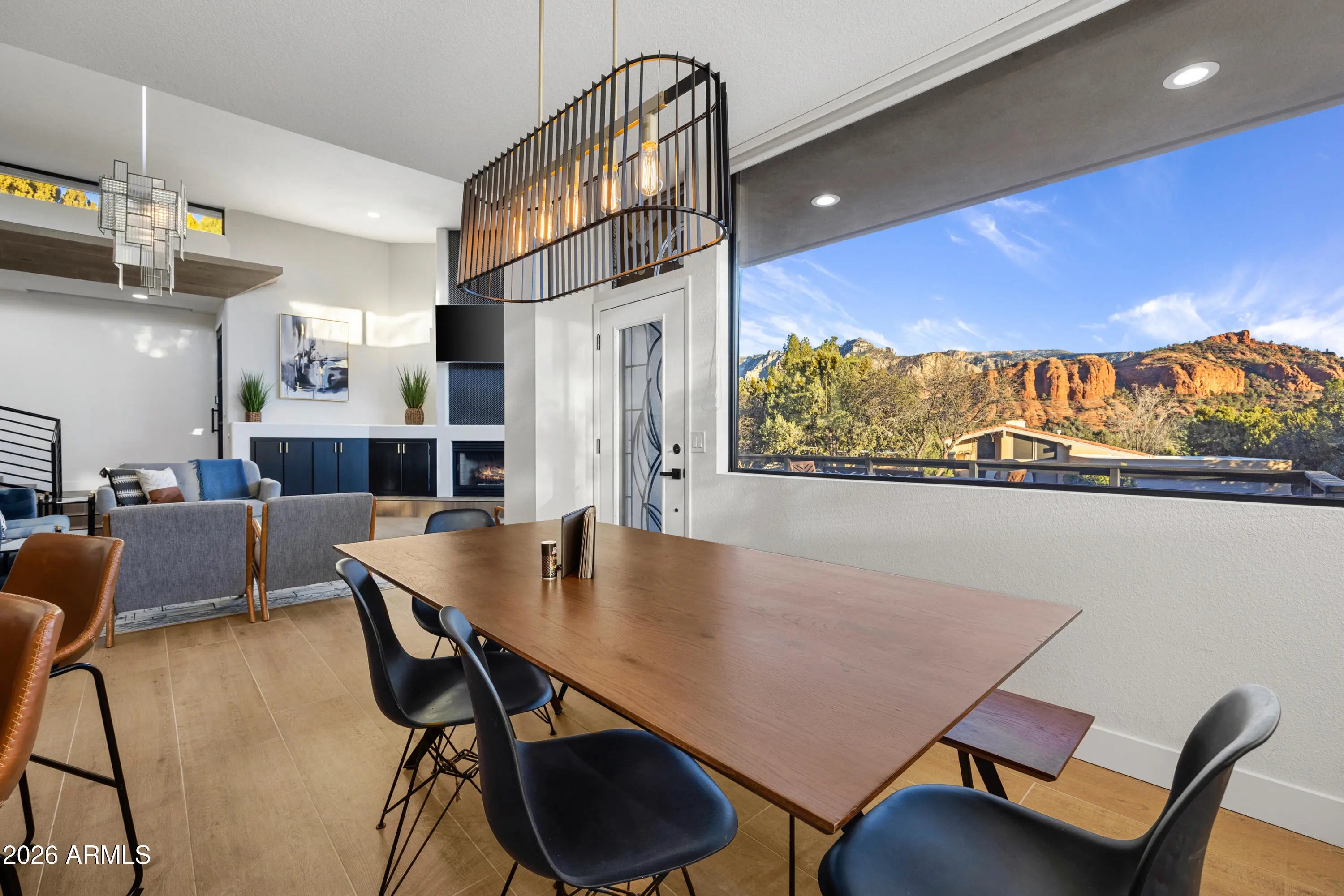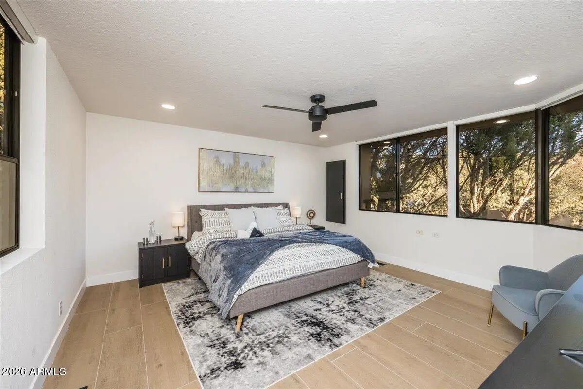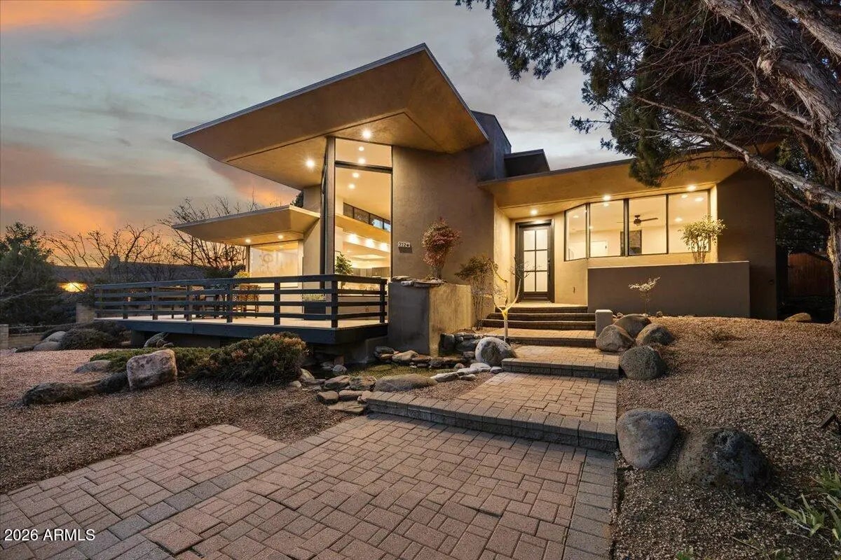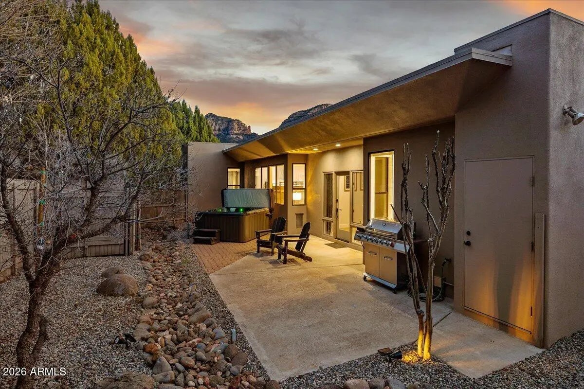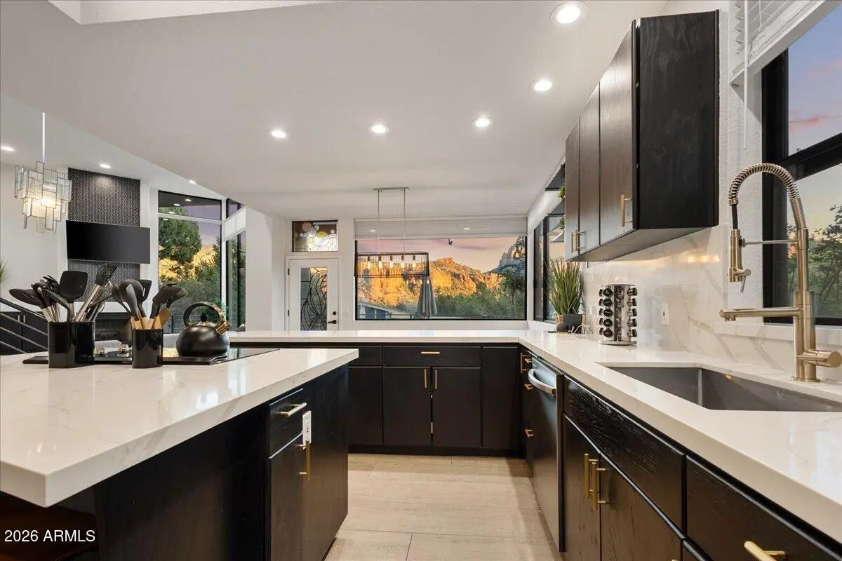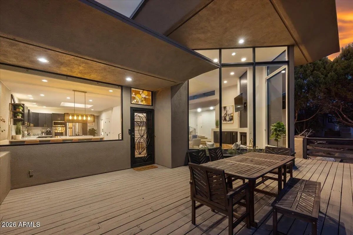 Looking for a gorgeous, breathtaking showcase with 143 five-star reviews and management boasting 1,180 glowing endorsements? You'd better hold your horses! Experience the architectural brilliance of this luxurious Airbnb retreat featuring dramatic high ceilings, clerestory windows, and expansive glass walls, bathing the home in light and revealing stunning Red Rock views, including the iconic Elephant Rock. Fully remodeled, this property accommodates up to 14 guests, offering a serene waterfall entry that sets a tranquil tone. With a modern split-level design and a skylit galleria, this home is perfect for entertaining. Enjoy gatherings on the deck, unwind in the hot tub, or explore the potential for a pool addition. With tasteful furnishings and ample parking, this oasis seamlessly blends beauty and comfort for an unforgettable escape. Being sold completely furnished turn key, all improvements permitted. Property in close proximity to Cathedral Rock Trailhead shuttle. Convenient Walking/biking path to Tlaquepaque Arts and Shopping Village.