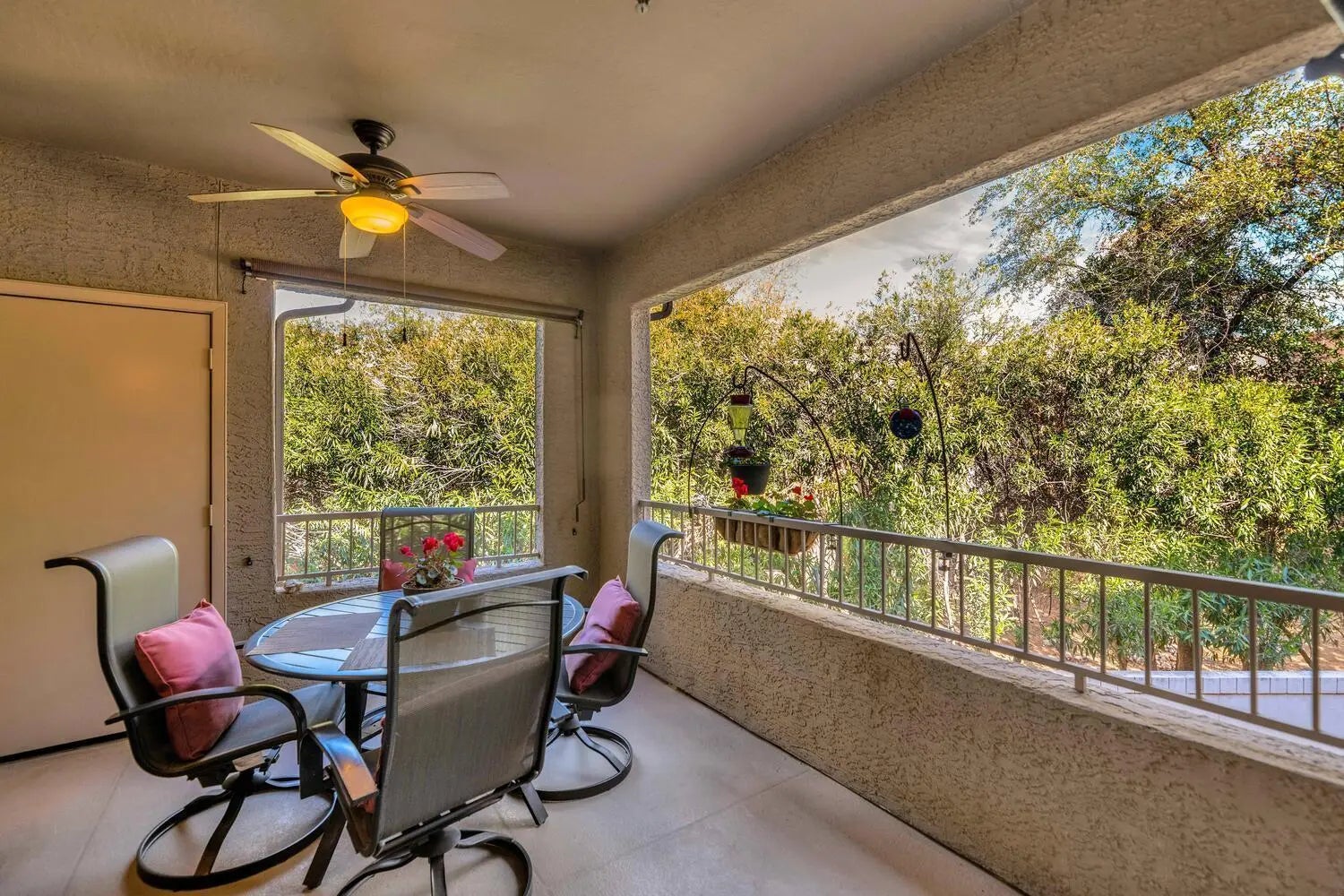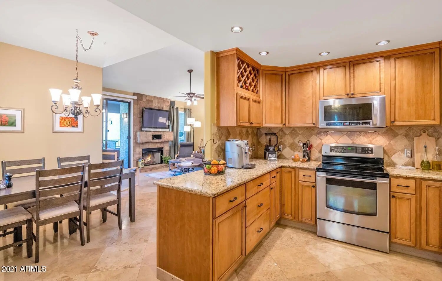 Attractive and convenient Scottsdale Condo/Townhome with a spacious well-lit office, 2 bedrooms and 2 baths. Move-in date flexible. Beautifully upgraded, well-maintained interior with impressive stone fireplace, well-appointed split bedroom layout and a fluid, open floor plan. Offers both privacy and room for gathering of friends and family. Gourmet kitchen highlighted by granite counters, stainless steel appliances, abundant cabinetry for added storage and a custom backsplash. Master includes en suite with glass framed shower. Enjoy morning coffee and unwind with a beverage on the cozy tree-lined private patio at day's end. Storage area for bikes and seldom-used items. Walking pathways to AJ's, Flo's, Safeway, Pita Jungle and more. Gated community benefits include: nearby biking, hiking, hiking, sports fields and dog park. Access to tennis and large pool at Village - just follow the path. Walking paths to restaurants and stores is underground FLW and Thompson Peak. Very convenient.