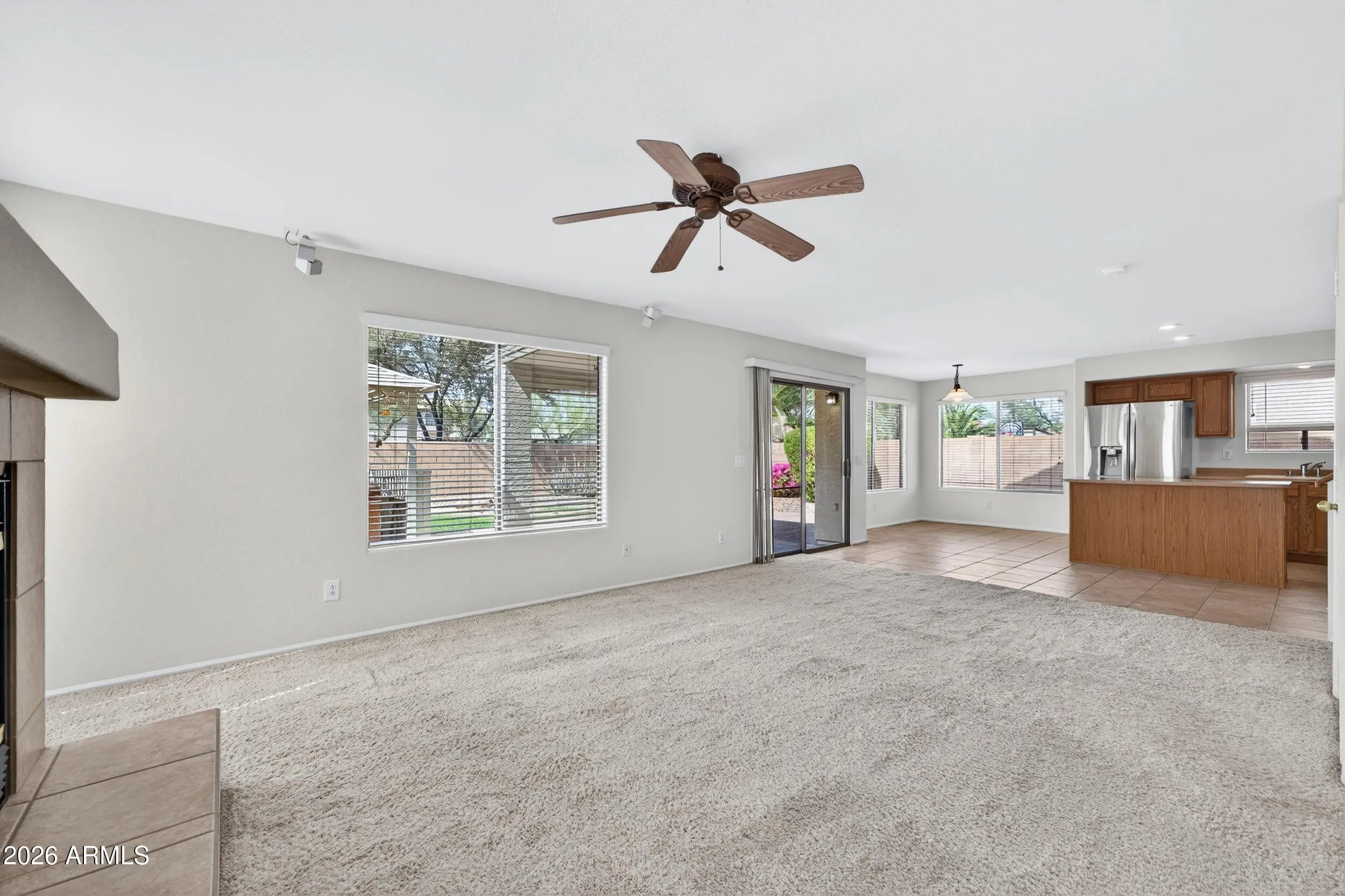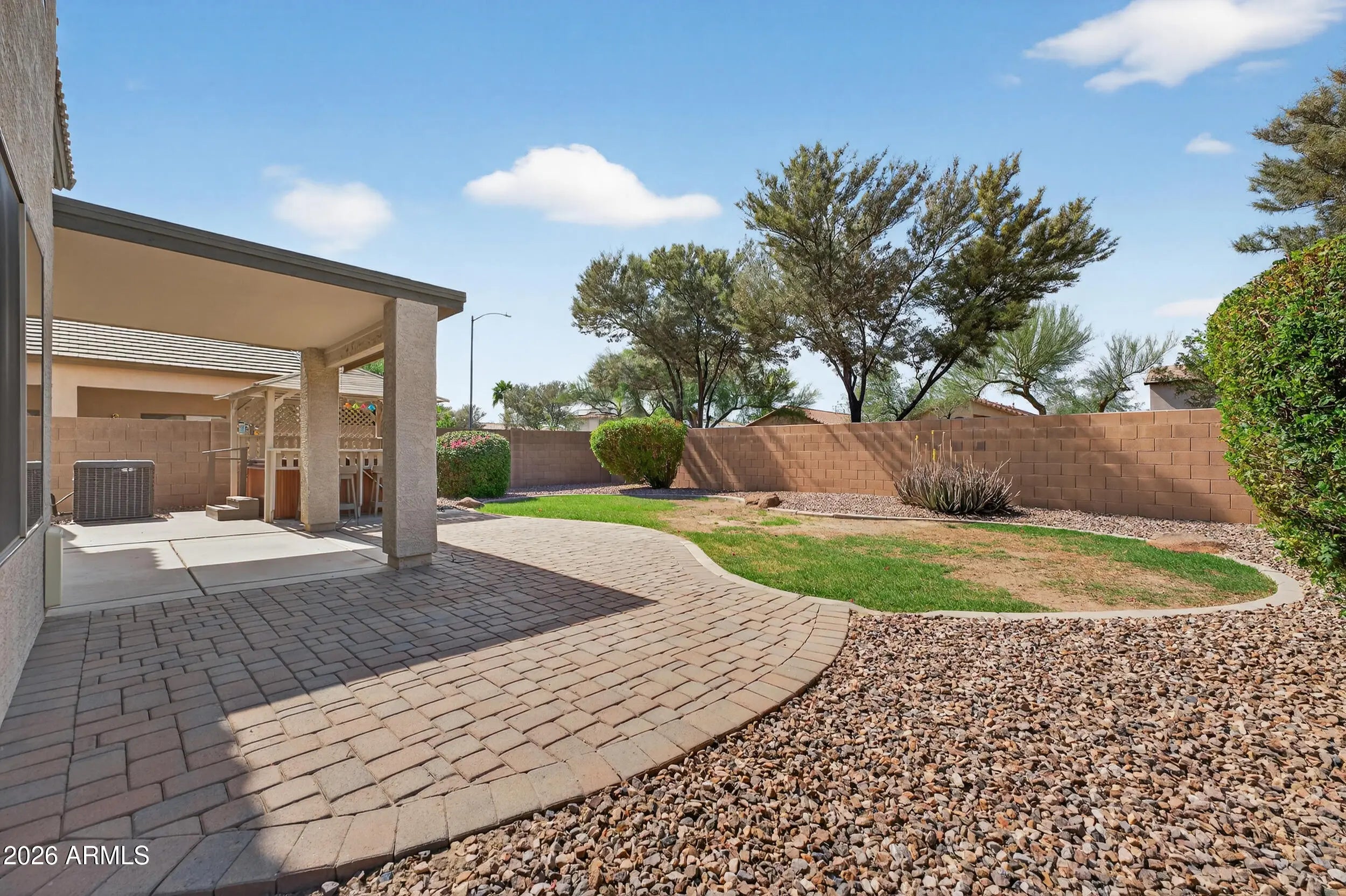 Welcome to Canyon Trails living in Goodyear where comfort, space, and Arizona lifestyle come together. This original-owner 4 bedroom, 2.5 bath home offers soaring ceilings, multiple living areas, and a layout designed for both everyday living and entertaining. The kitchen opens seamlessly to a warm, inviting family room with fireplace, while the oversized primary suite provides a private retreat. Step outside to a north/south exposure lot with no rear neighbors--enjoy evenings under the gazebo, relax in the spa, or entertain on the paver patio with gas BBQ hookup and built-in audio. RV gate adds flexibility for toys and storage. A/C replaced 2022, Hot Water Heater 2023. 1-year $480 home warranty included. Easy access to Interstate 10, Loop 303, shopping, dining, and great schools and more. Brand new kitchen, stainless steel appliances. New interior paint.