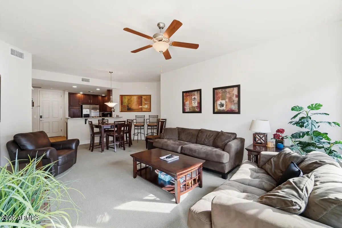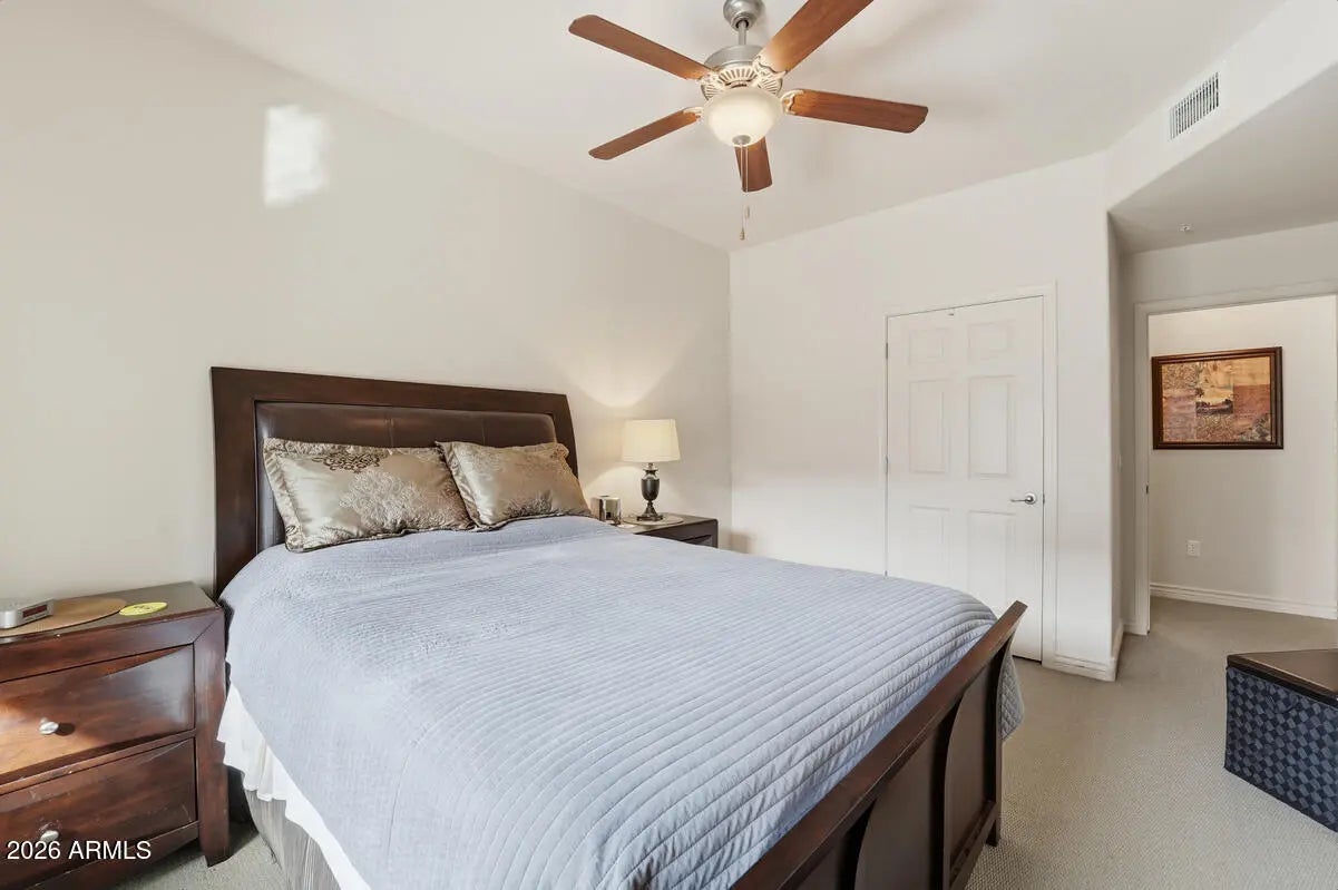Welcome to your new home. This top-floor, condo includes 2 bedrooms, 2 bathrooms, a private patio, Newer washer and the AC unit was replaced in 2023. 2 underground parking stalls with a storage cage, among other features. Situated in Toscana of Desert Ridge, a luxurious, resort-style community, it offers 3 swimming pools, 3 clubhouses, billiards, a game room, and 2 large fitness centers, all secured by a gated entry with a guard and equipped with BBQ areas throughout. The location is ideal, just 2 blocks from High Street/City North and near Desert Ridge Mall, providing excellent shopping and dining options. Furthermore, it is conveniently close to the 101 freeway, only minutes away from the Mayo Clinic, Scottsdale Airpark, and Downtown Phoenix.