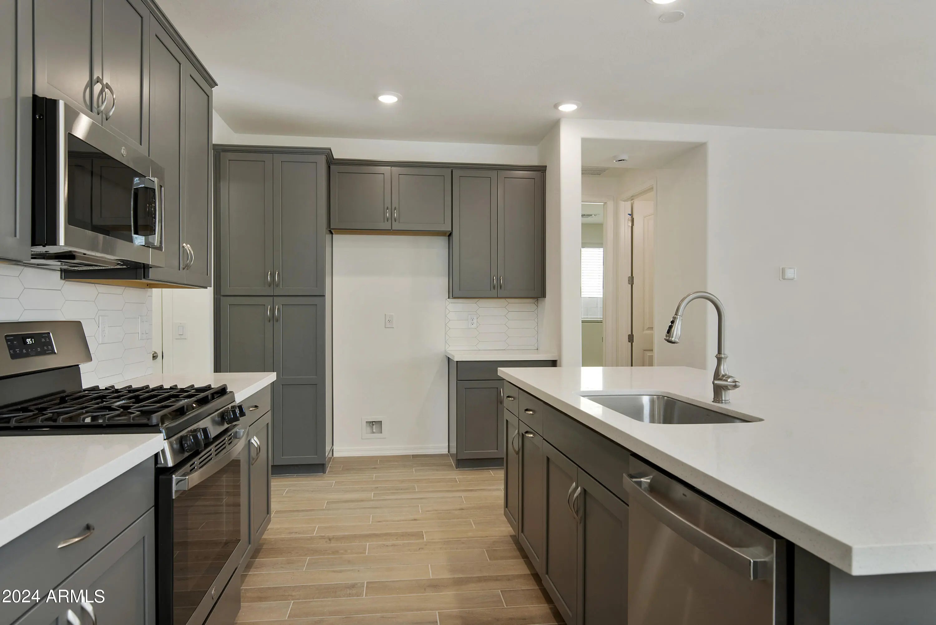 Discover this stunning new home! This 1520 sq. ft., single-story boasts 3 bedrooms, 2 bathrooms, and an open kitchen and great room, perfect for entertaining. The kitchen has a beautiful quartz countertop staggered 36'' & 42'' painted cabinets, and gourmet stainless steel appliances. Enjoy wood plank tile throughout, with plush carpeting in the bedrooms. Nestled near Carver & South Mountain, enjoy hiking, biking, trails, and soak in breathtaking views. Immerse yourself in nature's beauty right at your doorstep! Your dream home is move in ready! **PHOTOS ARE OF ANOTHER HOME OF THE SAME PLAN. SELECTION PHOTOS ARE LISTED. SELLER IS OFFERING COMPETITIVE INTEREST RATE BUY-DOWNS.