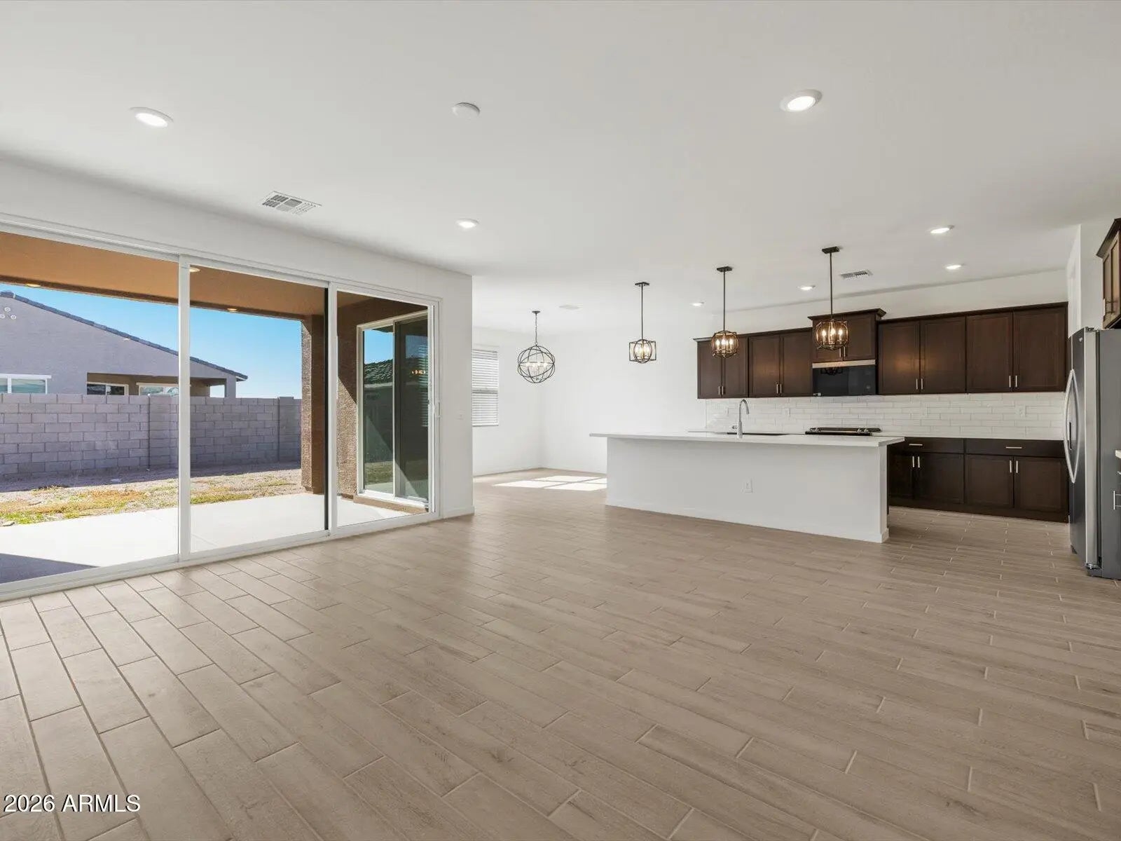 A Showstopper Single-Level Home! This stunning single-level home features 5 bedrooms, each with its own walk-in closet, providing ample storage and personal space. A 3-car garage adds both convenience and functionality, making the Bailey a perfect blend of comfort and curb appeal. Umber dark cabinets featuring a white backsplash, quartz countertops in kitchen, wood-look tile flooring and beige carpet! INCLUDED - washer, dryer, window blinds, refrigerator and MORE! Discover El Cidro, a charming, elevated community in Goodyear, designed for those seeking style and energy-efficient comfort. Residents enjoy a playground, ramadas and picnic table. Each home is built with innovative, energy-efficient features designed to help you ENJOY more SAVINGS!