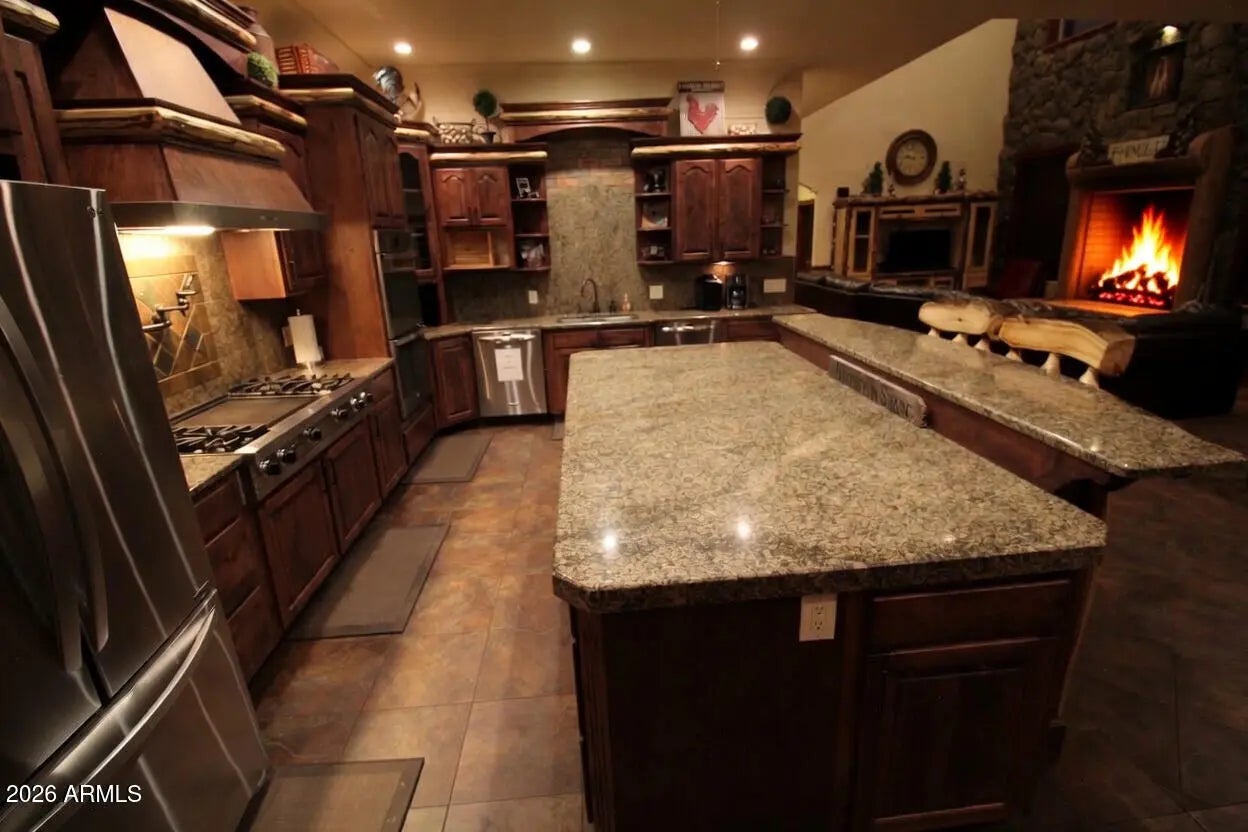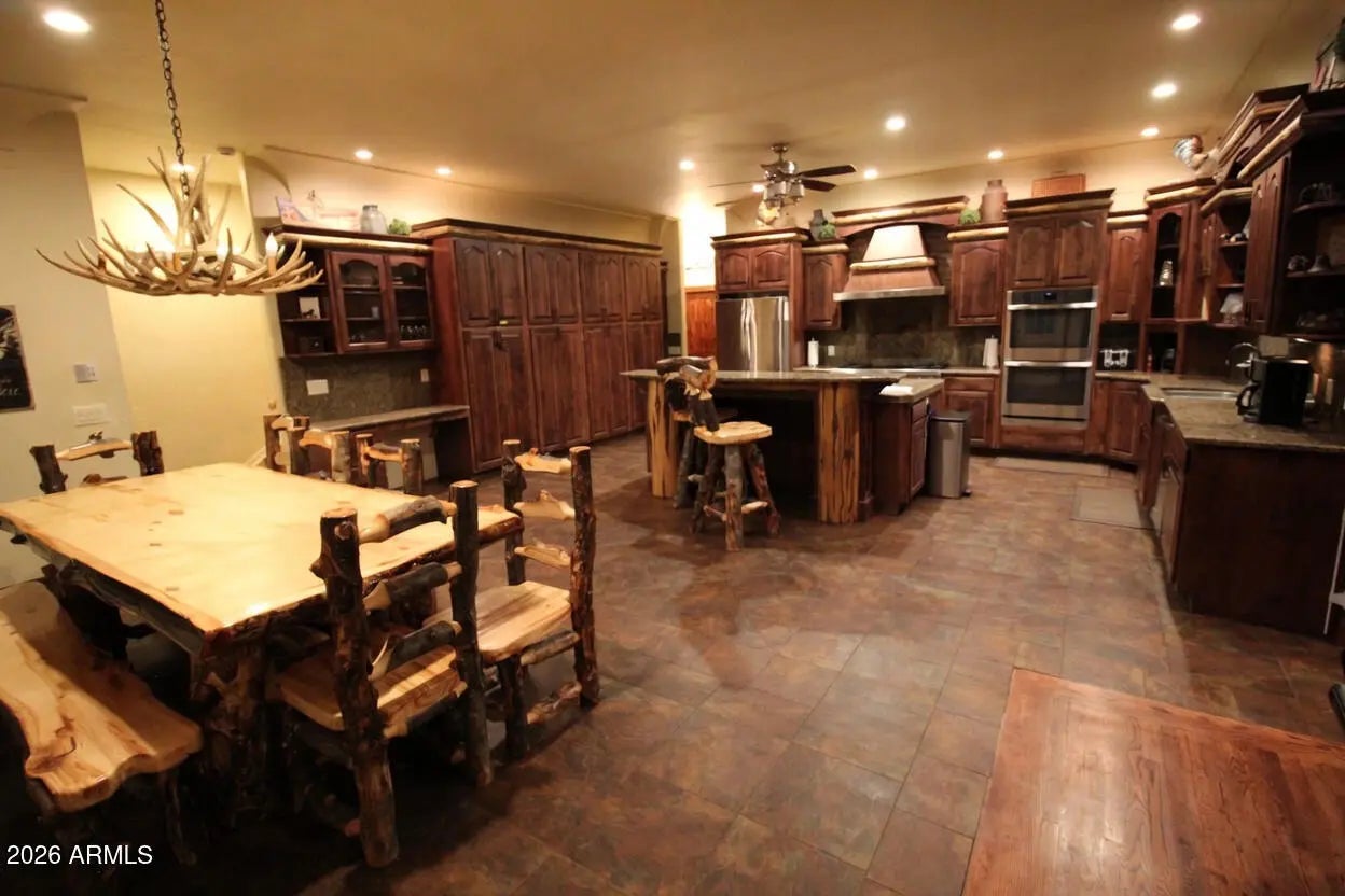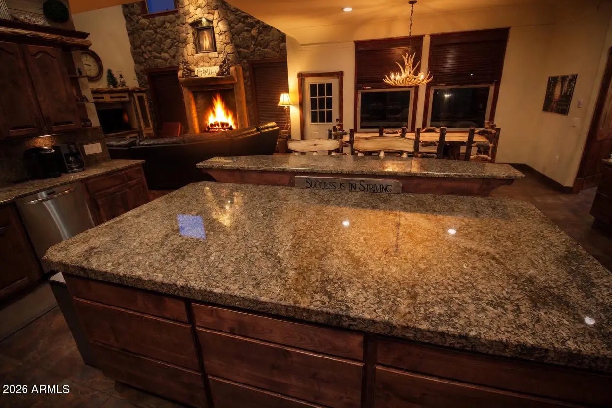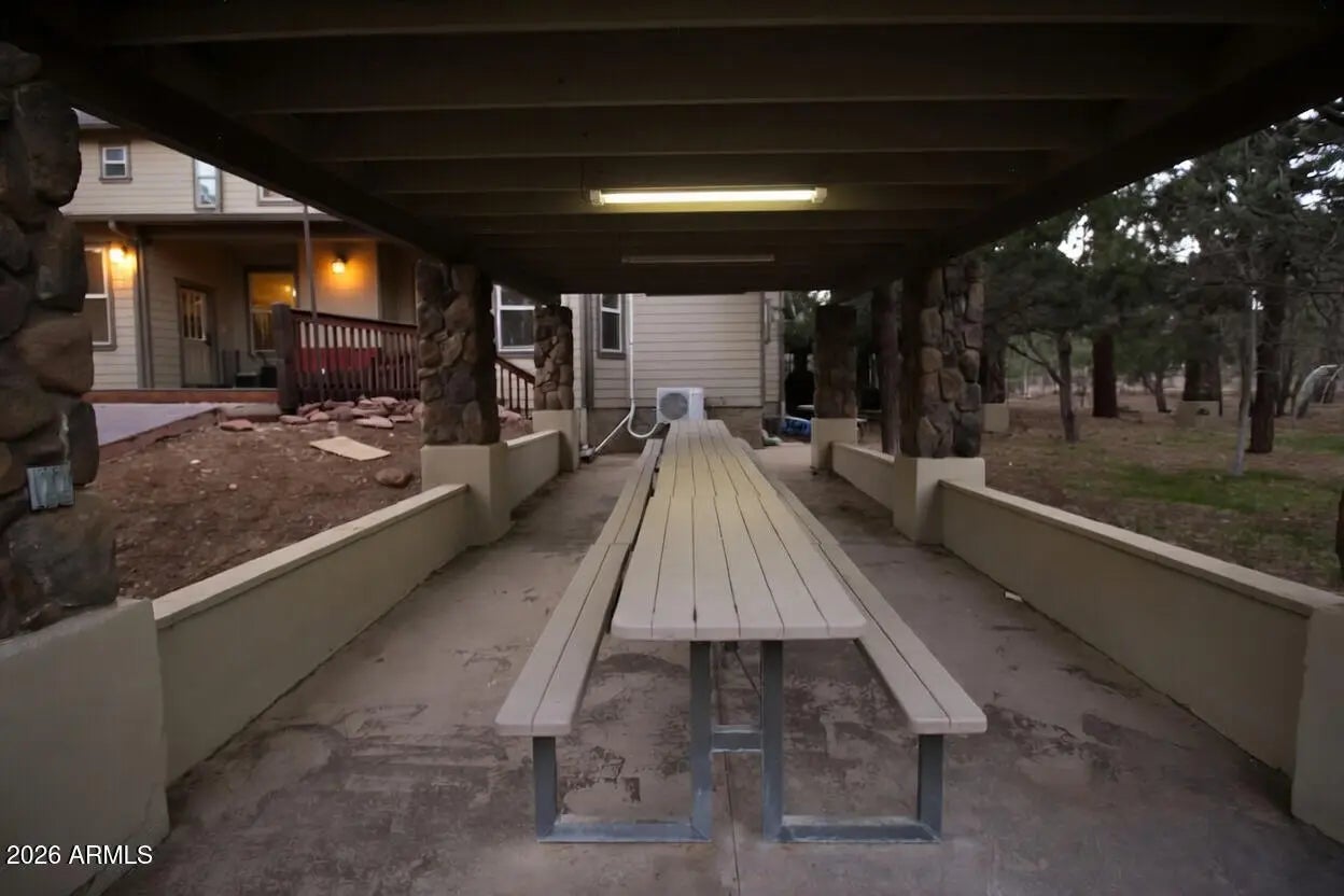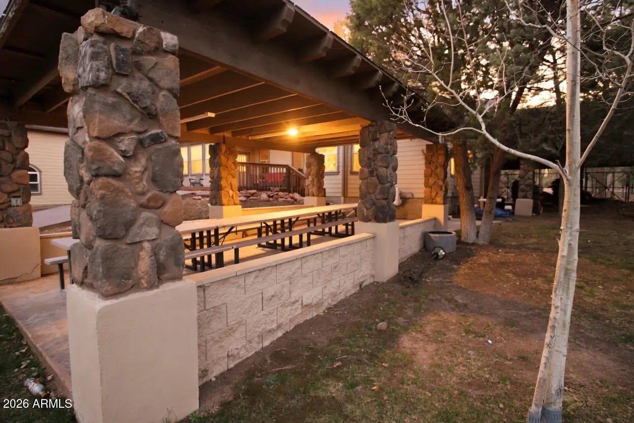 Nestled on a two-acre corner lot bordering the White Mountain Apache Reservation in Pinetop this stunning custom-built Lodge offers unmatched privacy and effortless mountain living. Located at Rim Road and Timber Pine Lane near Lakeside amenities. The 7600 square foot Lodge has a main level master suite huge upstairs game room six bedrooms and 6.5 baths. Includes attached two-bedroom two bath cottage with living area and kitchenette. Features eight car garage and landscaped fenced backyard with grass firepit and covered patio. Built in 2008 with no homeowner's association. Must see.