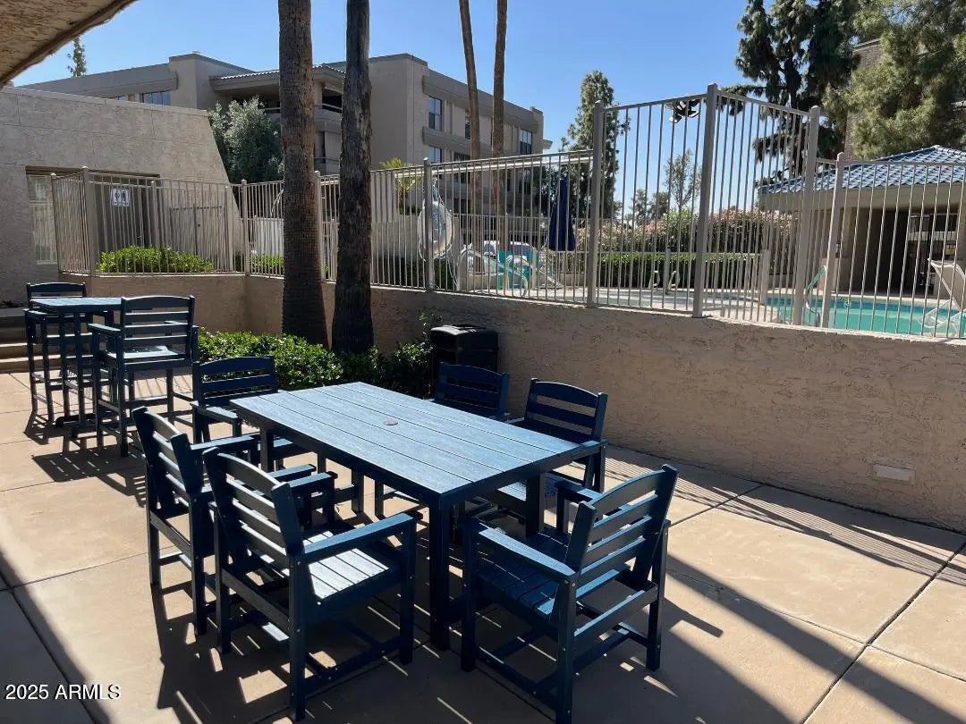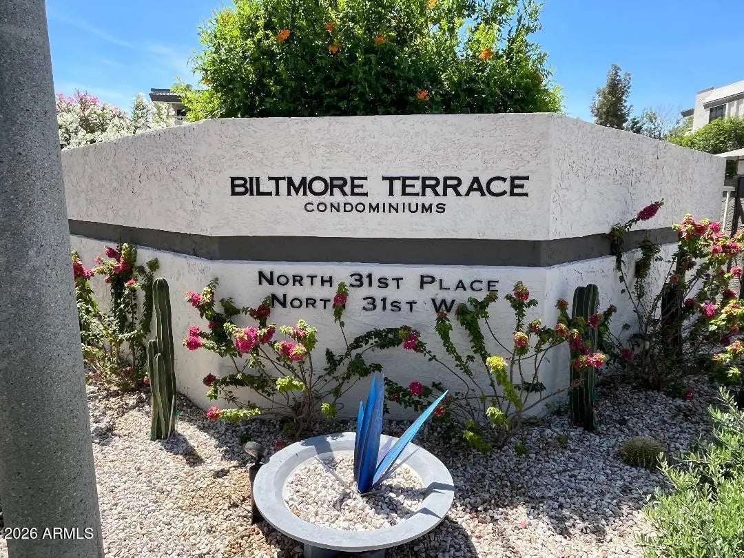 Biltmore's Hidden Gem! Biltmore Terrace First Class Condo Community. Professionally managed and conveniently located in Phoenix's Biltmore Resort Property with 2 golf courses, lakes & Biltmore Waldorf Astoria Hotel Resort. Cross-breeze corner patio unit, 2 BR 2 BA 1,170 sq.ft.OPEN FLOOR PLAN LR/DR/Kitchen. New HVAC 10/2023.Walk out the back gate to Safeway Supermarket, Matt's Big Breakfast, hair and nail salons, fine dining, and pub dining. Walk to the Biltmore Fashion Park and more. Airport only 7.5 miles. Gated Community recently upgraded. H&C water & trash & sewer included in Lower HOA dues. 2 Pools and Hot Tub Spas & Workout & Clubhouse. Rented through 12/6/26. Buy as an income property for long term or short term or live here! Rare 2 BR, 2 BA, reasonably priced. Don't miss this one