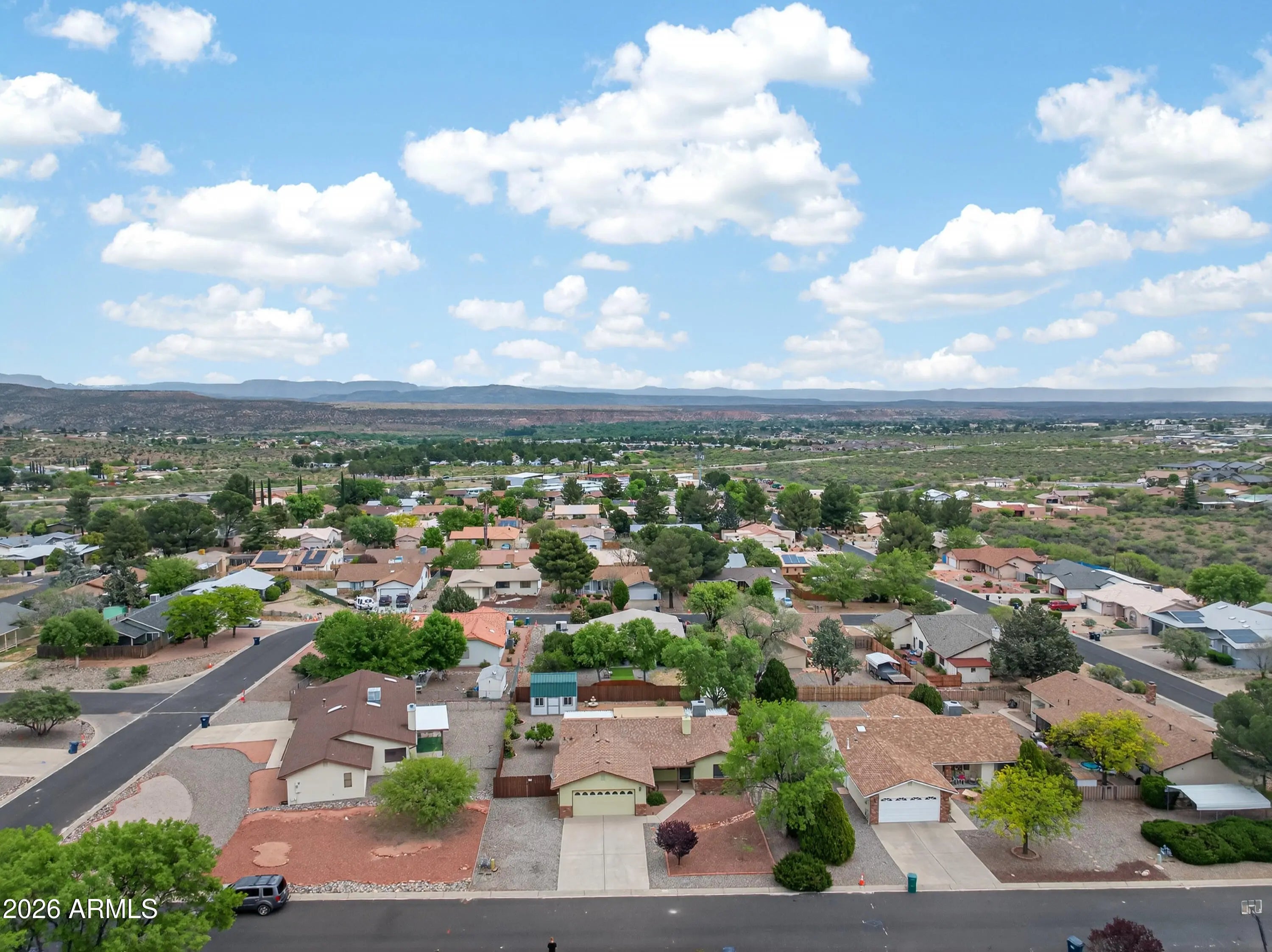 Charming 3-bed 2-bath home in the highly desirable Foothill Terrace neighborhood, perfect blend of comfort, style, and views. Step into an open living area with vaulted ceilings,shudders and a cozy fireplace, creating a bright, welcoming space for family and friends. Fresh paint and contemporary finishes throughout give the home a move-in ready feel. The kitchen features stainless steel appliances and thoughtful layout for everyday cooking and entertaining. Primary suite offers privacy with a split floor-plan.Enjoy stunning views of Mingus Mountain from the porch. Covered deck/patio out back is an ideal spot for morning coffee and sunrises. The backyard is landscaped with healthy grass and a brand-new, large shed that can be used as a workshop, studio, storage or play area. New roof 2024.
