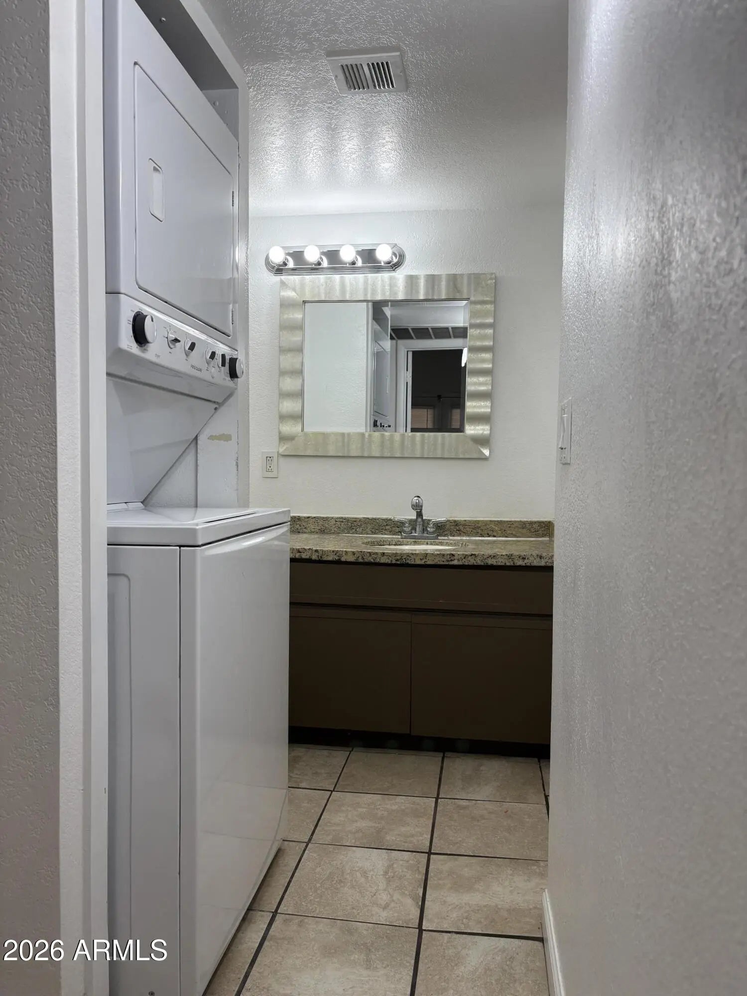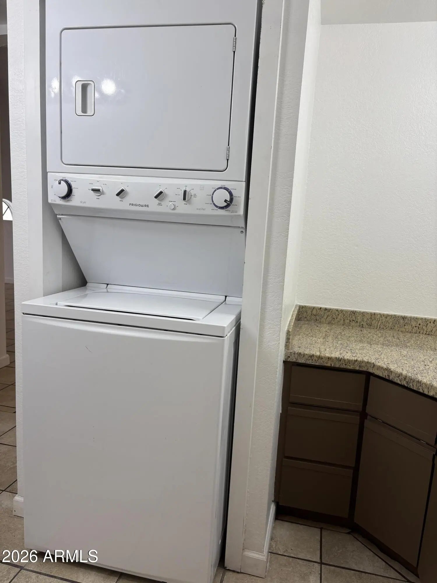 Stacked Washer/Dryer, Dryer, Washer, Refrigerator, Dishwasher, Disposal, Electric Range, Electric Cooktop