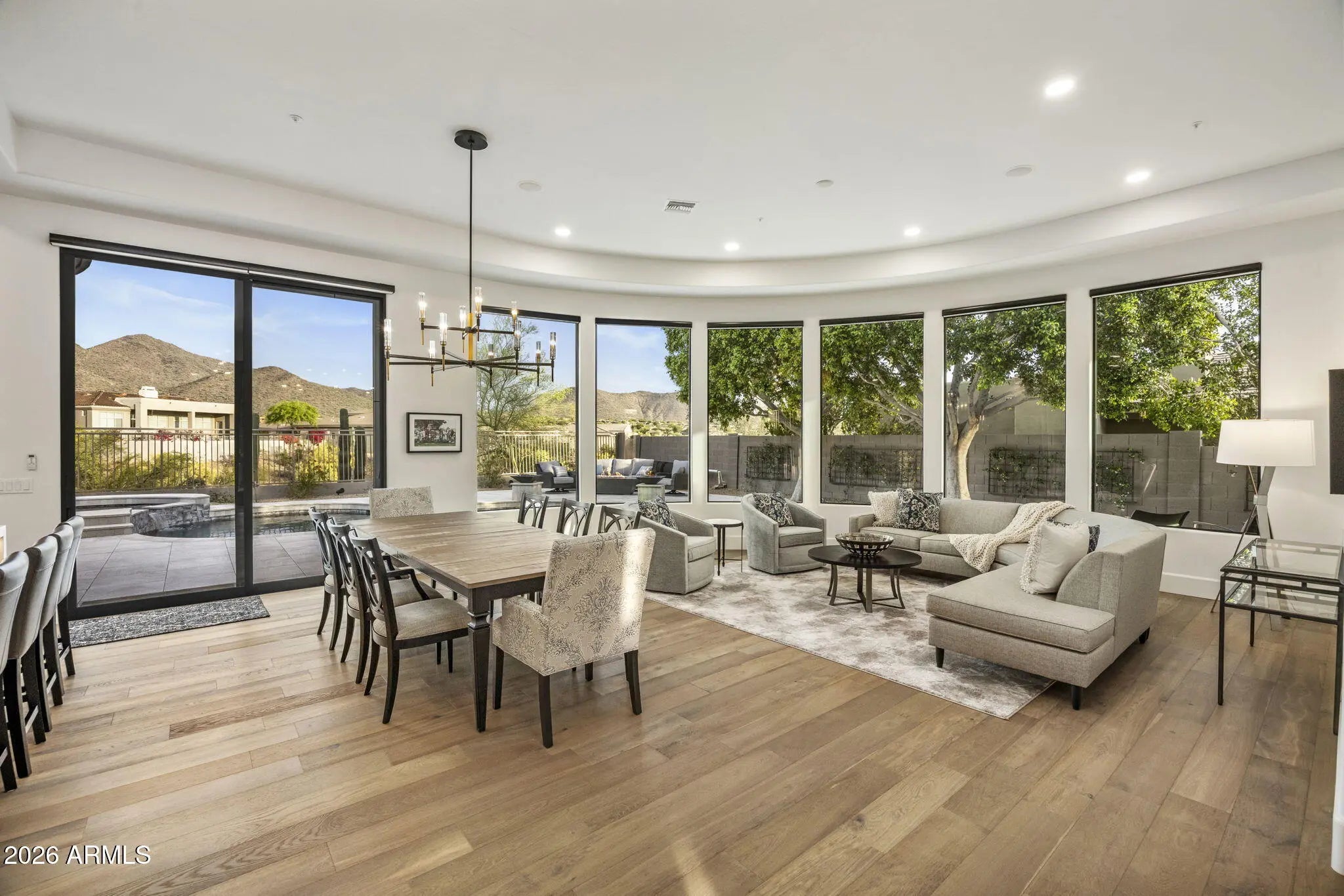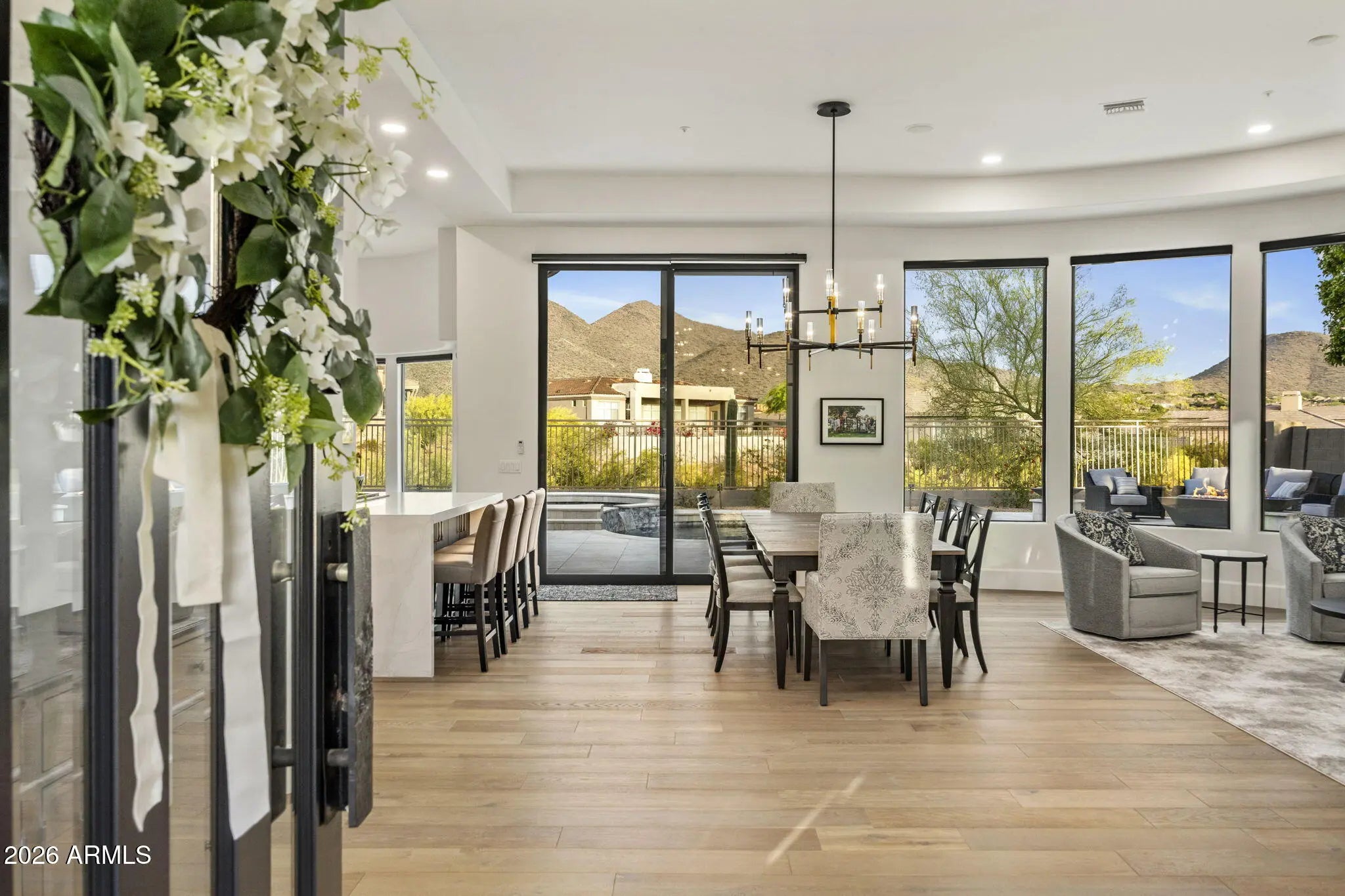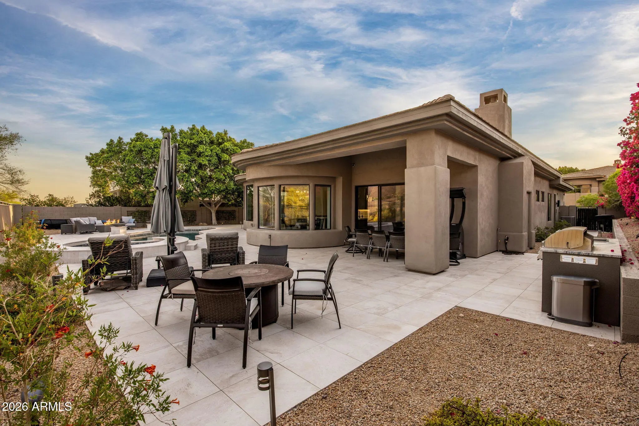 Single story, fully renovated Trovas gated home offering 3,300 SF, 4 bed, 4 baths w/clean modern finishes & a functional open layout. Wide-plank wood flooring throughout. Kitchen features Wolf & Sub-Zero appliances, dual quartz islands, & opens to the great room with direct backyard access--ideal for indoor/outdoor living.Primary suite includes backyard access, a spa-style bath with floor-to-ceiling marble, freestanding tub, dual vanities, & large walk-in closet. Backyard offers a PebbleTec pool and spa, sonos sound system, unobstructed McDowell Mountain views, covered patio, built-in grill, & multiple seating areas with fire features. Located in McDowell Mountain Ranch with access to trails, community pools, tennis, pickleball, & golf. Minutes to Loop 101, Phoenix Open & Barrett Jackson