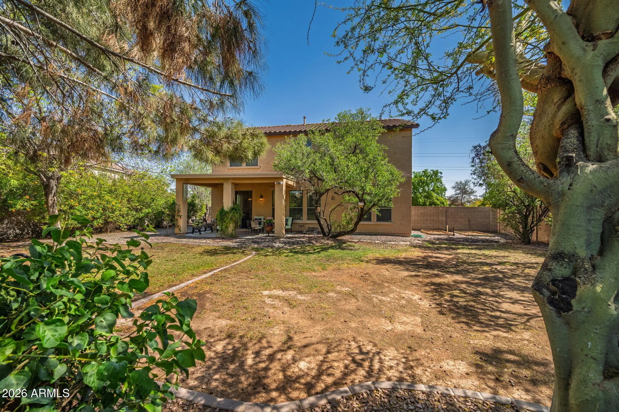 First time on the market, and with the original homeowner, this 2,700 sq. ft home is a gem, waiting for it's new family. Surrounded by mature trees, with an abundance of flowering vegetation, this 1/4 acre lot provides a private, natural setting for kids to explore & play. Minutes away and within walking distance, is an A rated elementary school and high school. Morning sunrises greet you as it illuminates the front porch, with natural light streaming throughout the remainder of the house. This home boasts 9 ft. ceilings, tech shielding, reverse osmosis, and 42'' kitchen cabinets, with a large kitchen, perfect for baking and family gatherings. Three bedrooms, 2 1/2 baths, an office/4th bedroom and loft provides ample space for your growing family. This home is located in a wonderful, quiet neighborhood that has neighbors which have resided in their homes on average 12 years. The Desert Passage community has a pool, sport fields, tot lots and miles of walking paths.