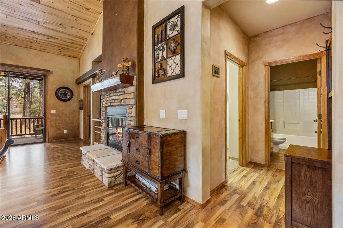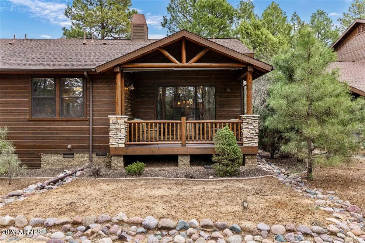 Tucked away at the end of a quiet cul-de-sac in the desirable Golf Villas at Torreon, this beautifully maintained single-level 2-bedroom, 2-bath chalet-style home offers comfort, charm, and privacy in the tall pines of Show Low. With approximately 1,212 sq ft, this home features an inviting open layout with vaulted ceilings, a cozy gas fireplace, and abundant natural light throughout. The kitchen is well-equipped with granite countertops, stainless appliances, and a functional layout that opens to the dining and living areas--perfect for entertaining or relaxing. The split-bedroom floor plan offers added privacy and functionality. Step outside to enjoy a backyard that offers excellent privacy, creating a peaceful setting to relax and take in the surrounding mountain atmosphere. Additional features include central air and natural gas heating for year-round comfort. Located in the prestigious Torreon community, owners enjoy access to outstanding amenities including a clubhouse, fitness center, pool, spa, and tennis courts. With beautifully maintained grounds and a welcoming mountain atmosphere, Torreon offers one of the most sought-after lifestyles in Show Low. Whether you're looking for a peaceful mountain getaway or a low-maintenance home base in Arizona's beautiful White Mountains, this inviting Golf Villa is ready to welcome you.