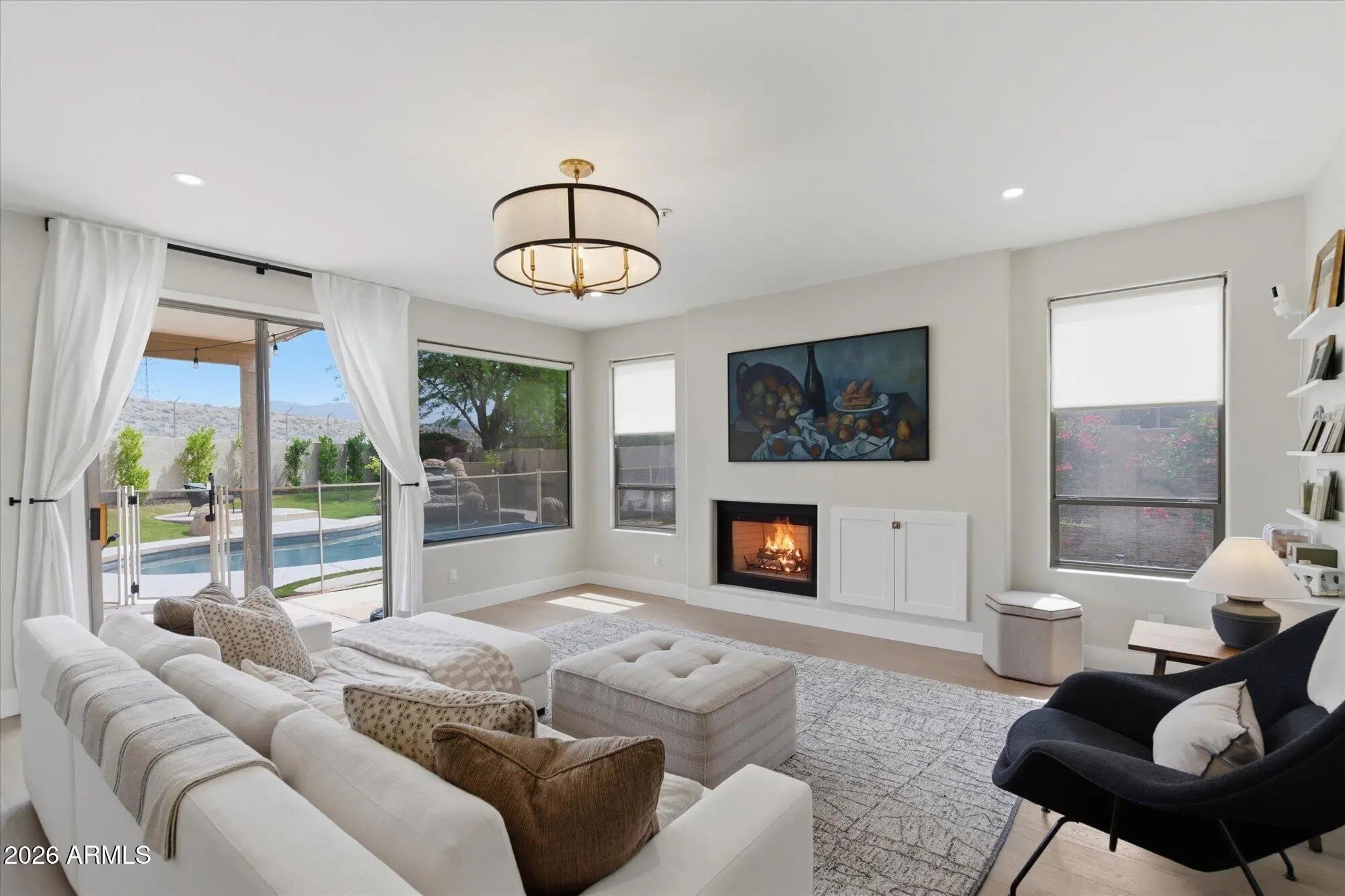 Welcome to this beautiful 5-bedroom, 3-bathroom home offering 2,780 square feet of thoughtfully designed living space. Completely renovated with a focus on quality and modern style. This home blends comfort, functionality, and elevated finishes throughout. Step inside to find stunning 7.5'' wide hardwood flooring, complemented by a soft, neutral color palette that creates a bright and inviting atmosphere. Interior spaces have been enhanced with recessed can lighting and all-new designer fixtures. This home has a fully updated kitchen, featuring new appliances, sleek finishes, and ample cabinetry--perfect for both everyday living and entertaining. Adjacent living areas are wired with a surround sound system and centered around a cozy fireplace, creating an ideal space to relax or host gues Enjoy all new window treatments throughout and upgraded motorized shades in family room and kitchen. All bathrooms have been tastefully updated with premium Delta plumbing fixtures, offering a clean, spa-like experience. Each of the five bedrooms provides generous space and flexibility for family, guests, or a home office. Outside, the home continues to impress with a large covered patio, sparkling pool and lush green landscaping, This turnkey property delivers modern upgrades, timeless design, and exceptional comfort--ready for you to move in and enjoy.