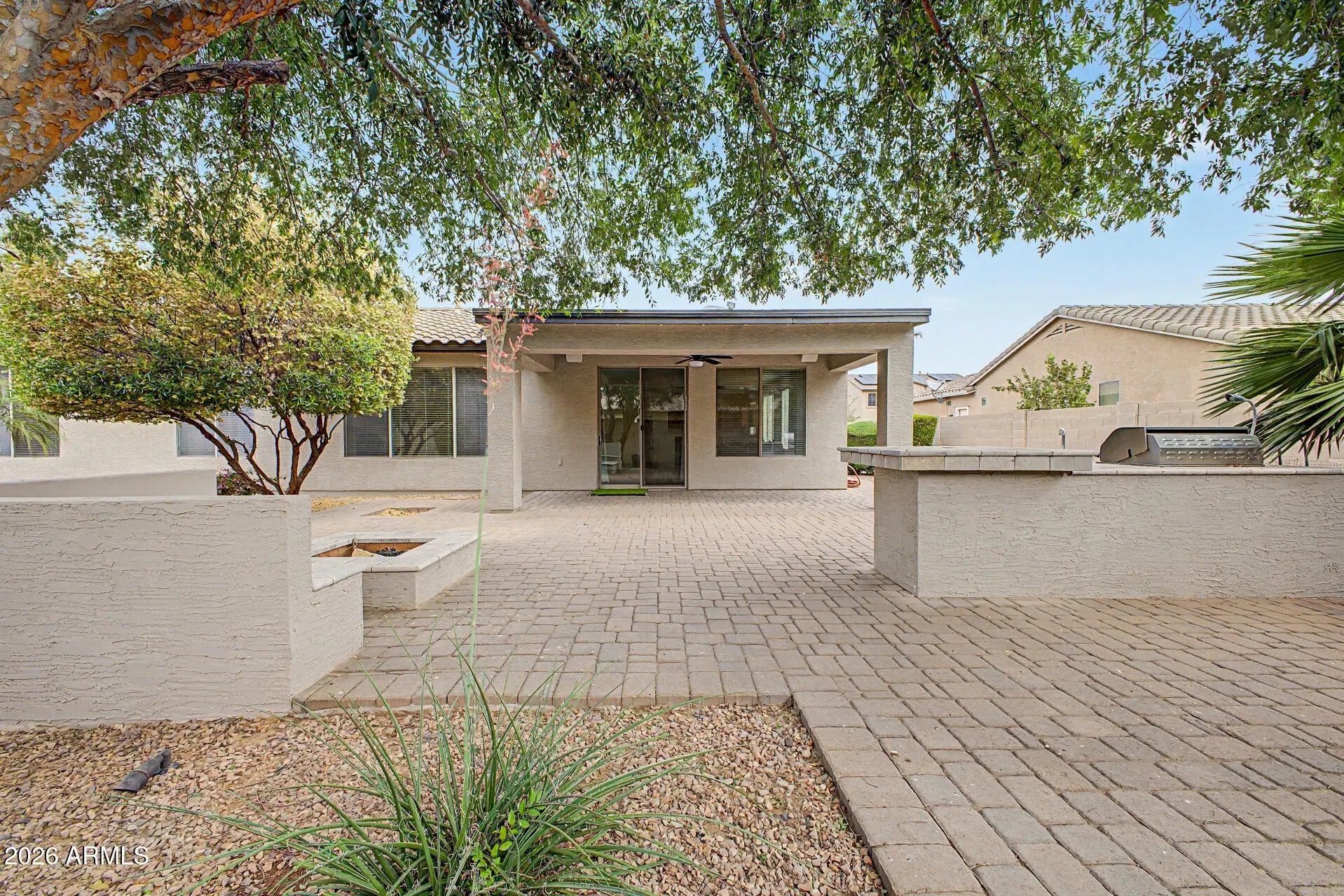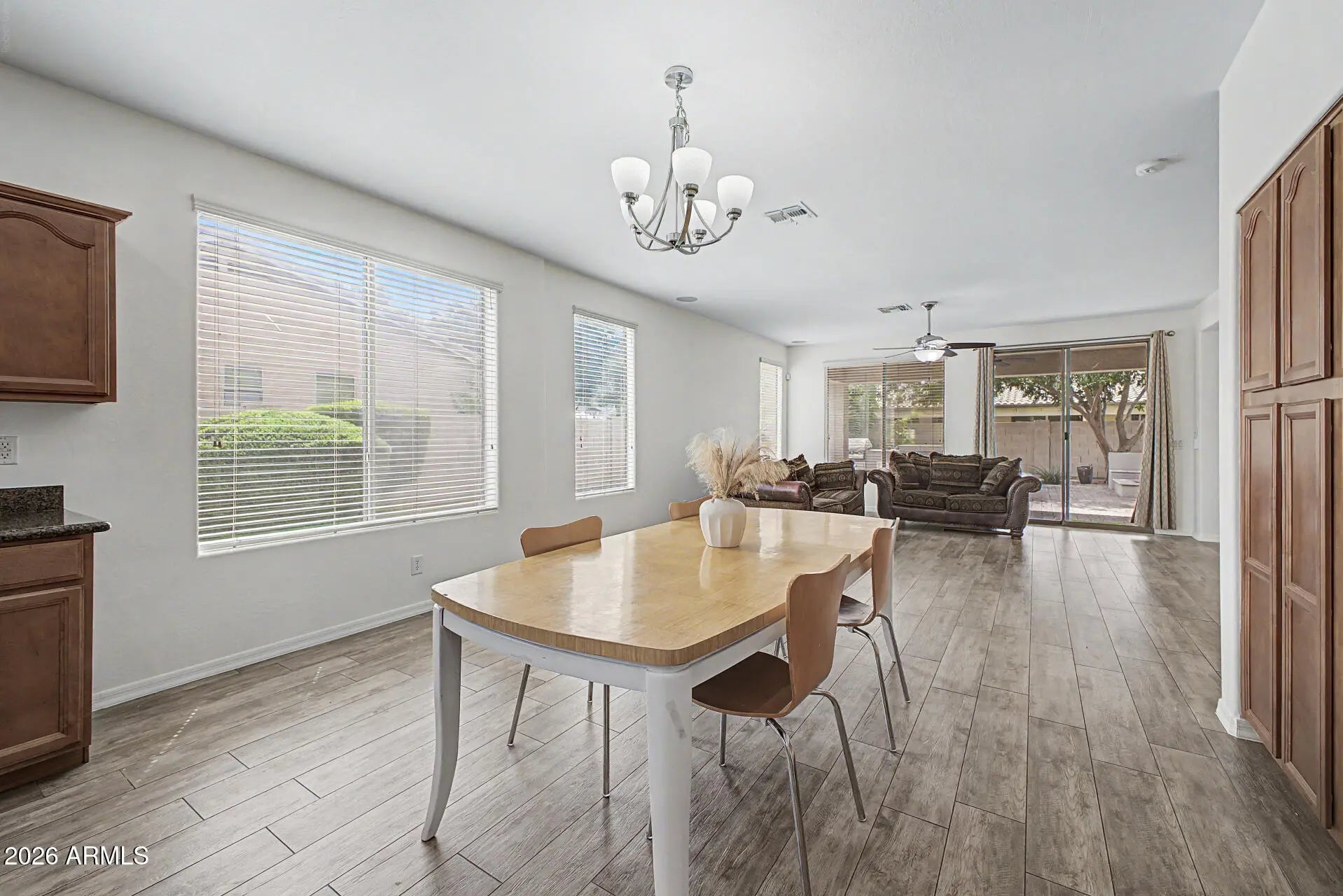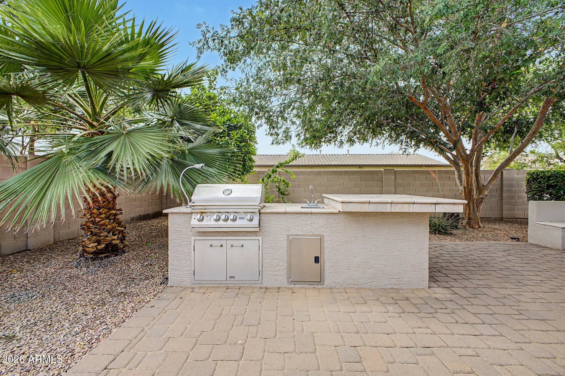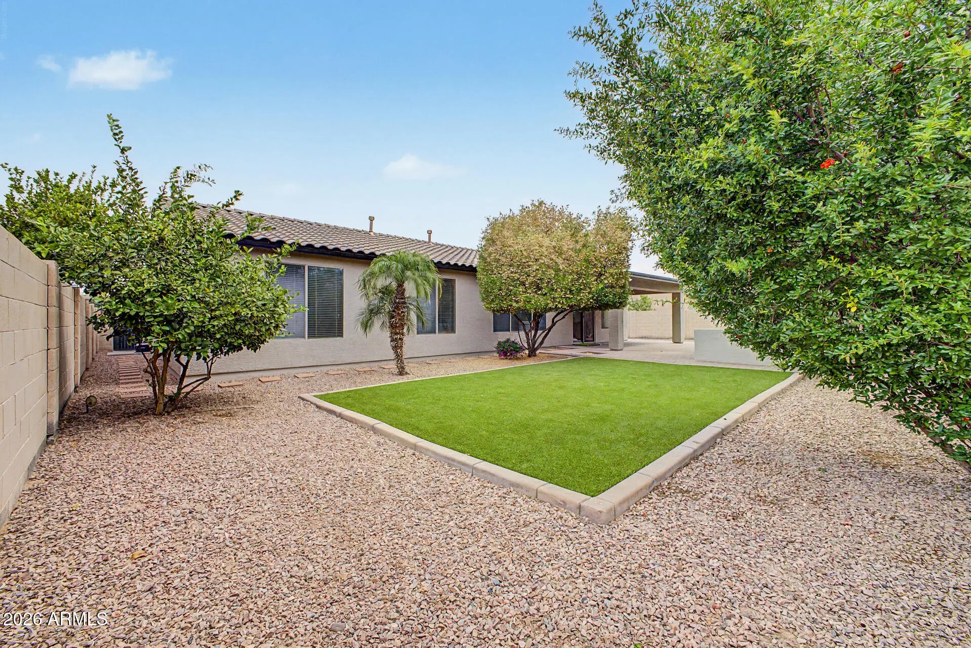 The freshly painted interior (March 2026) sets the tone for this lovely, inviting home. The open island kitchen features granite counters, stainless steel appliances including a gas range, a butler's pantry, and abundant cabinetry. The spacious primary suite offers a large walk-in closet and a beautifully appointed bath with double sinks, separate tub and shower. Wood plank tile adorns the floors in all the right places, enhancing both style and permanence. The home boasts attractive curb appeal. The indoor laundry has side yard access. Outside you'll find a very private backyard an with extended paver patio and painted fence. This home is located within walking distance to Ryan Elementary School, Arizona College Prep HS, a city park, shopping, and dining.