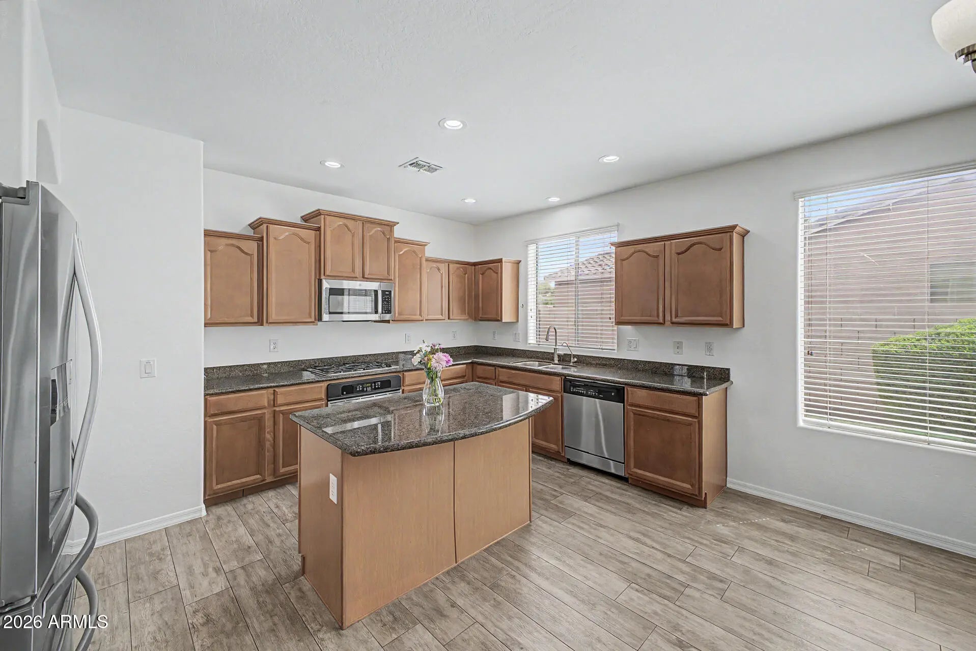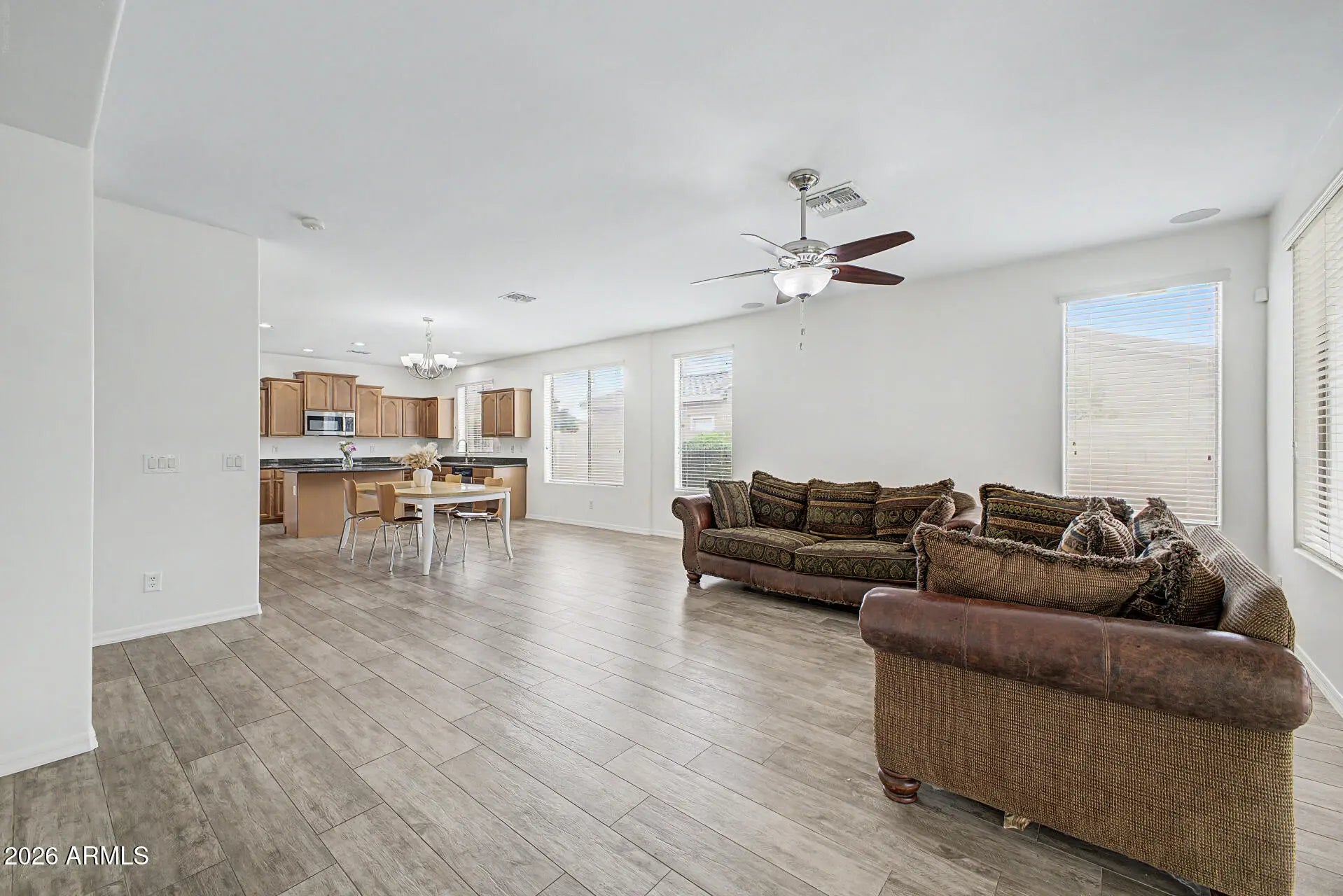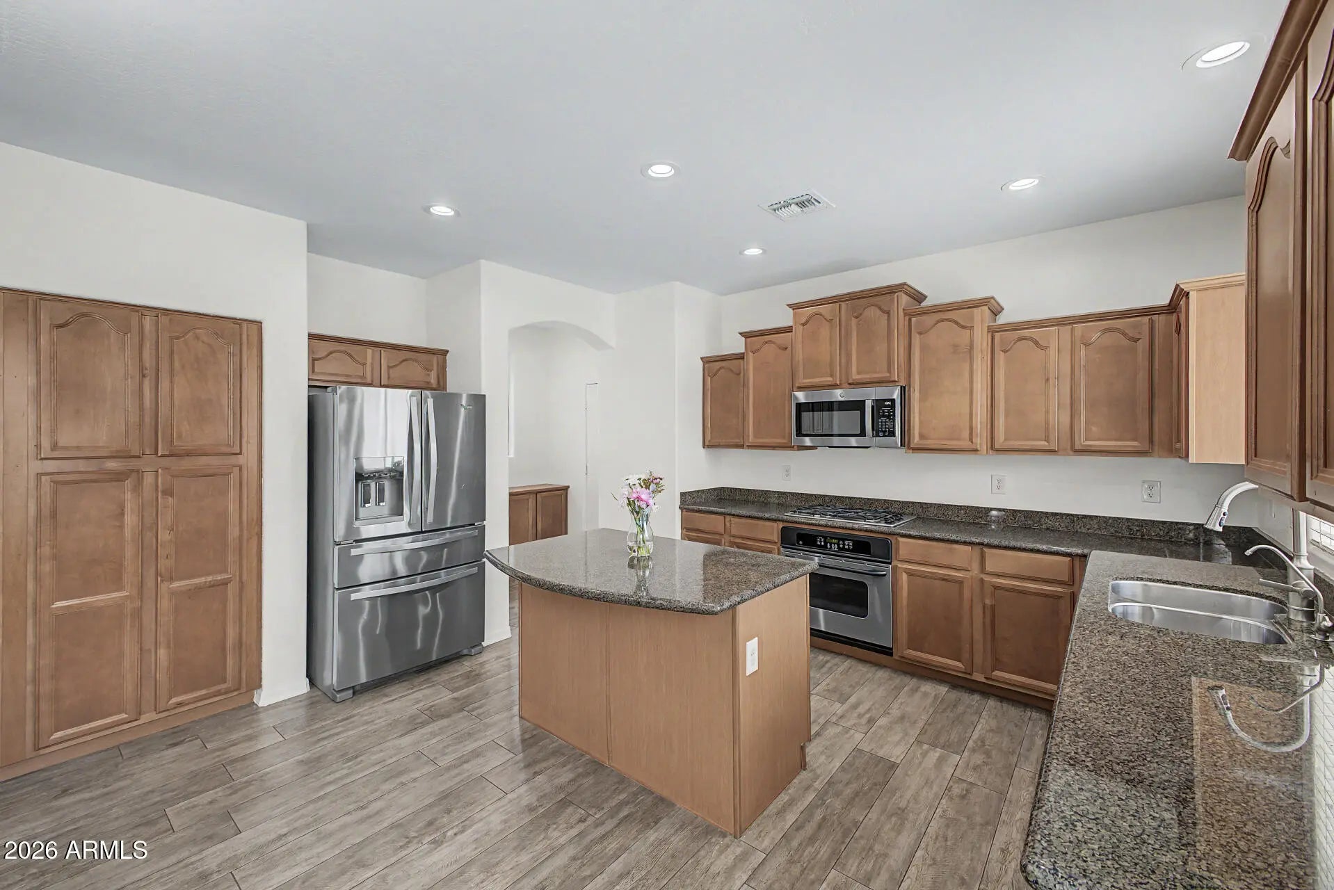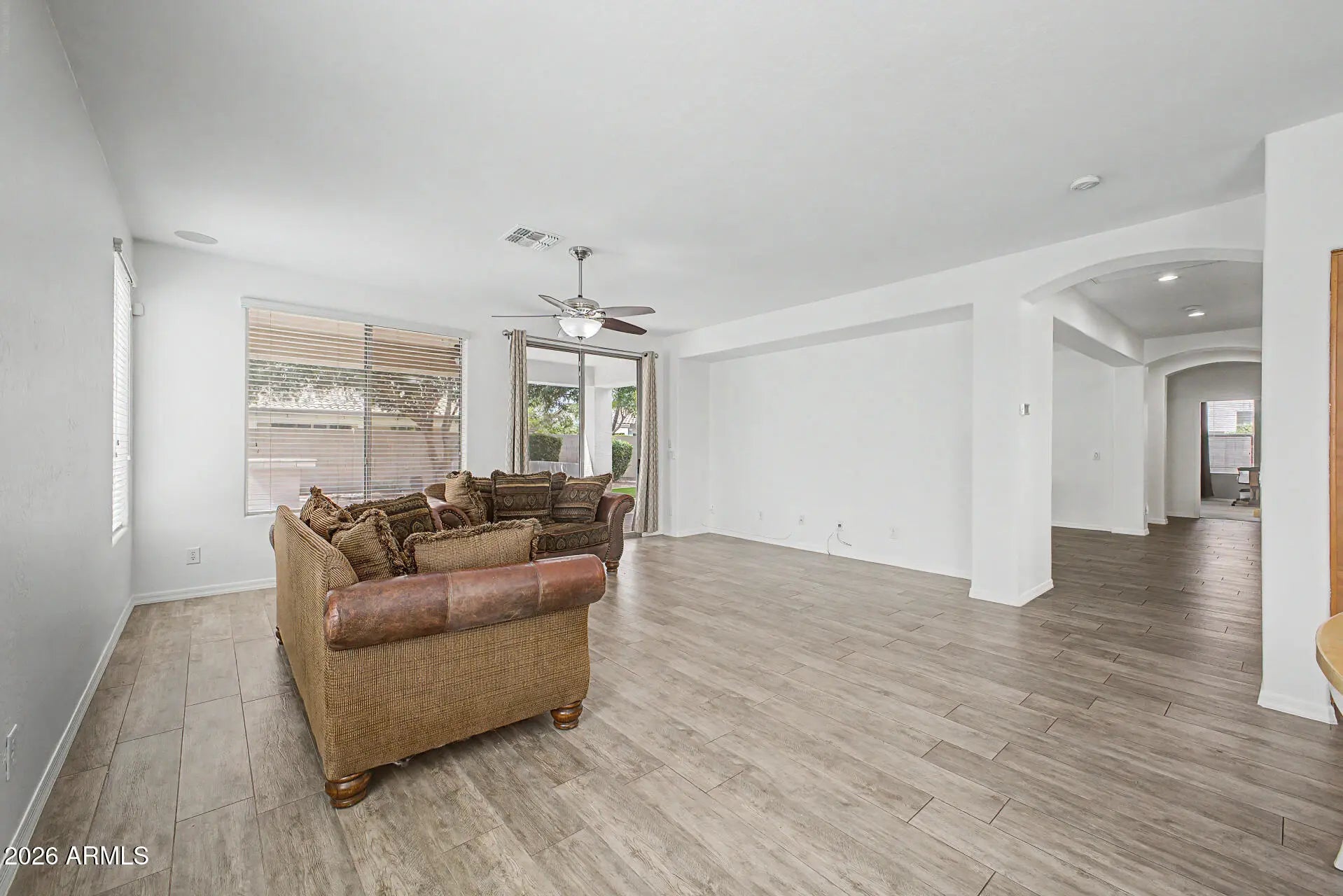 The freshly painted interior (March 2026) sets the tone for this lovely, inviting home. The open island kitchen features granite counters, stainless steel appliances including a gas range, a butler's pantry, and abundant cabinetry. The spacious primary suite offers a large walk-in closet and a beautifully appointed bath with double sinks, separate tub and shower. Wood plank tile adorns the floors in all the right places, enhancing both style and permanence. The home boasts attractive curb appeal. The indoor laundry has side yard access. Outside you'll find a very private backyard an with extended paver patio and painted fence. This home is located within walking distance to Ryan Elementary School, Arizona College Prep HS, a city park, shopping, and dining.