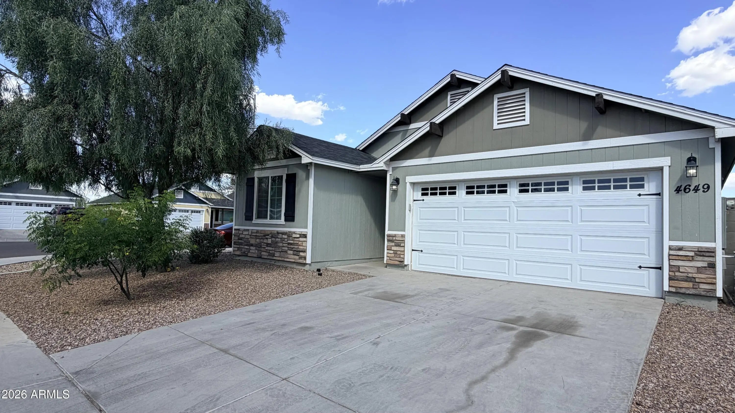 Built in 2020, this beautifully upgraded 3 bed, 2 bath home offers modern living with style and comfort. Features include luxury wood laminate and new carpet in bedrooms. The spacious kitchen boasts granite countertops, stainless steel appliances, a large island with breakfast bar, and walk-in pantry. Open great room design is perfect for entertaining. The primary suite includes a double vanity, granite tops, and a huge walk-in shower. Situated on a desirable corner lot with a large backyard ready for your vision and a covered patio. Move-in ready and a must see!
