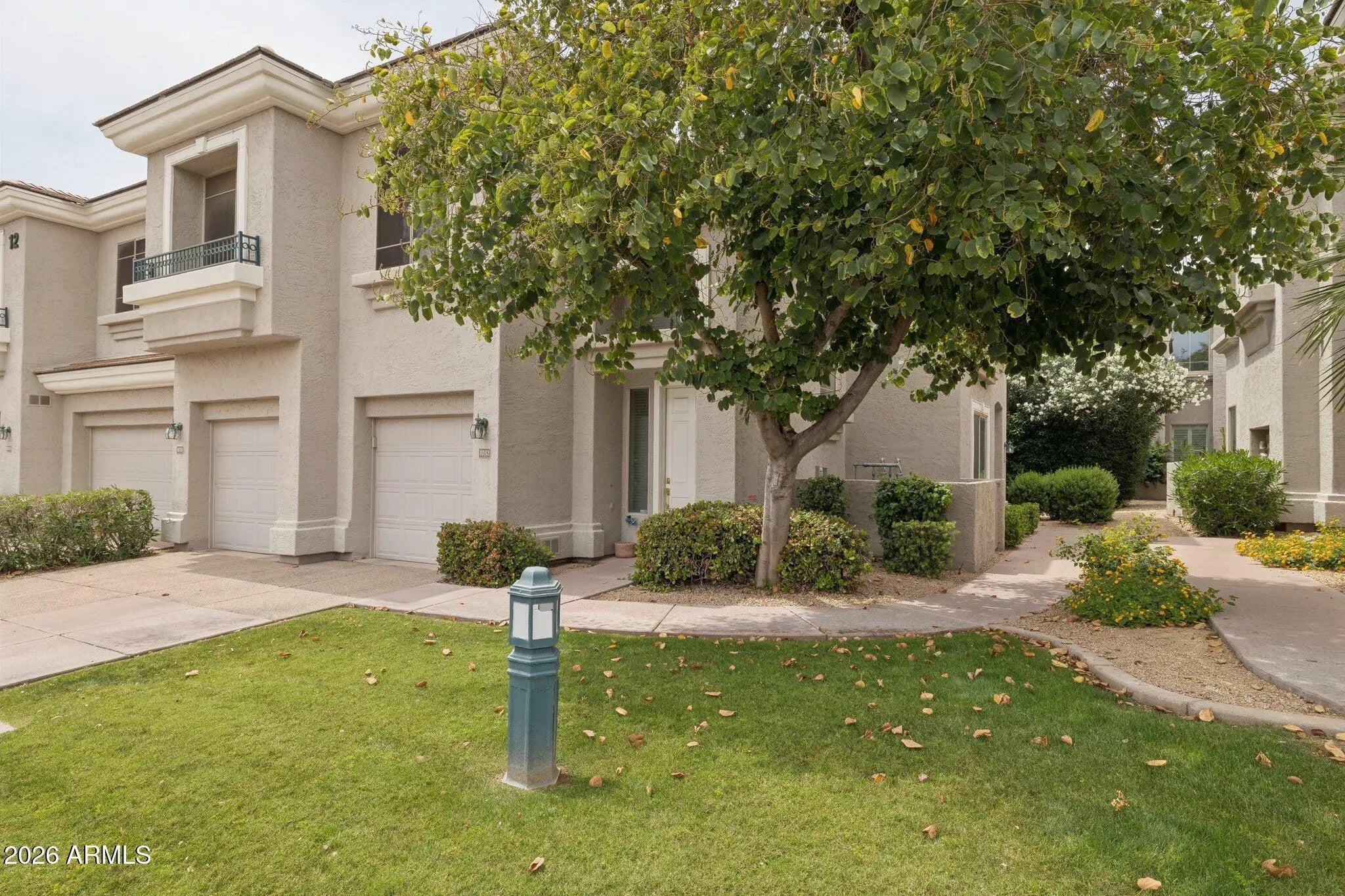 Cozy, move-in ready Scottsdale condo in a premium location -- a true hidden gem! This bright 2-bedroom, 2-bath home features soaring two-story ceilings at the entrance, abundant natural light, and a private balcony shaded by mature trees. Wood flooring flows up the stairs into the living room and hallways, complemented by plantation shutters throughout. All appliances convey, and the HVAC was replaced within the last 3-4 years. Located in a gated community with pool and spa, plus your own covered garage. Close to freeways, shopping, dining, and more. Meticulously maintained by the owner -- come see it and make it yours!