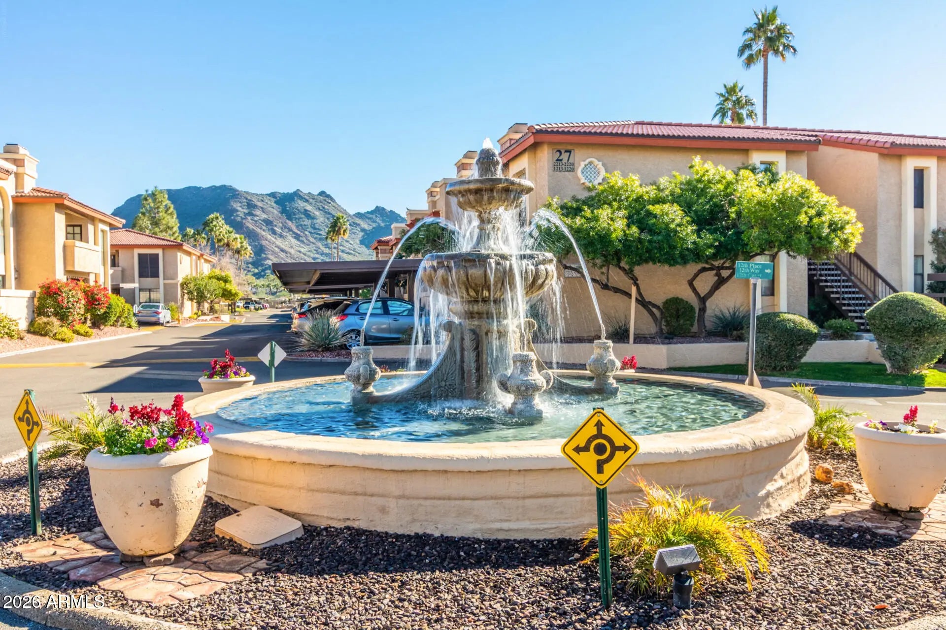 Highly sought-after luxury townhouse located in the exclusive gated community of Pointe Tapatio! Ideally situated deep within the community for added privacy, this upgraded residence features its own enclosed yard, attached garage, and additional parking conveniently located right outside the front door. This model-perfect home offers an impressive open-concept floor plan with soaring ceilings, custom fireplace, new LVP flooring throughout the first level with new 6'' baseboards, fresh interior paint, and new plantation shutters. The beautifully updated kitchen includes a stylish tiled backsplash, stainless steel appliances (all appliances convey), refrigerator, new chrome pullout faucet, new garbage disposal, and a breakfast bar adjacent to the formal dining area with new chandelier and new sliding glass patio door. New outlet covers and switches add a clean, finished touch throughout. The first floor also features an oversized laundry room complete with washer and dryer, a full bathroom with shower, and direct entry from the freshly painted attached 1-car garage with newly coated garage floor. New light fixtures are installed throughout the home. Upstairs, both bedrooms offer private entry doors and share a dual-access bathroom. The primary suite includes a walk-out balcony and an extensively remodeled master bath showcasing a large walk-in tile shower, updated tile flooring, new marble countertop with dual undermount sinks, and modern stainless fixtures. Secondary bathroom updates include new marble counters, new vanities, new fixtures, new toilets, and new showerheads. Outdoor living is highlighted by a private gated courtyard with updated landscaping, new drip system, planter boxes, extended pavers, and mature shade trees. Additional upgrades include two new outdoor automatic sconces, digital front-door smart lock, security system with three exterior cameras, and an irrigation system for the courtyard. This residence is uniquely positioned with an expanded front and side yard and convenient visitor parking directly out front. Major recent improvements include a new water heater (8/23), new AC compressor and fan (2023), and a new Ecobee smart thermostat. Enjoy low-maintenance living with no yard work required. HOA covers: water, garbage, sewer, premium cable (195 channels including Showtime & HBO), and roof maintenance. Community amenities include three heated pools and spas, basketball and tennis courts, sparkling fountains, lush greenbelts, and walking paths. Two dogs under 25 lbs permitted. Experience true resort-style living within city limits. Prime location with easy access to freeways, hiking trails, shopping, dining, downtown Phoenix, the airport, Biltmore, and Scottsdale. Walking distance to North Mountain's extensive trail system and adjacent to the renowned Pointe Tapatio Resort.