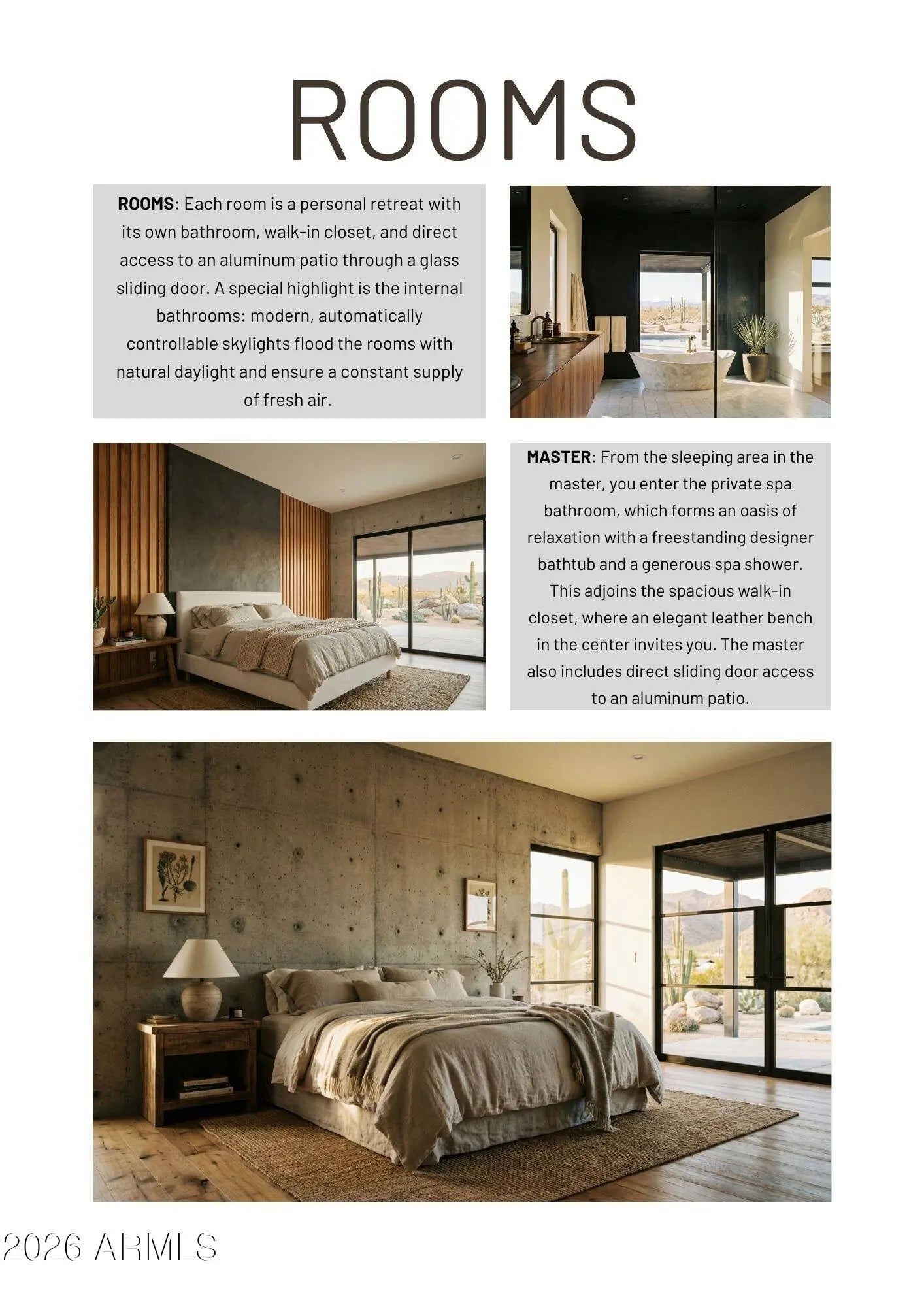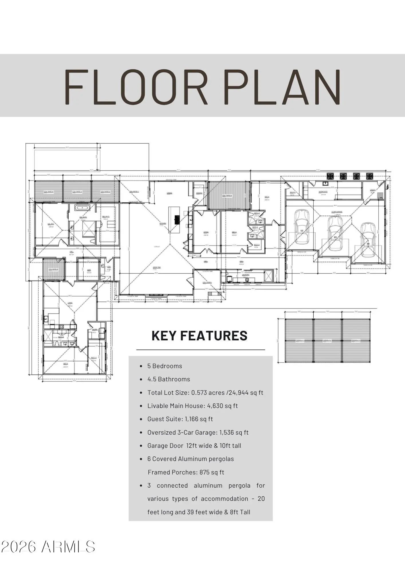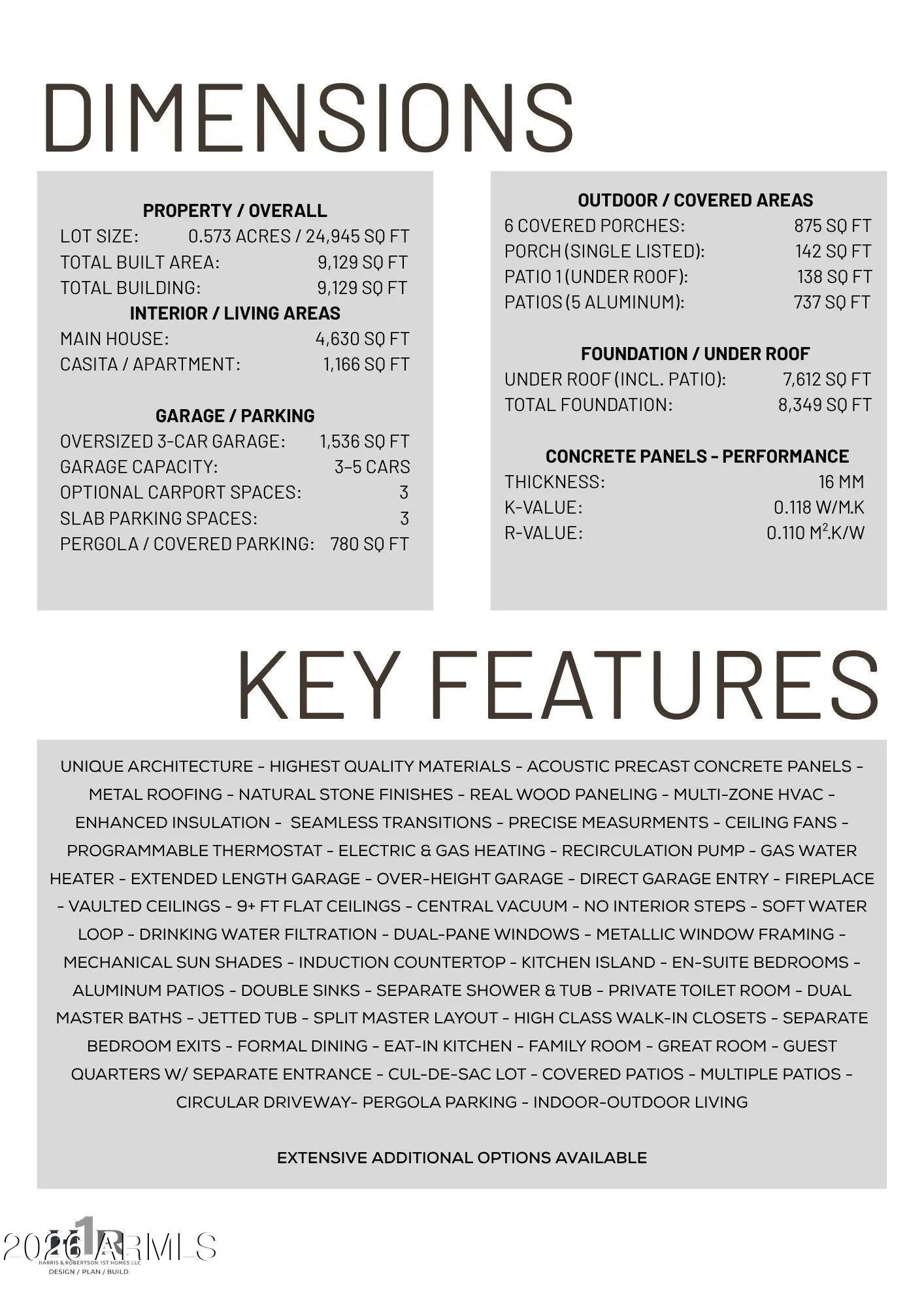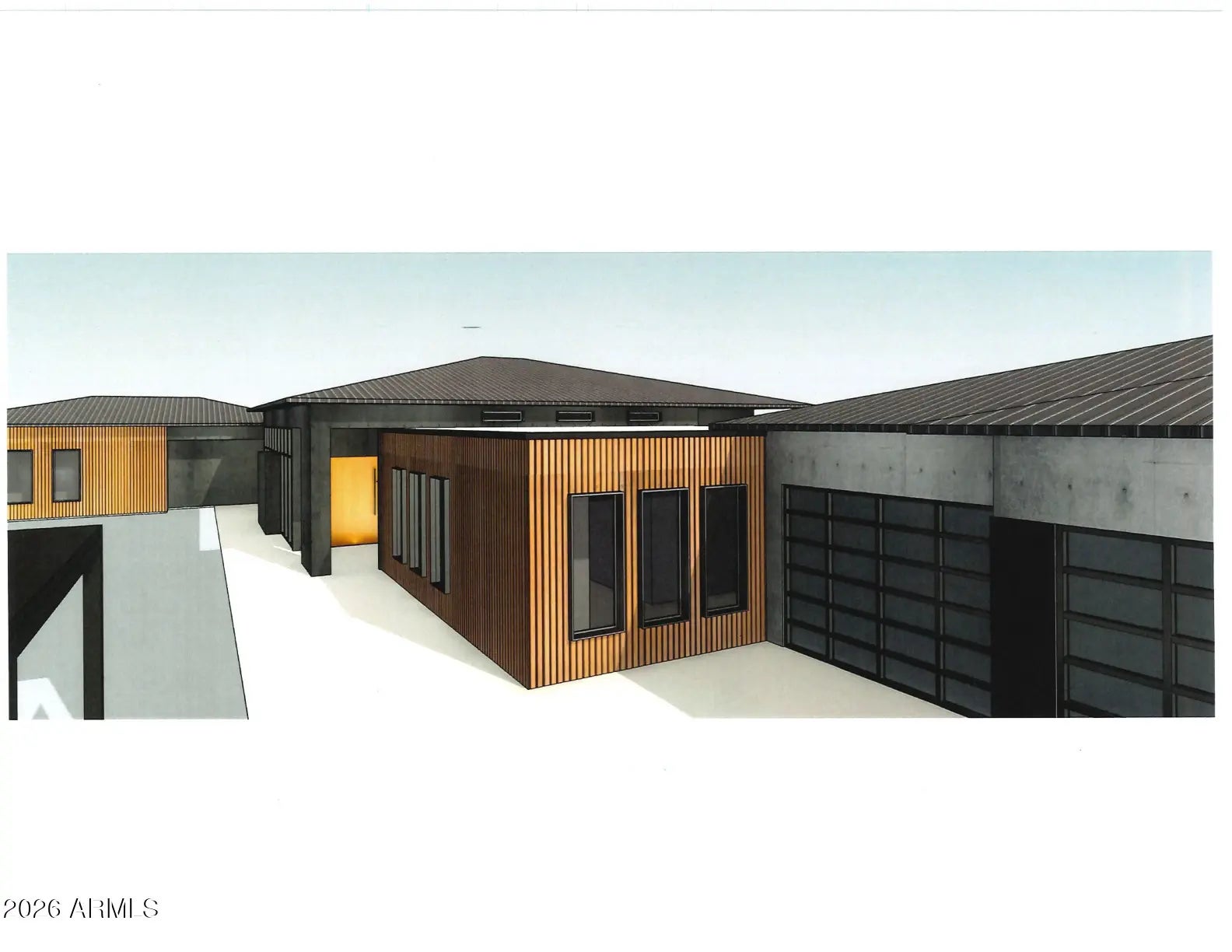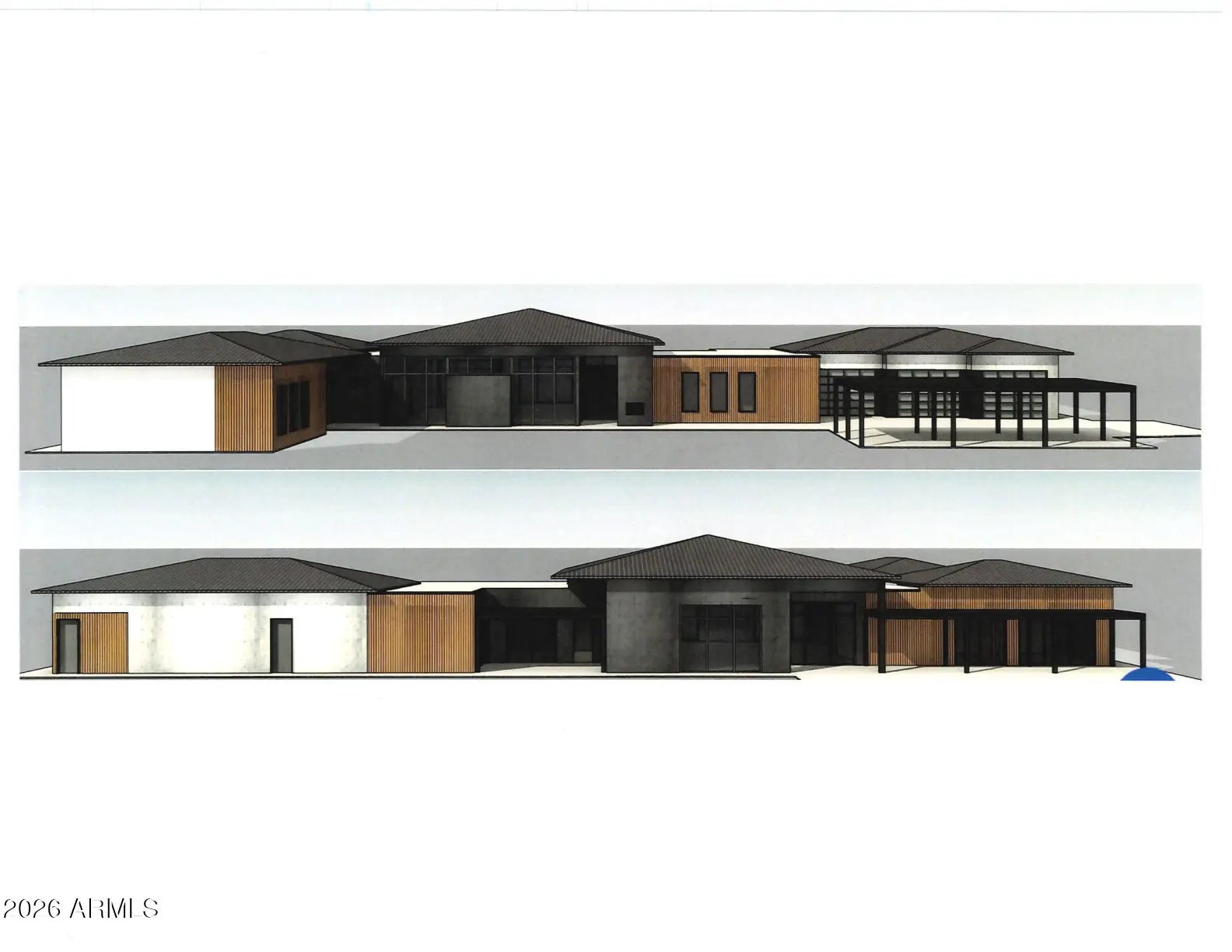 This property will sit on a generous 0.573-acre lot (24,944 sq ft) and offers a combined total of approximately 8,207 sq ft of built space, including the main house, guest suite, garage, and framed porches. With the permit already granted by the Estrella Homeowners Association (HOA), this new construction project is ready for immediate groundbreaking. Secure your place in one of Goodyear's most exclusive residential communities, in close proximity to shopping, the clubhouse, and idyllic lakes known for their breathtaking sunsets. A single source for design, planning, and building. All photos are virtual renderings provided by the builder and architect; actual finishes and features may vary. **Planning Security Through Early Customization** This estate has been designed with the utmost care and attention to detail. To ensure a seamless construction process, we offer you, the buyer, the valuable opportunity to incorporate your own wishes before construction begins. You can also review and select from the additional options we offer for this home, ensuring that no major changes are necessary during the construction phase. This structured process guarantees efficiency and a smooth, predictable path to your dream home. **Architecture & the Outdoor Lounge Concept** Personally designed by the renowned developer and designer Harris, this home combines clean, modern architecture with a nature-oriented lifestyle. The exterior facade is an artful interplay of the highest quality, durable materials with a metal roof: concrete elements and real natural stone veneer panels meet aluminum panels with a warm wood look, while other surfaces are complemented by a fine, smooth plaster in subtle shades. A special detail is the windows: an outer, protruding metal profile frame provides clean lines, guarantees optimal sealing, and elegantly highlights the windows. A unique feature of this estate is the private patios, which serve as sheltered outdoor seating areas Tucked into the niches of the house and accessible from their respective rooms, these state-of-the-art aluminum structures feature an intelligent louvered roof, side shading, integrated LED lighting, and radiant heaters. As an optional upgrade, the flooring can be finished with weatherproof wood. **The Independent Guest Apartment Offers Additional Flexibility** Directly connected to the main house, the fully independent guest apartment includes a kitchen, a bedroom with a large walk-in closet, a bathroom, and its own laundry room. Additional, thoughtfully designed storage space ensures order and the highest level of living comfort. Direct access to a private, modern aluminum patio completes this exclusive unit. To ensure maximum and future-proof flexibility, the apartment offers the option to be fully designed to be barrier-free and ADA-compliant. This creates a customized and comfortable living solution for all needs and life stages. **The Heart of the Main House - Impressive and Inviting** The central living area impresses with a ceiling height of 14 feet (approx. 4.27 m). Continuous, elegant wood flooring connects all living areas, creating a warm atmosphere. The interior walls are insulated with high-quality rock wool to ensure excellent soundproofing and an optimal indoor climate. Individual walls are stylishly accented with fine real wood panels and exposed concrete elements, complementing the smoothly plastered walls in warm tones. A four-zone climate system adds to the perfection. * Entrance Area: A stylish lounge area with a fireplace, set into a concrete wall and surrounded by a glass facade and a custom glass wine cabinet, welcomes your guests. * Living Area: The main living area is designed as a central meeting point. Its focal point is a large, continuous wall, perfect for a large media installation. It creates the ideal setting for social movie nights and cozy gatherings with family and friends. At the same time, the impressive glass fronts open up the space, offering views of the garden and pool landscape. * Kitchen & Dining Area: The modern gourmet kitchen redefines the concept of an open-plan kitchen. A seamless, handleless back wall conceals state-of-the-art appliances and a walk-in pantry behind elegant surfaces. The kitchen island itself is a design statement, equipped with both induction and gas cooktops, enriching the entire living area at a high level. The dining area is housed in an elegant niche. Almost completely enclosed by a floor-to-ceiling glass facade, it creates the feeling of dining nearly outdoors. At the end of the kitchen wall, right in this dining area, stands a stylish bar with an integrated refrigerator. * Rooms: Each room is a personal retreat with its own bathroom, walk-in closet, and direct access to a modern aluminum patio. A special highlight is the internal bathrooms: modern, automatically controllable skylights flood the rooms with natural daylight and ensure a constant supply of fresh air. Steam and moisture can thus escape naturally, guaranteeing an optimal indoor climate at all times. One of the rooms is ideal for use as a representative office and has additional special features: a high-positioned clerestory window band provides the room with daylight and creates a bright, focused working atmosphere, while a directly connected, climate-controlled server and tech room discreetly and securely houses all IT equipment. * Master Suite: Access via the gallery, past a discreet guest bathroom and a walk-in safe, leads into a dream of well-being. The sleeping area opens up completely to the garden through a continuous, floor-to-ceiling corner window front. This architecture blurs the lines between indoors and outdoors, creating an unparalleled atmosphere of tranquility. From the sleeping area, you enter the private spa bathroom, which forms an oasis of relaxation with a freestanding designer bathtub and a generous spa shower. This adjoins the spacious walk-in closet, where an elegant leather bench in the cente